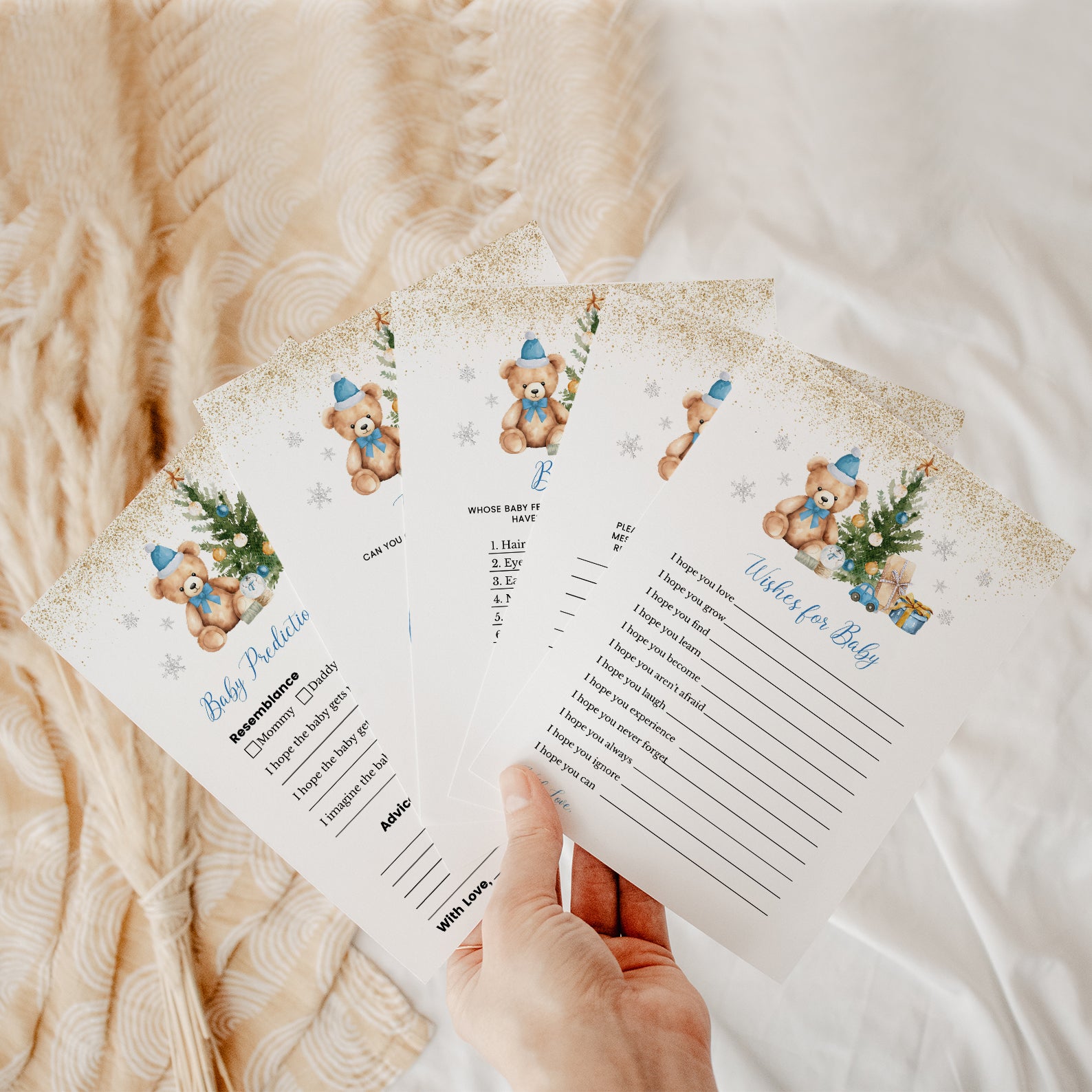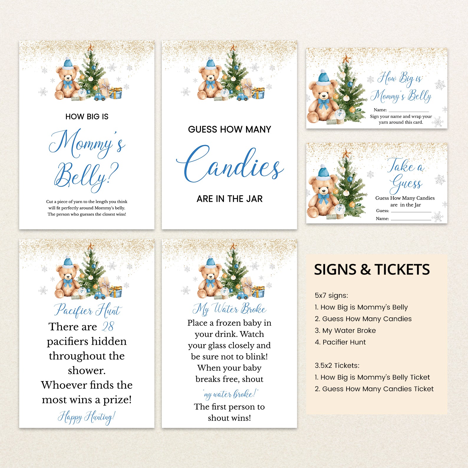 - Purchase this We Can Bearly Wait: Blue Winter Baby Shower Game Bundle with Bear template
