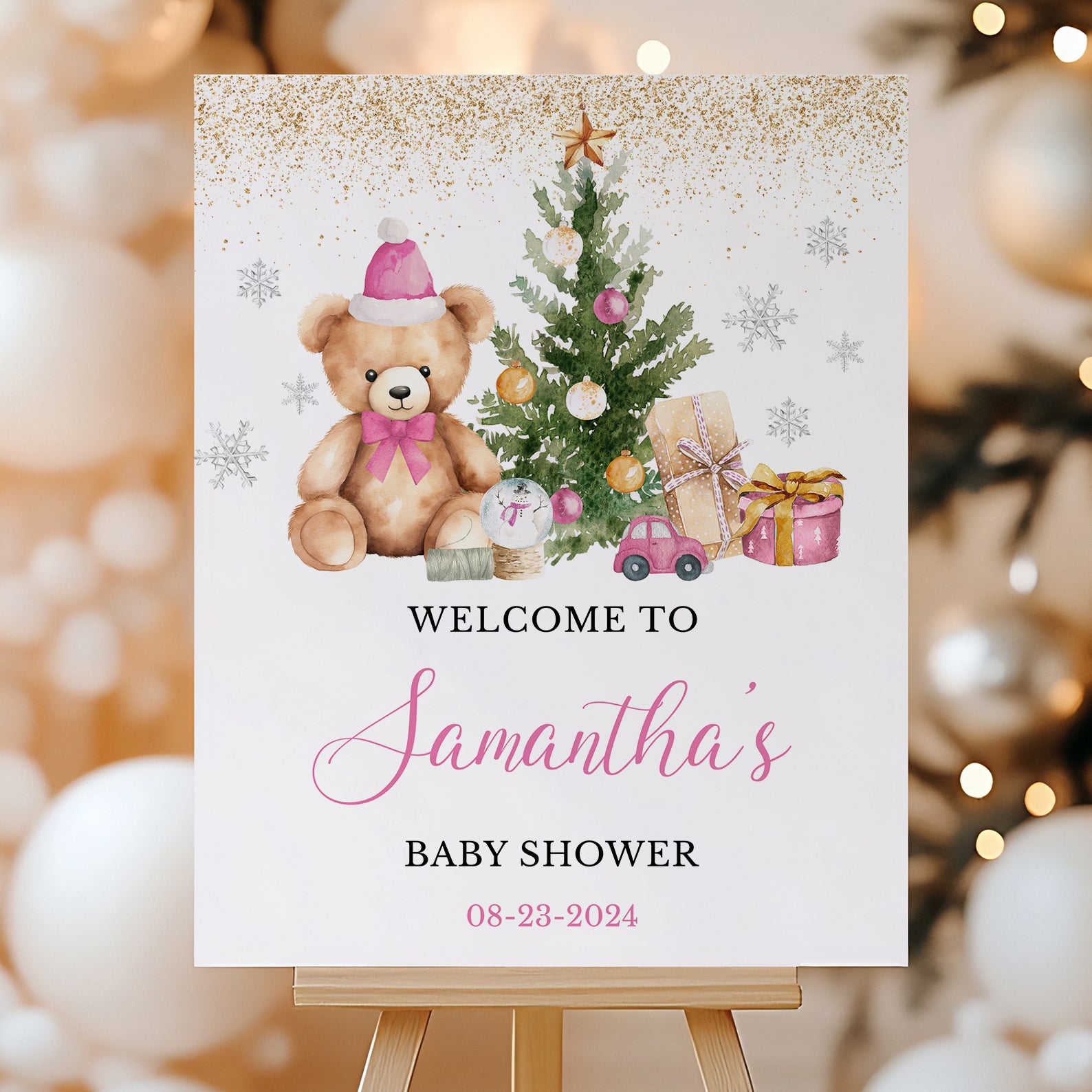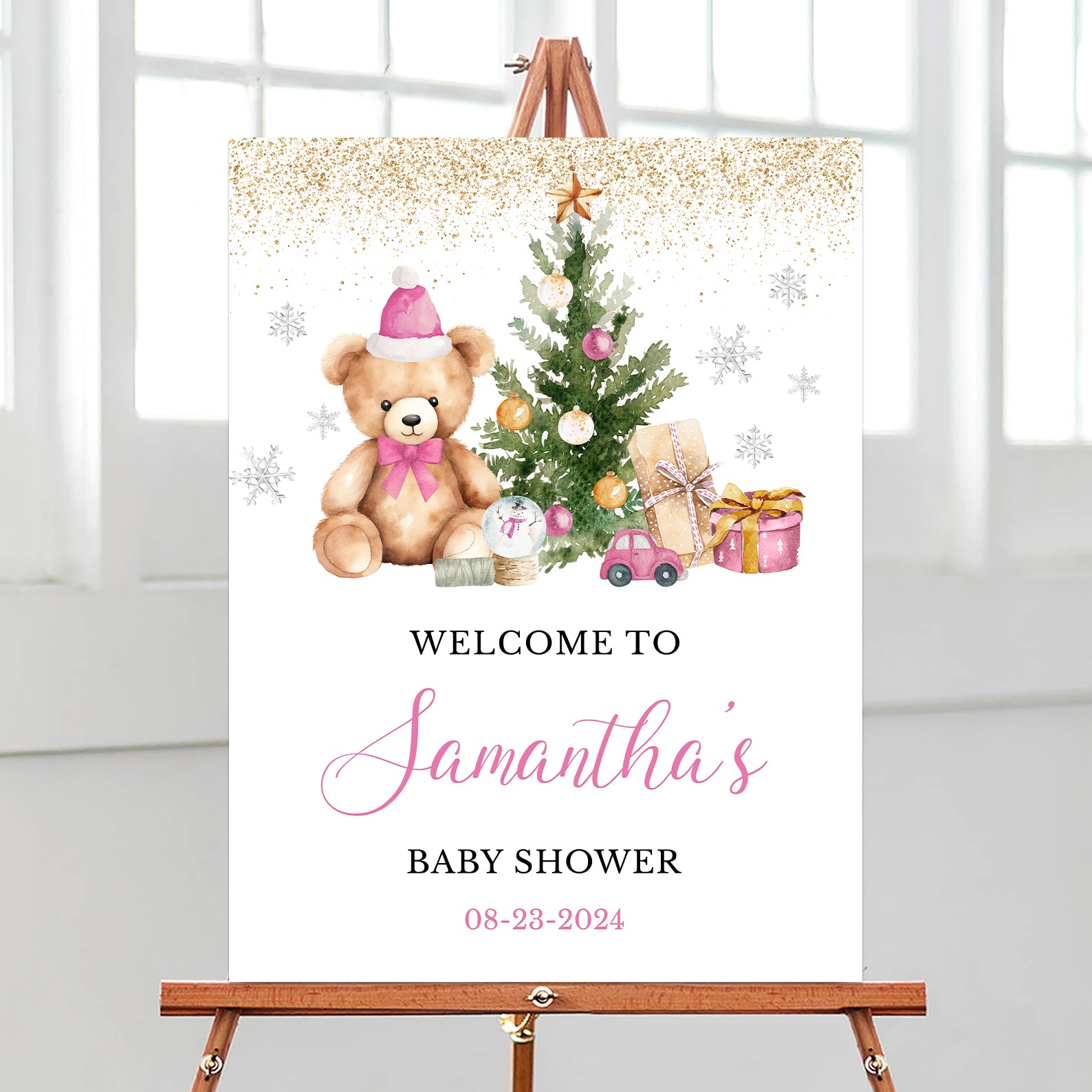 - Purchase this We Can Bearly Wait: Pink Winter Baby Shower Welcome Sign with Bear template