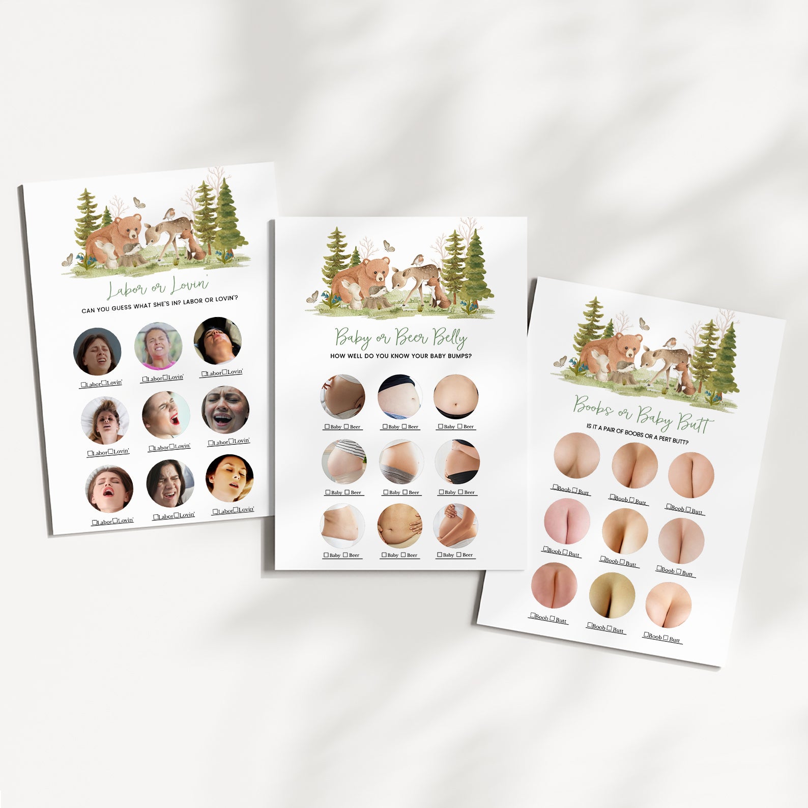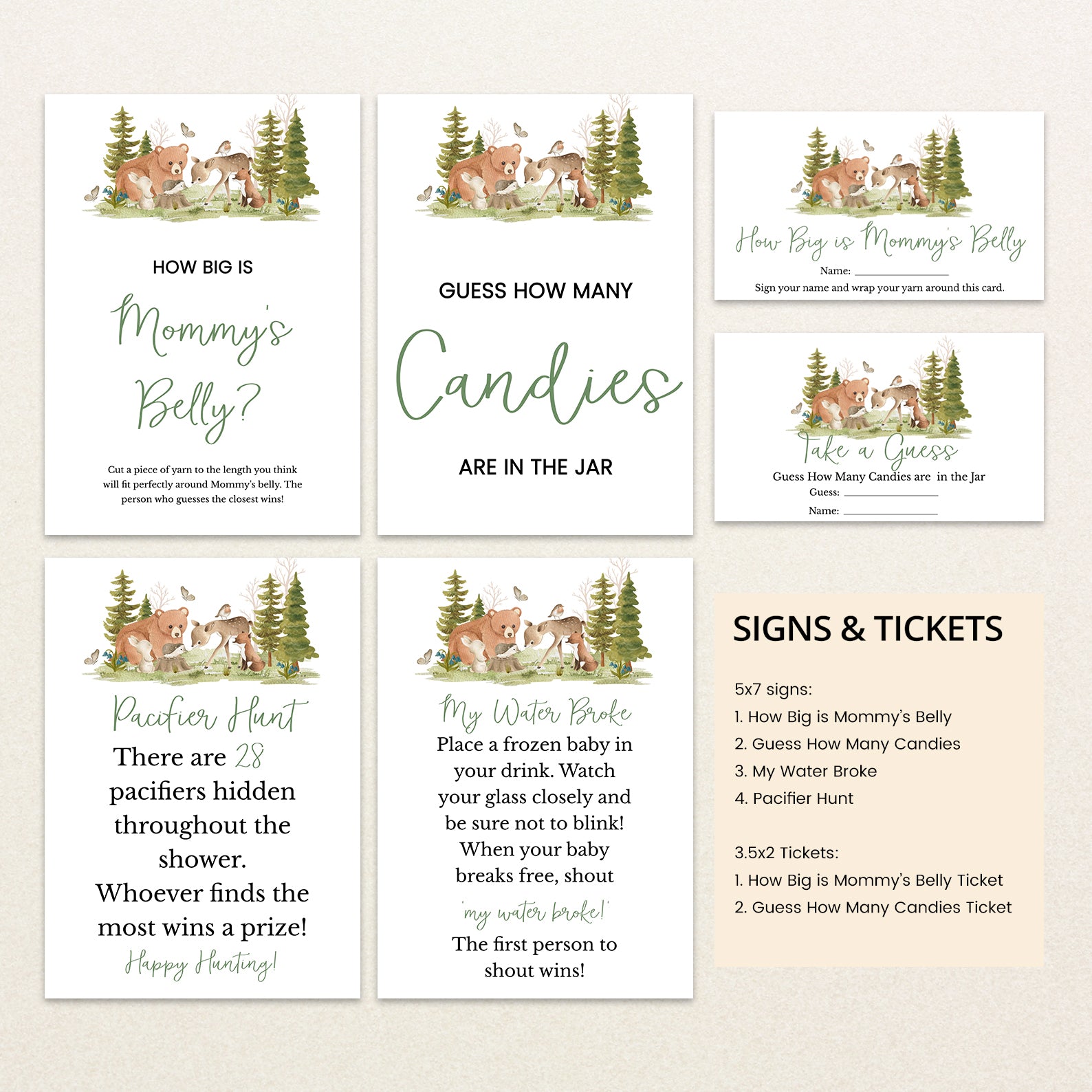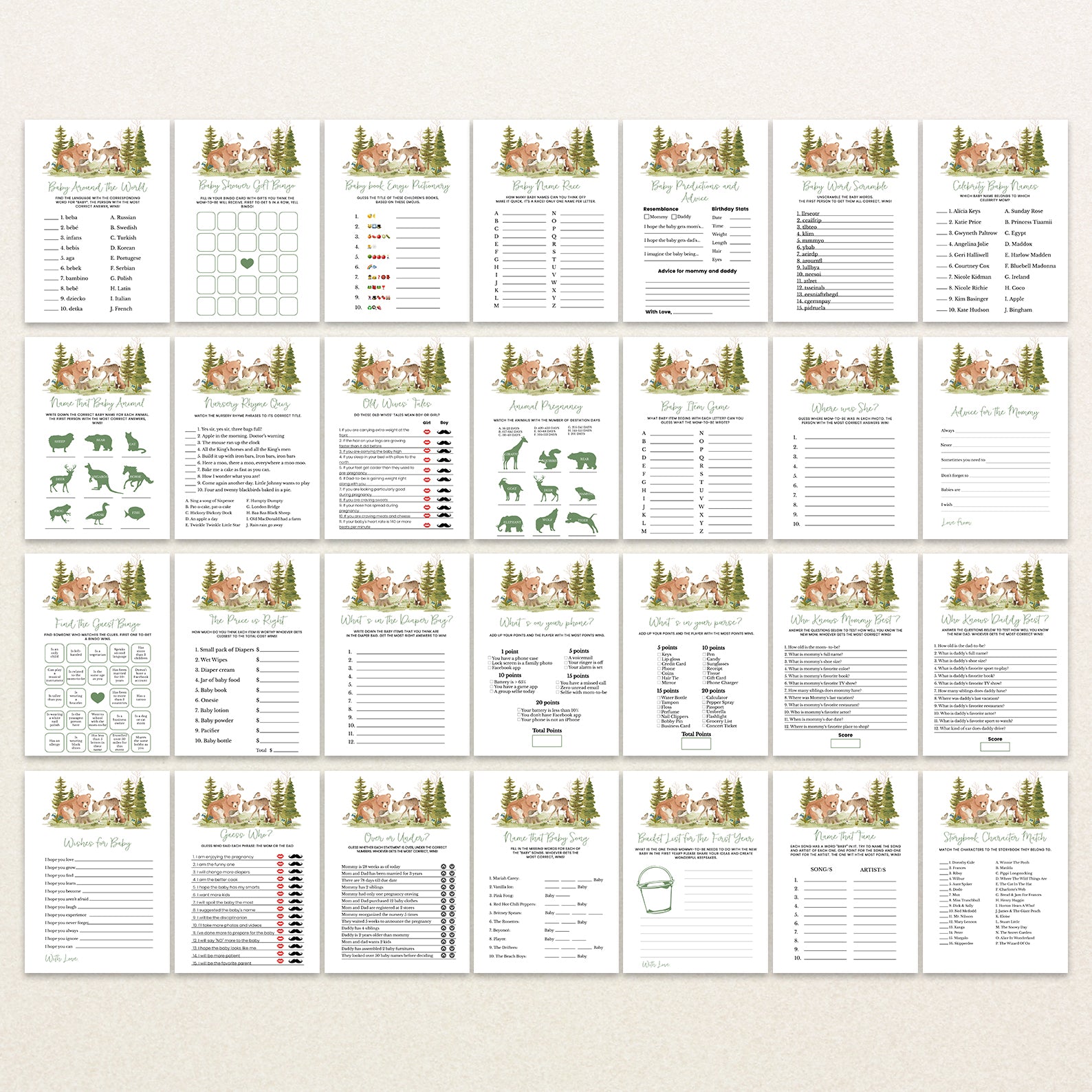 Woodland Baby Shower Game Bundle with Cute Forest Animals