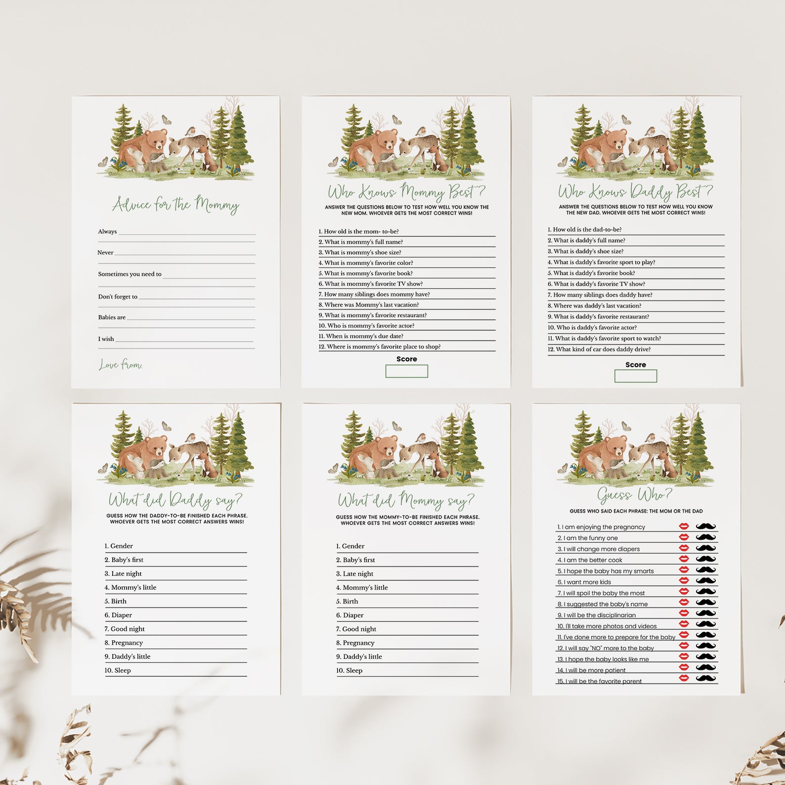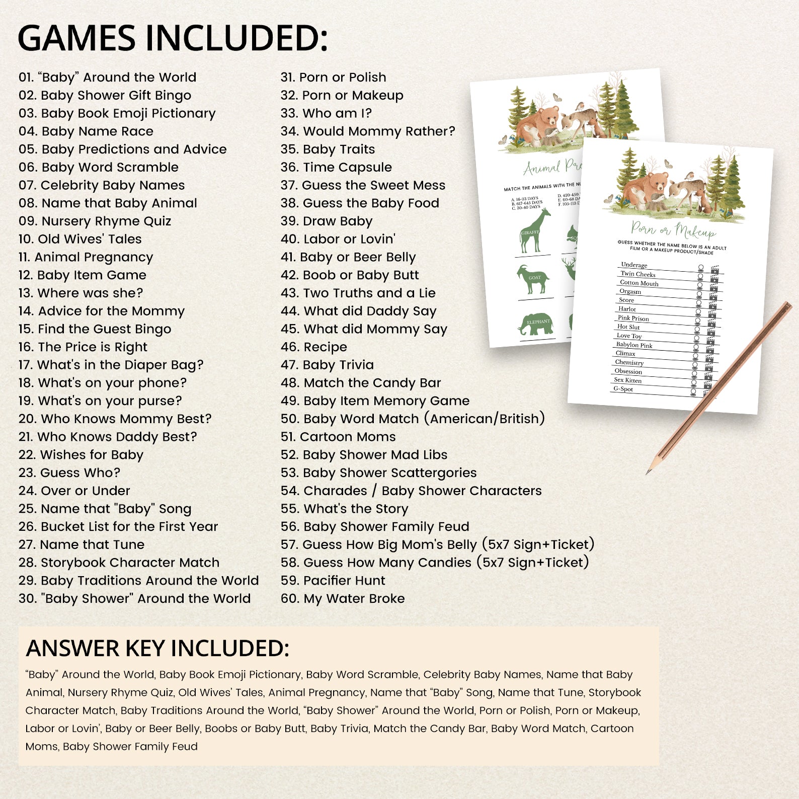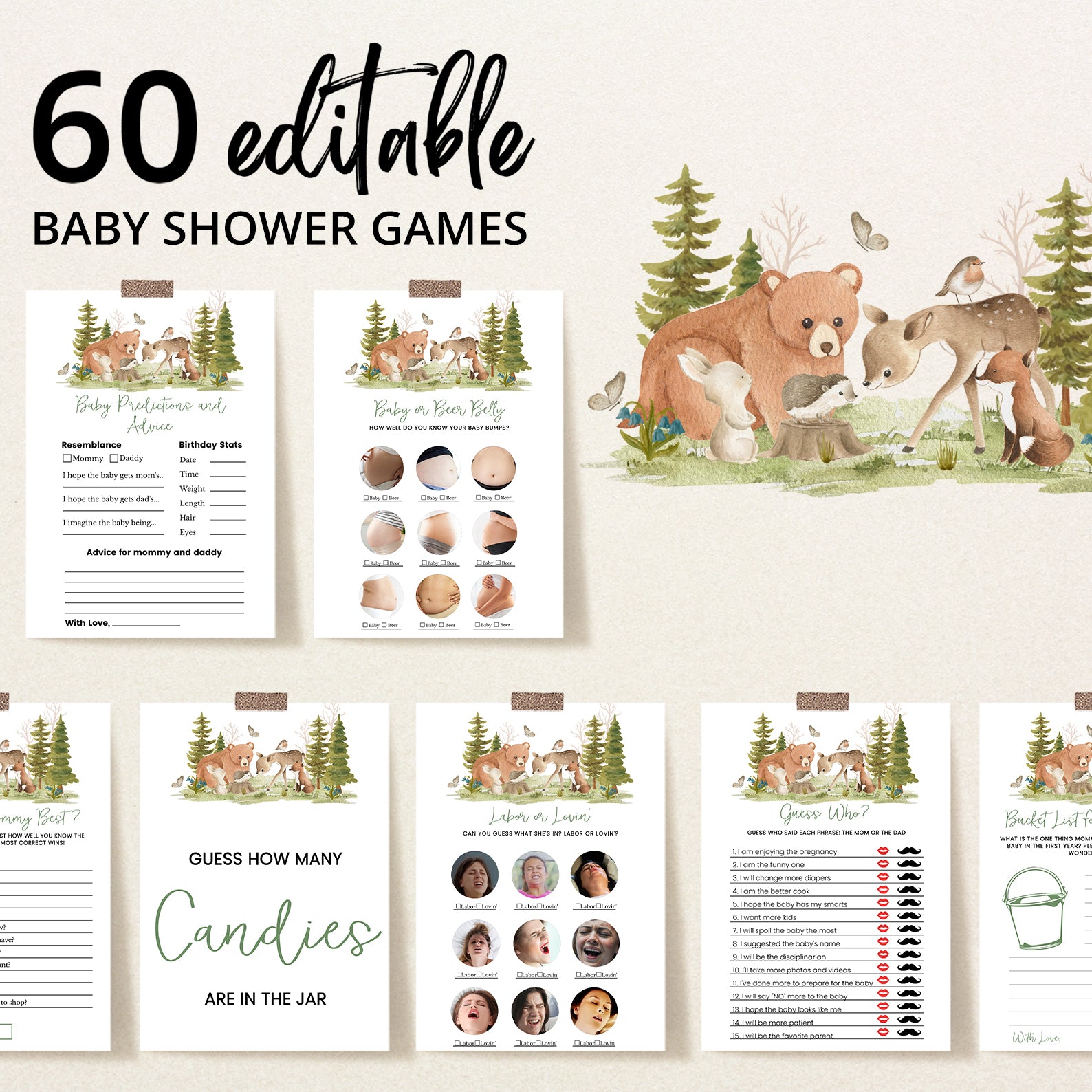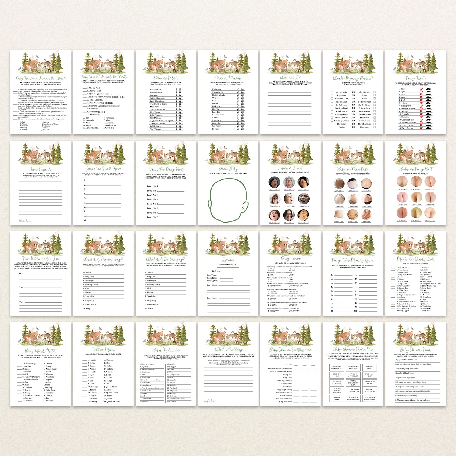 Woodland Baby Shower Game Bundle with Cute Forest Animals