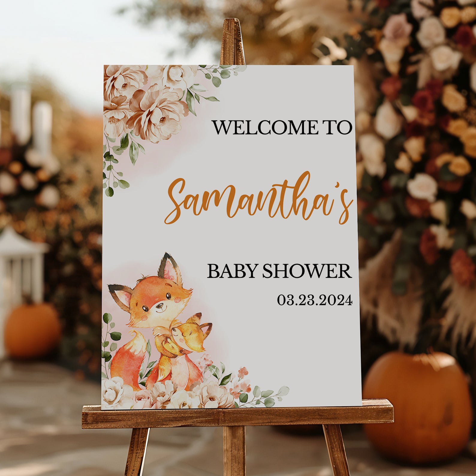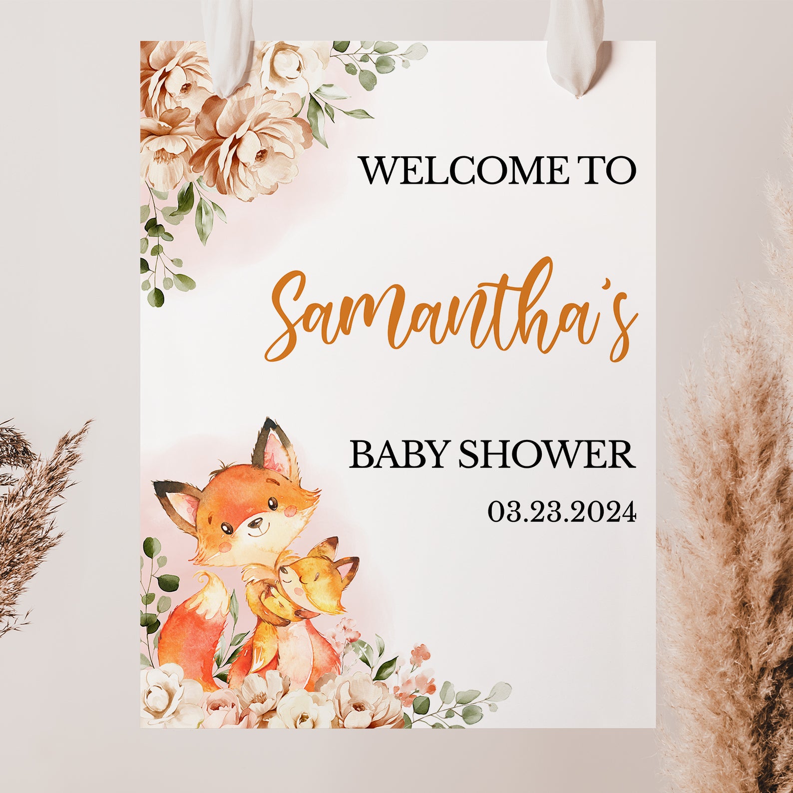 - Purchase this Orange Floral Woodland Fall Baby Shower Welcome Sign with Foxes template