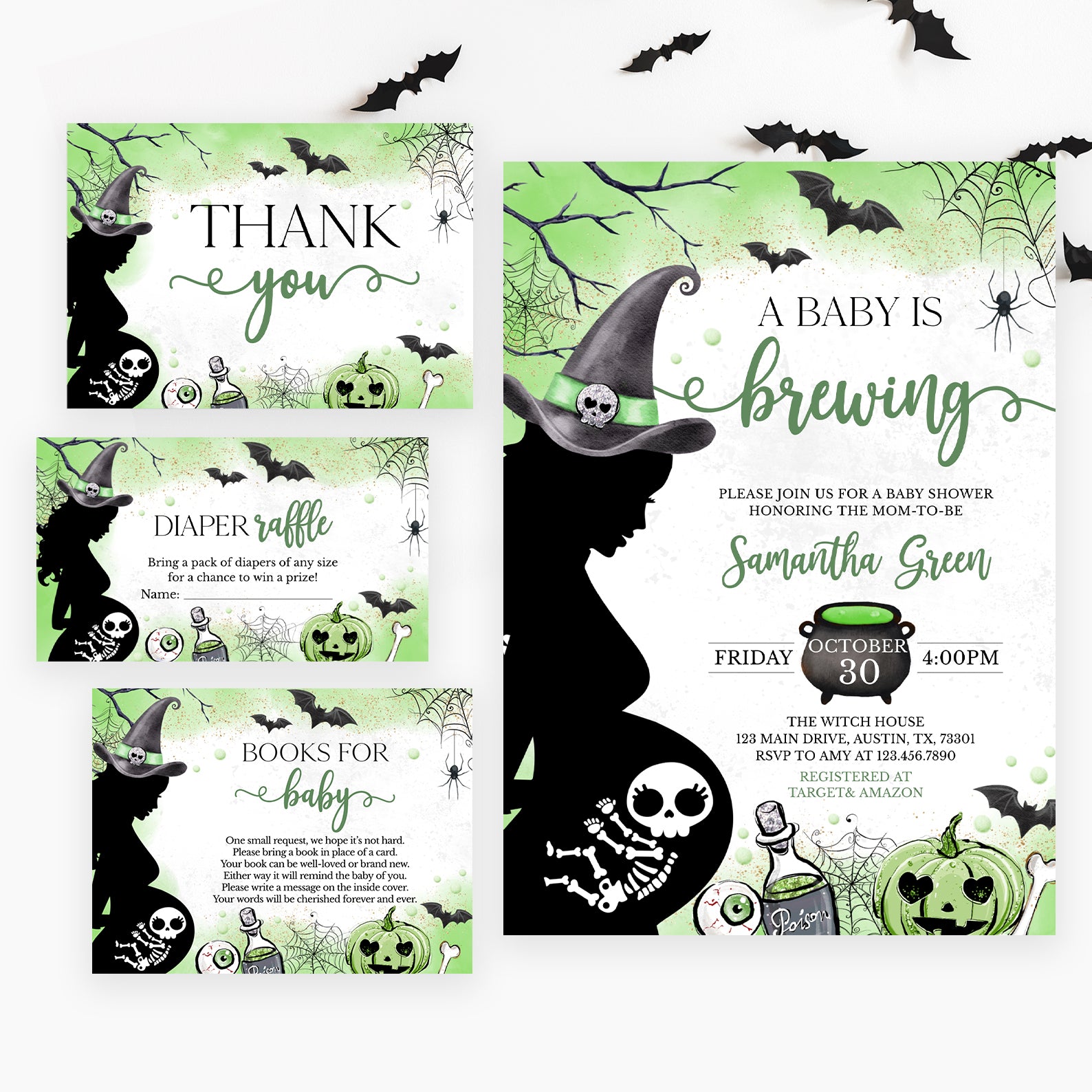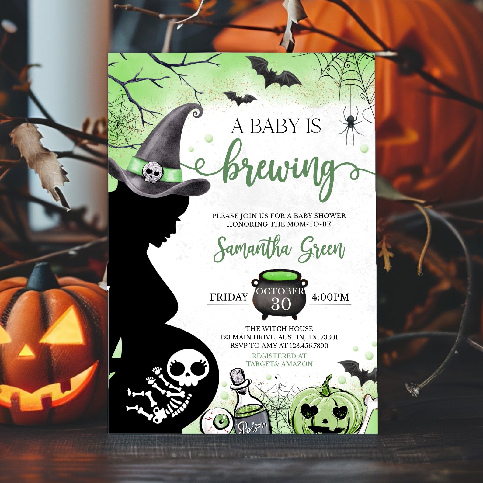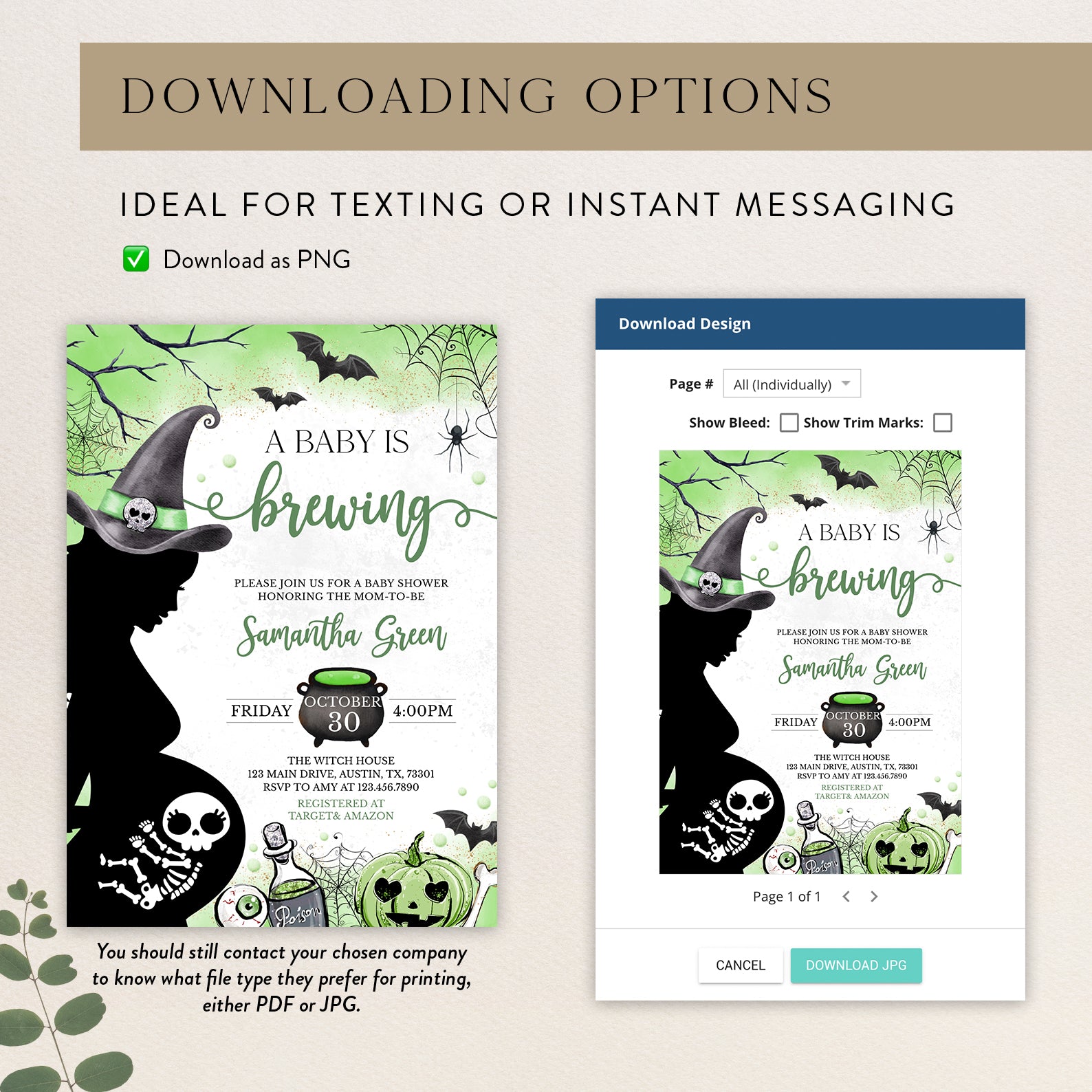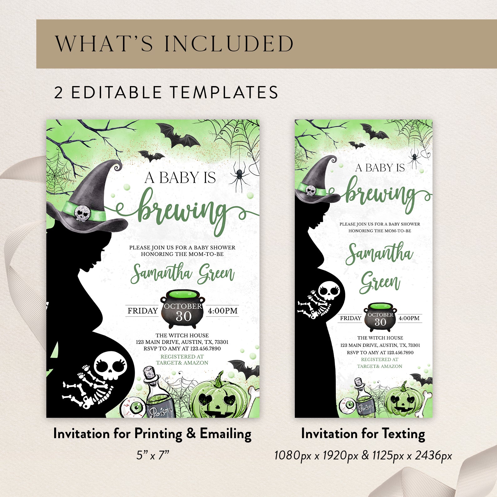- Purchase this A Baby is Brewing Halloween Digital Baby Shower Invitation Bundle template
