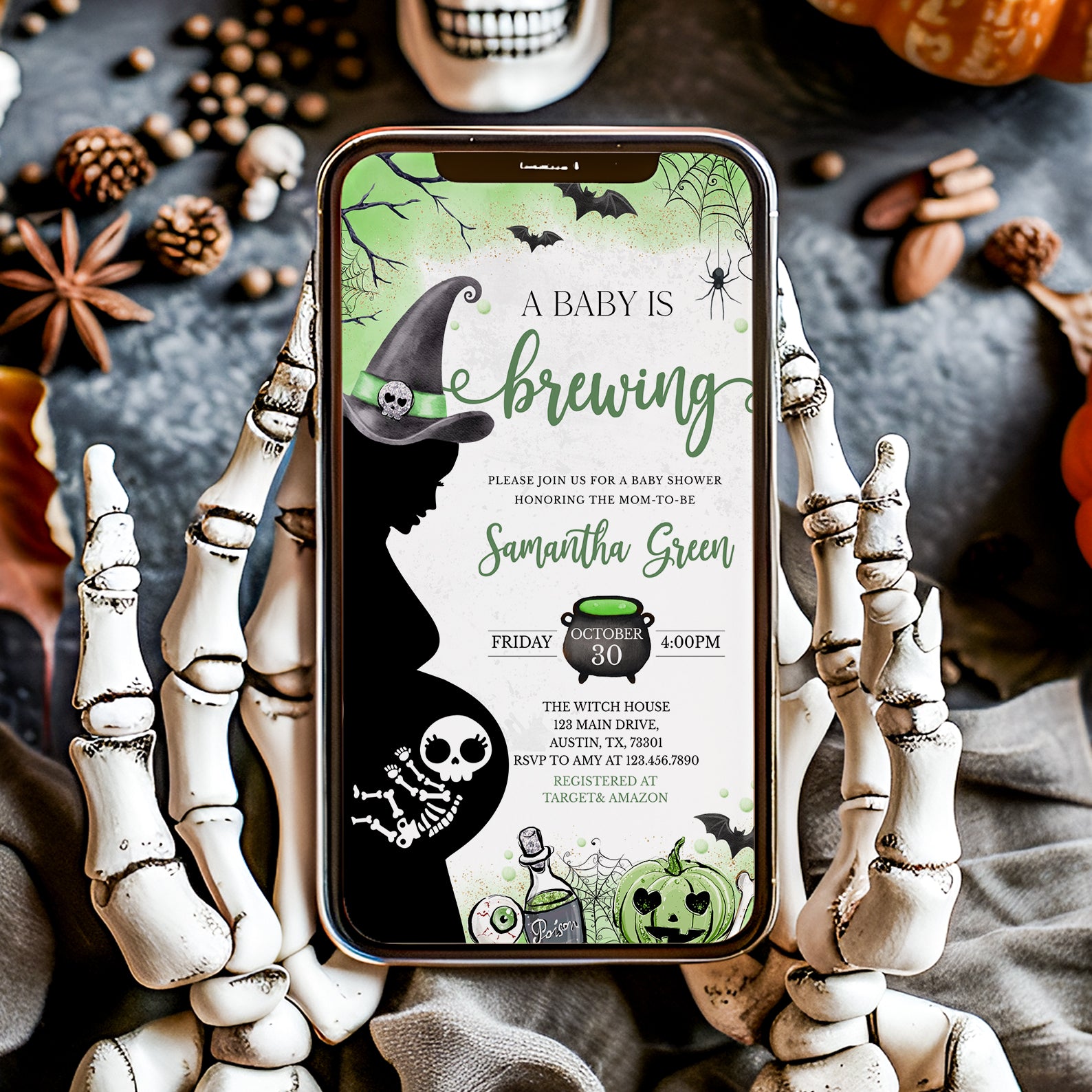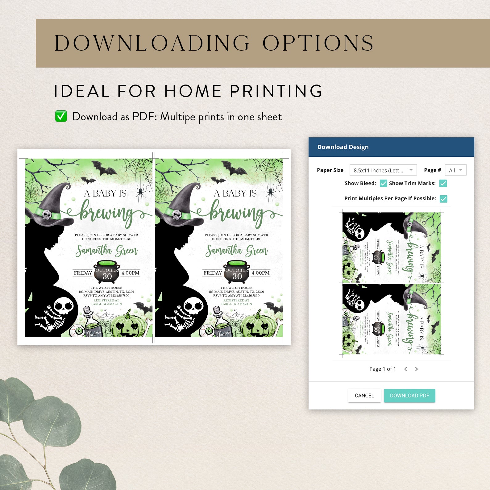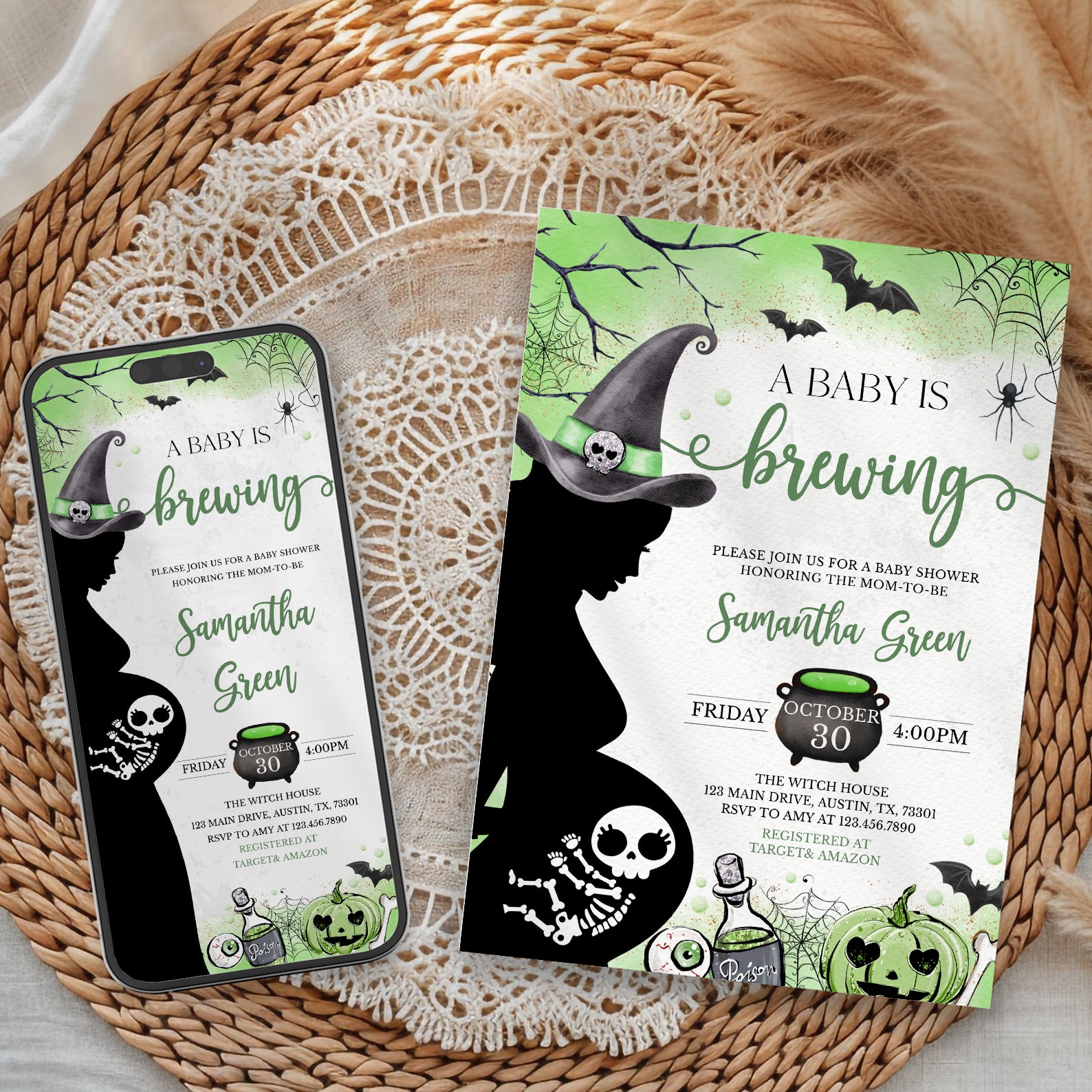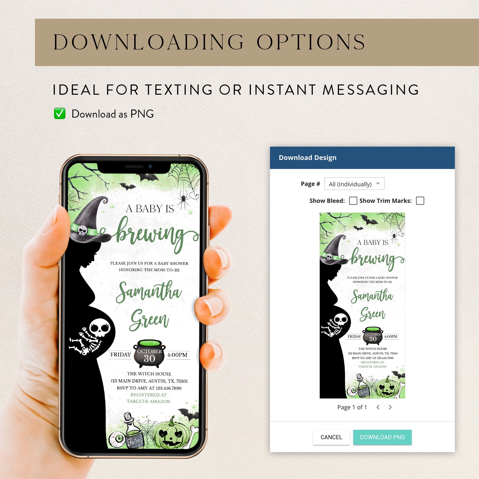 - Purchase this A Baby is Brewing Halloween Digital Baby Shower Invitation Bundle template