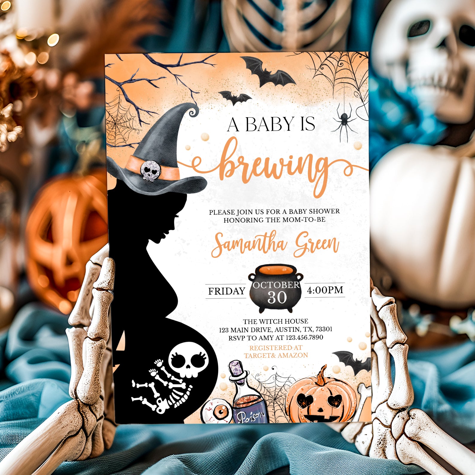 - Purchase this A Baby is Brewing Orange Halloween Digital Baby Shower Invitation template