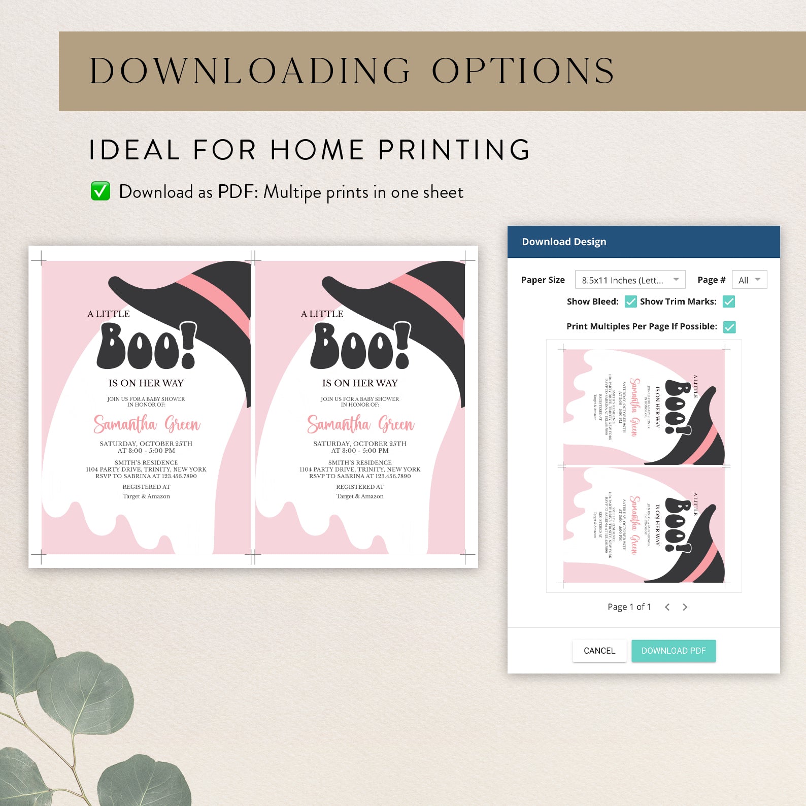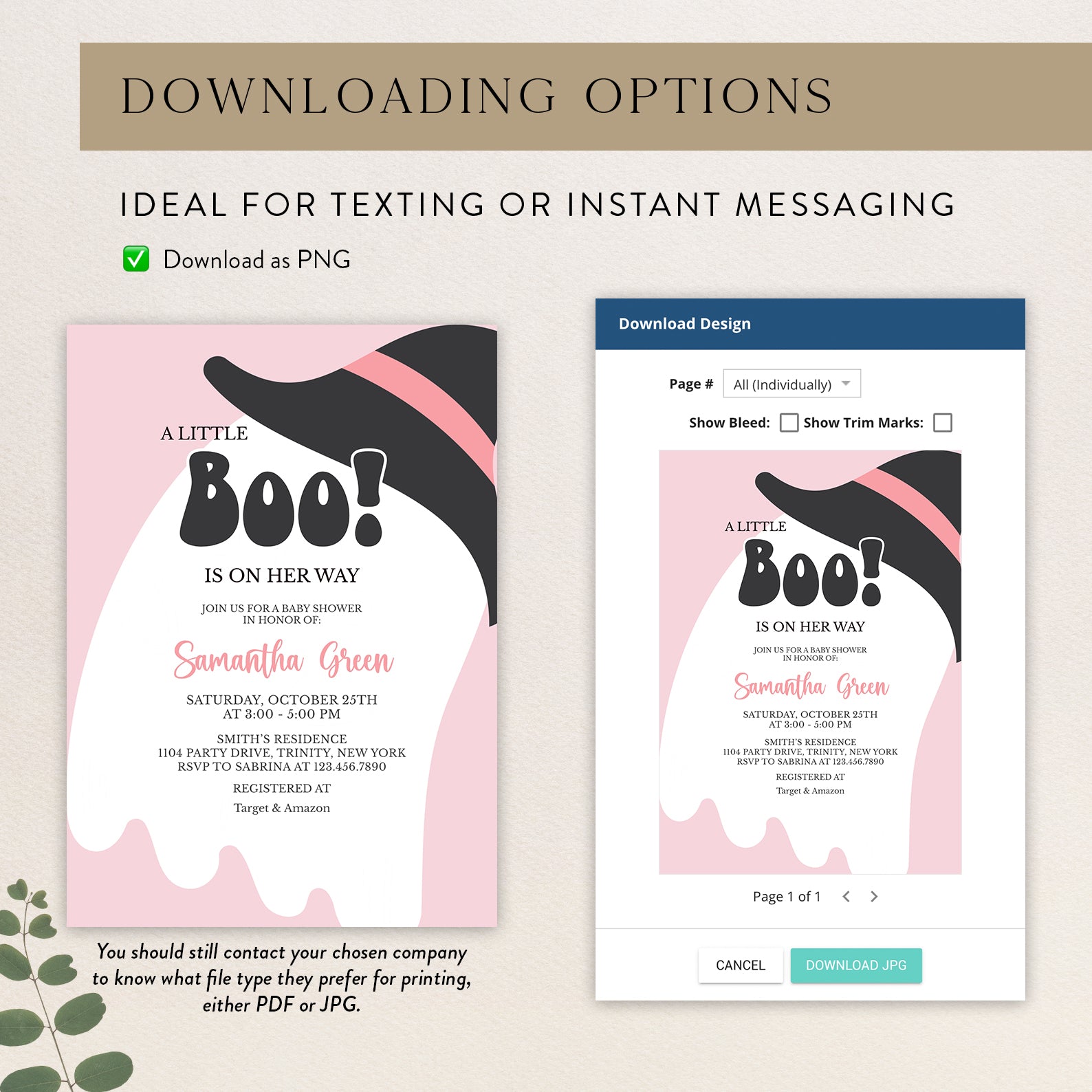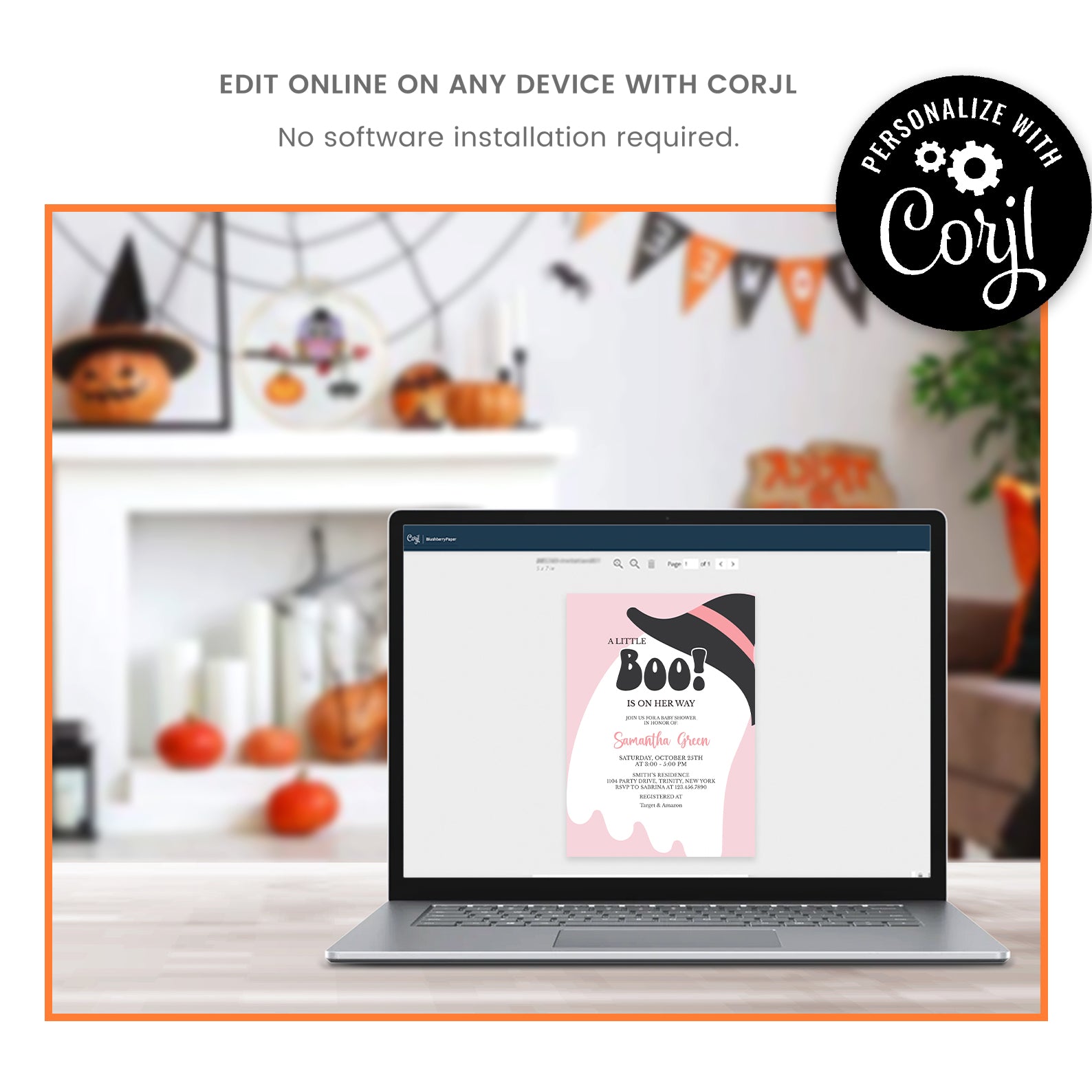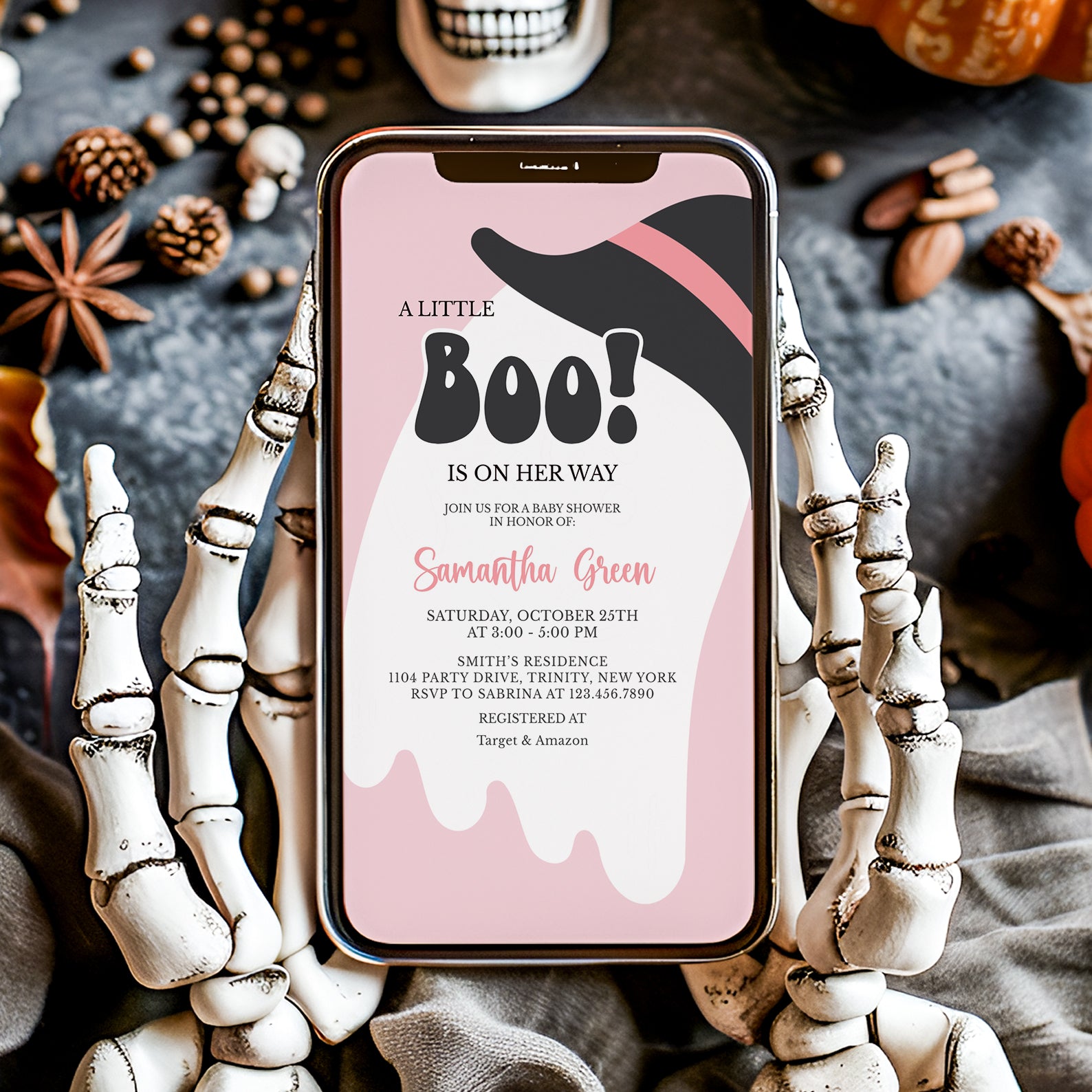 - Purchase this A Little Boo Is On Her Way: Pink Halloween Invite Bundle template