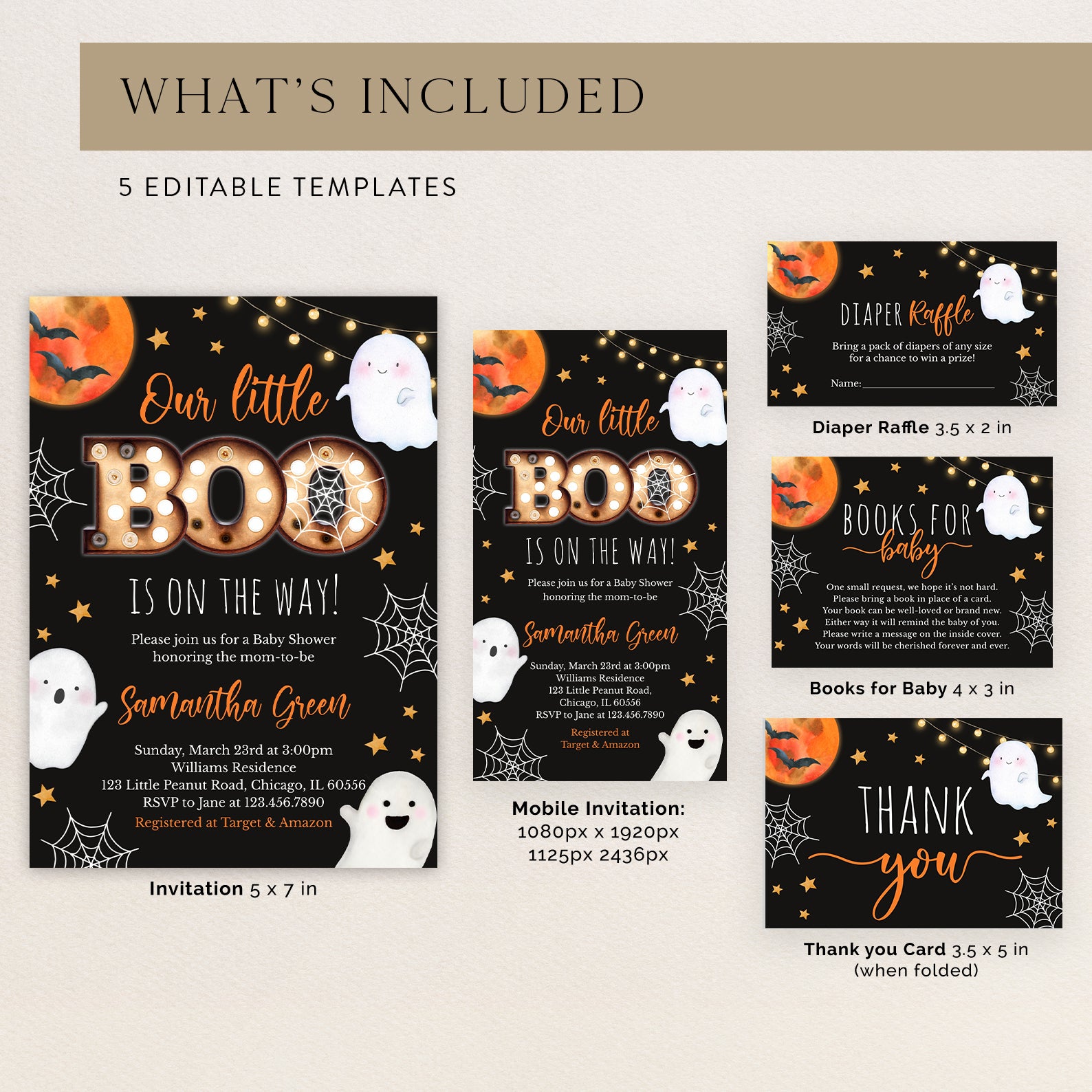 - Purchase this A Little Boo is on the Way: Spooky Invite Bundle with Cute Ghosts template