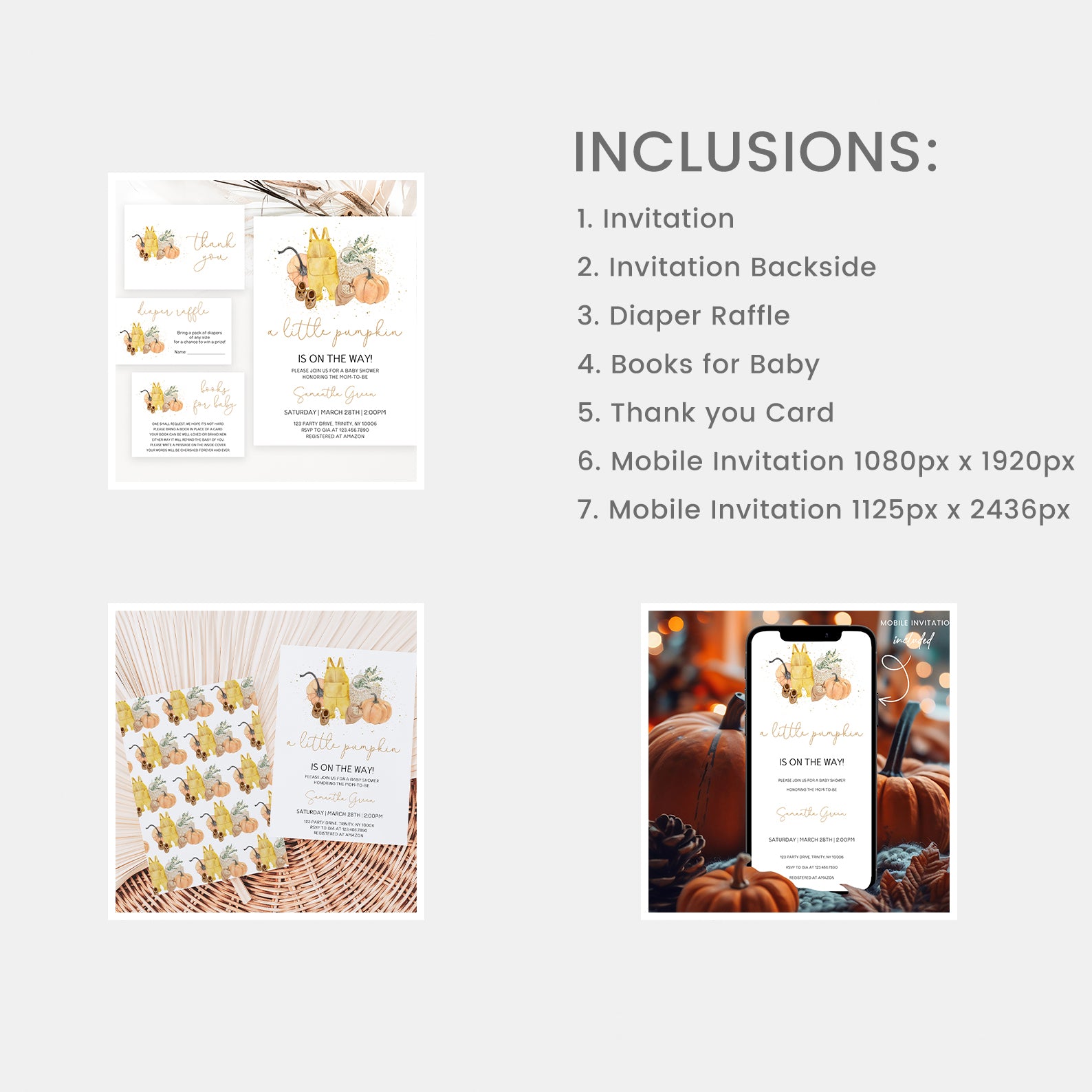- Purchase this A Little Pumpkin Is on the Way Fall Baby Shower Digital Mega Bundle template