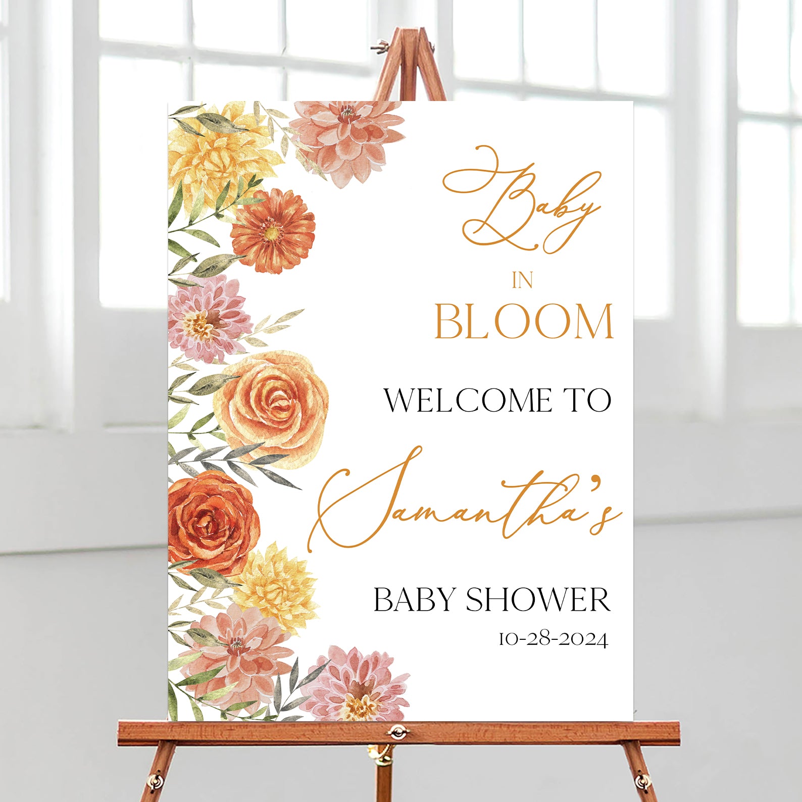 Baby in Bloom Fall Baby Shower Welcome Sign with Flowers & Leaves