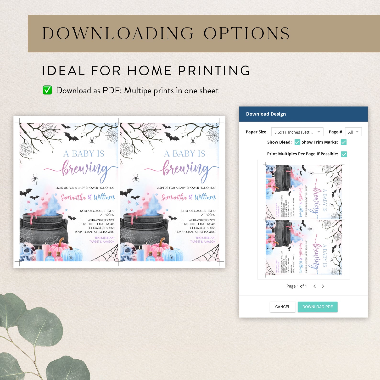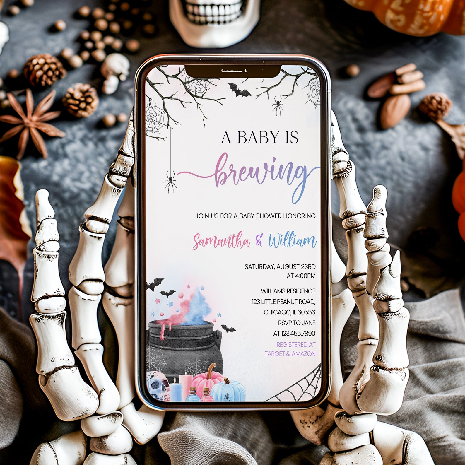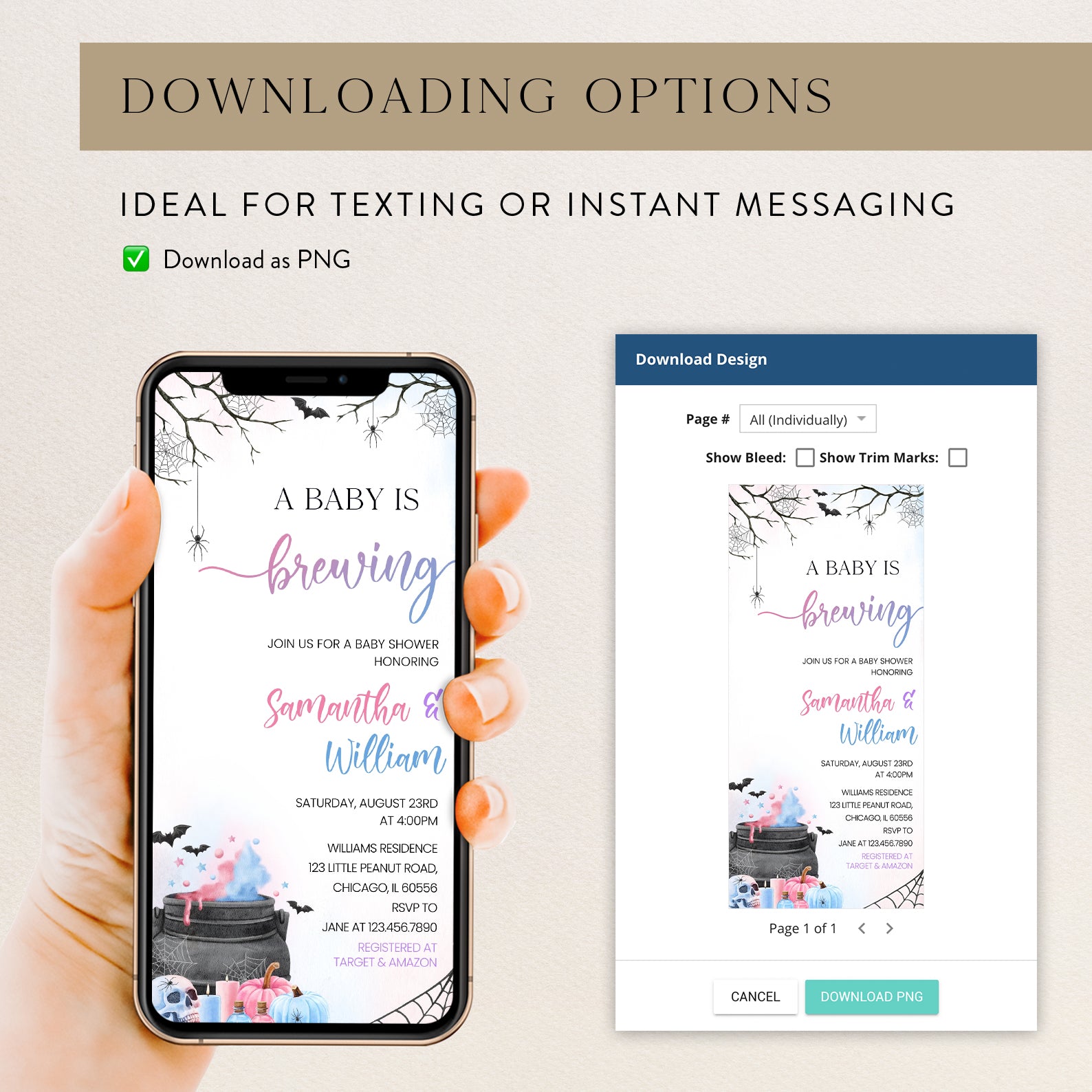 - Purchase this Baby Potion Brewing Invite Bundle: Spooky Bats, Webs, & Pumpkins template
