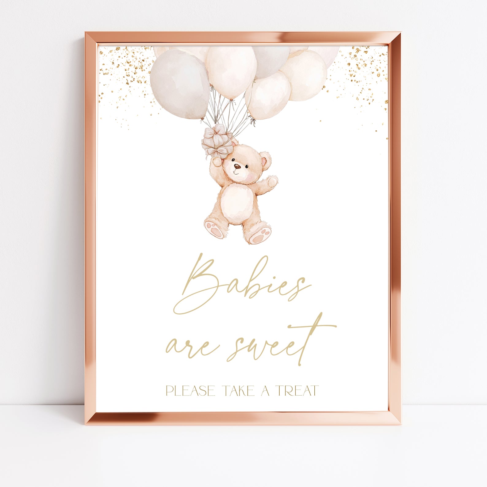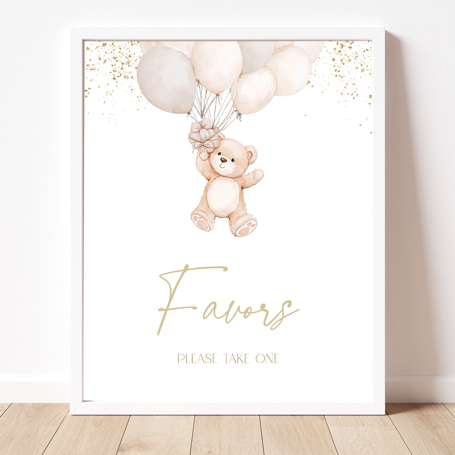 1. Purchase this Baby Shower Digital Table Sign with Bear, Balloons & Gold Accents template