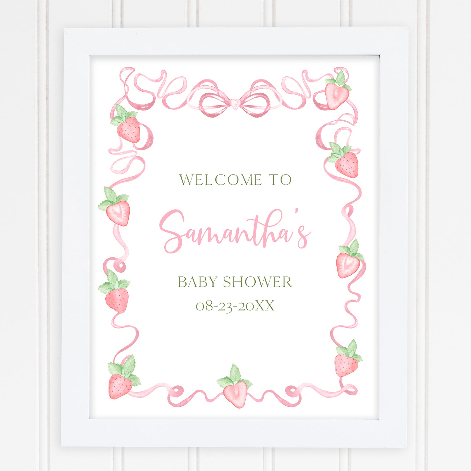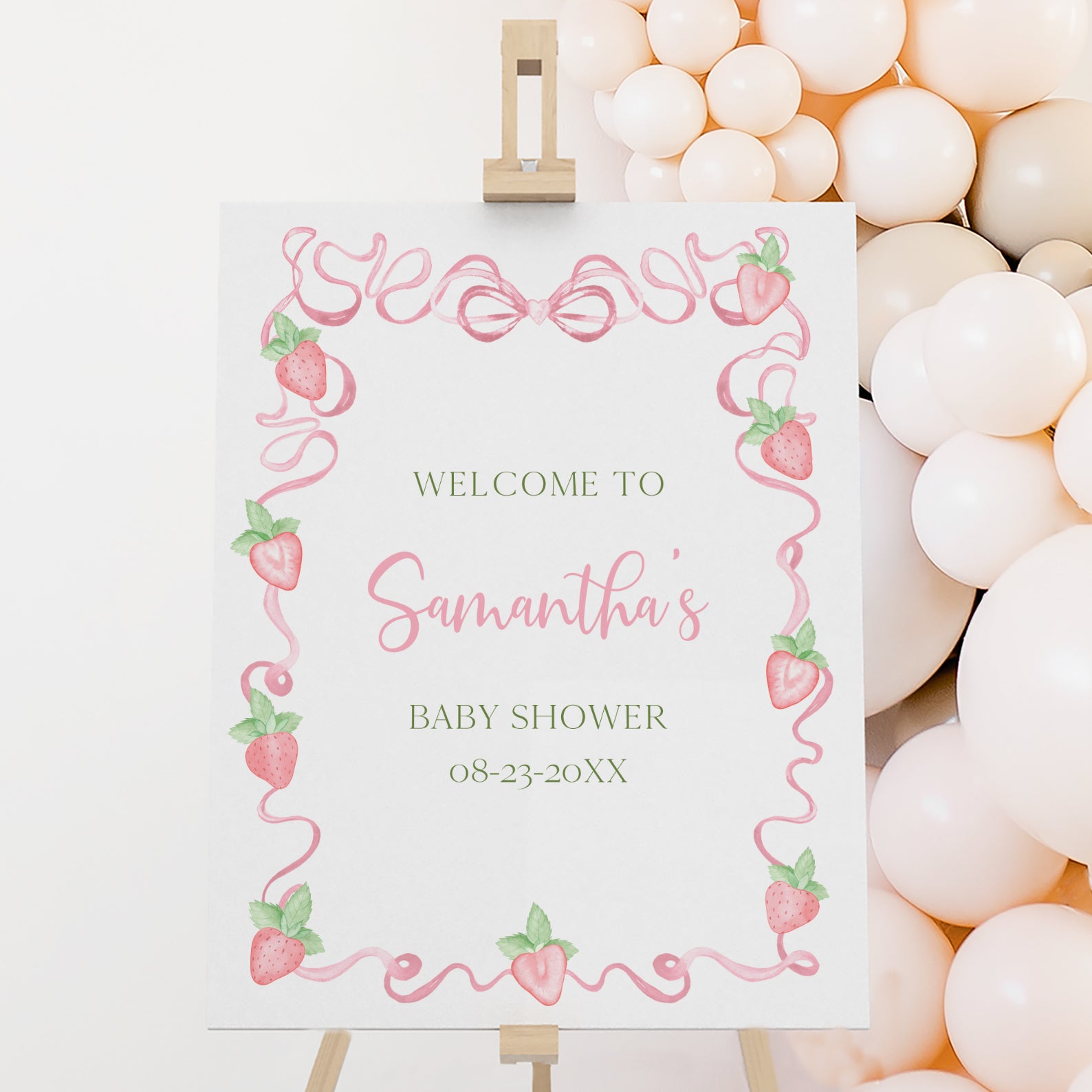 - Purchase this Berry Sweet Baby Shower Welcome Sign with Pink Berries & Ribbons template