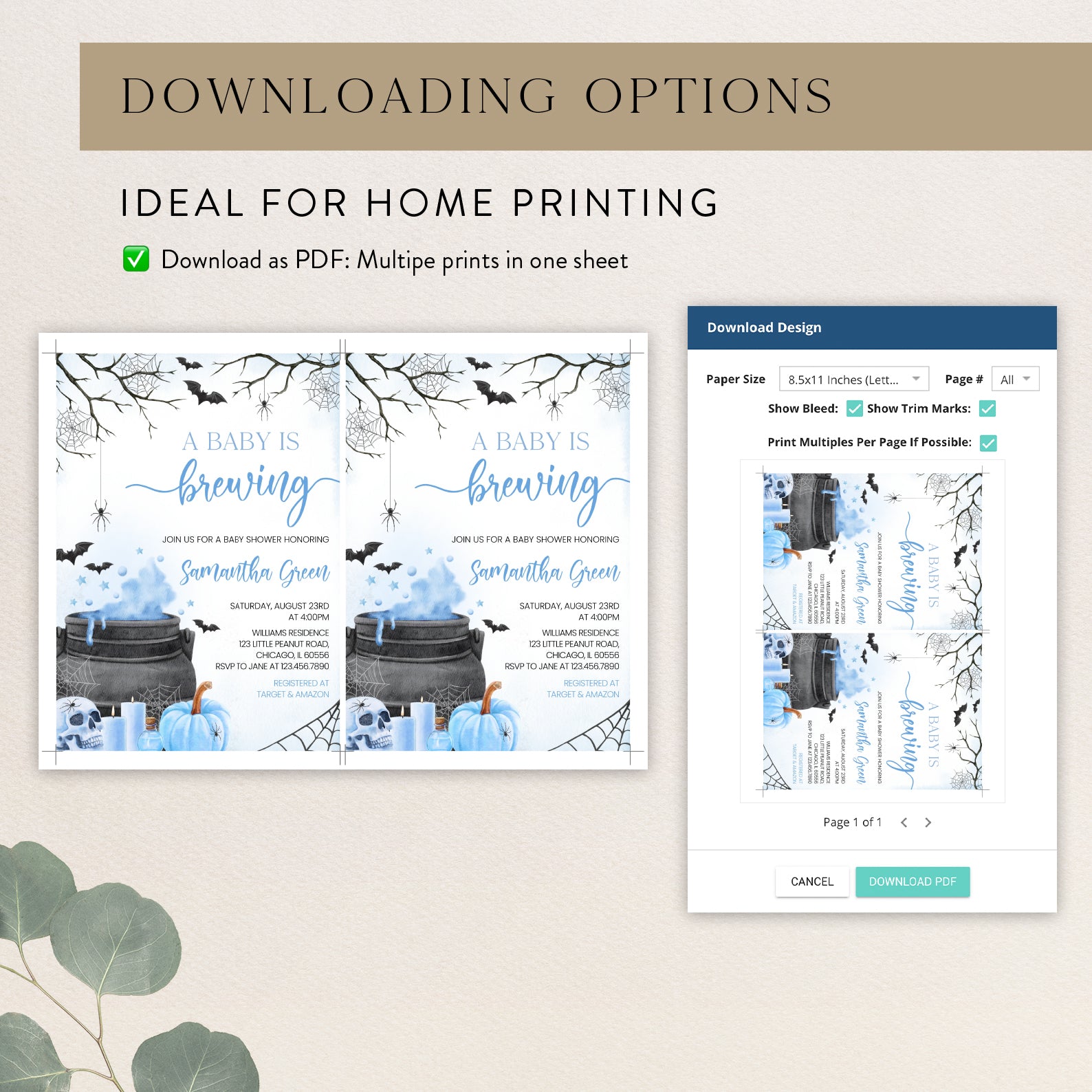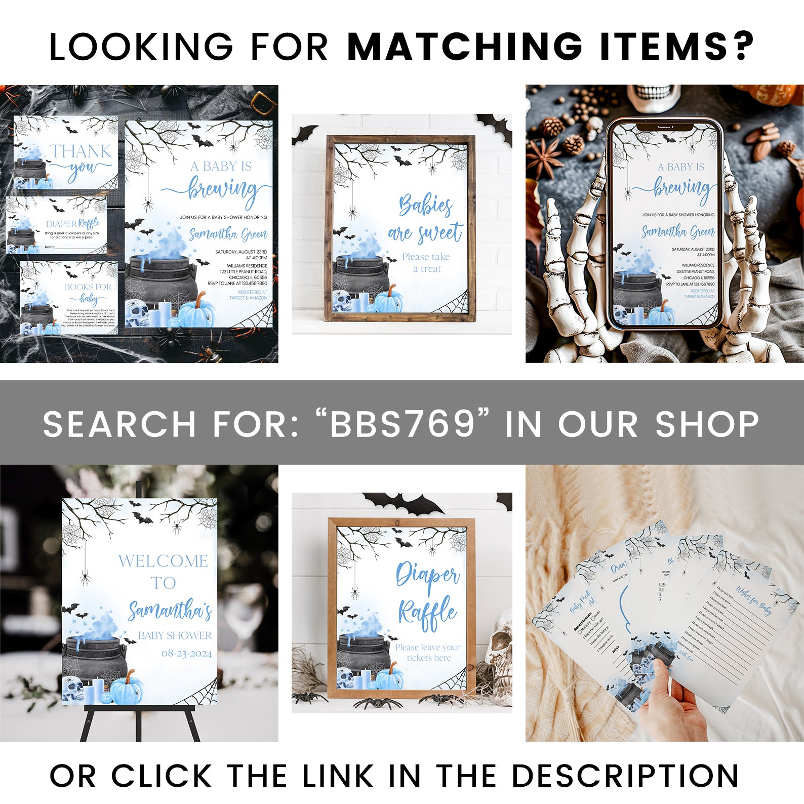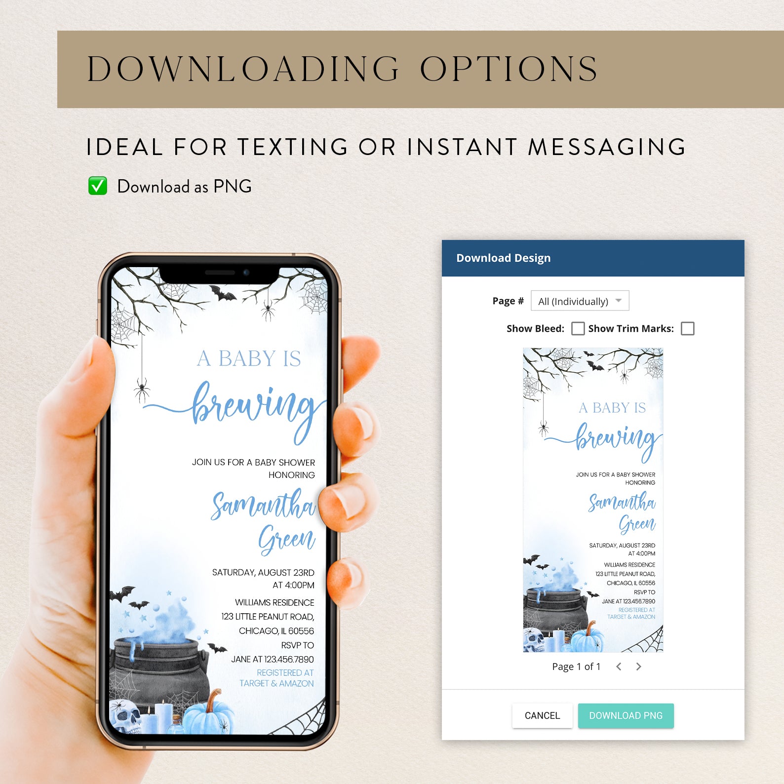 - Purchase this Blue Baby Potion Brewing Invite Bundle: Spooky Bats, Webs, & Pumpkins template