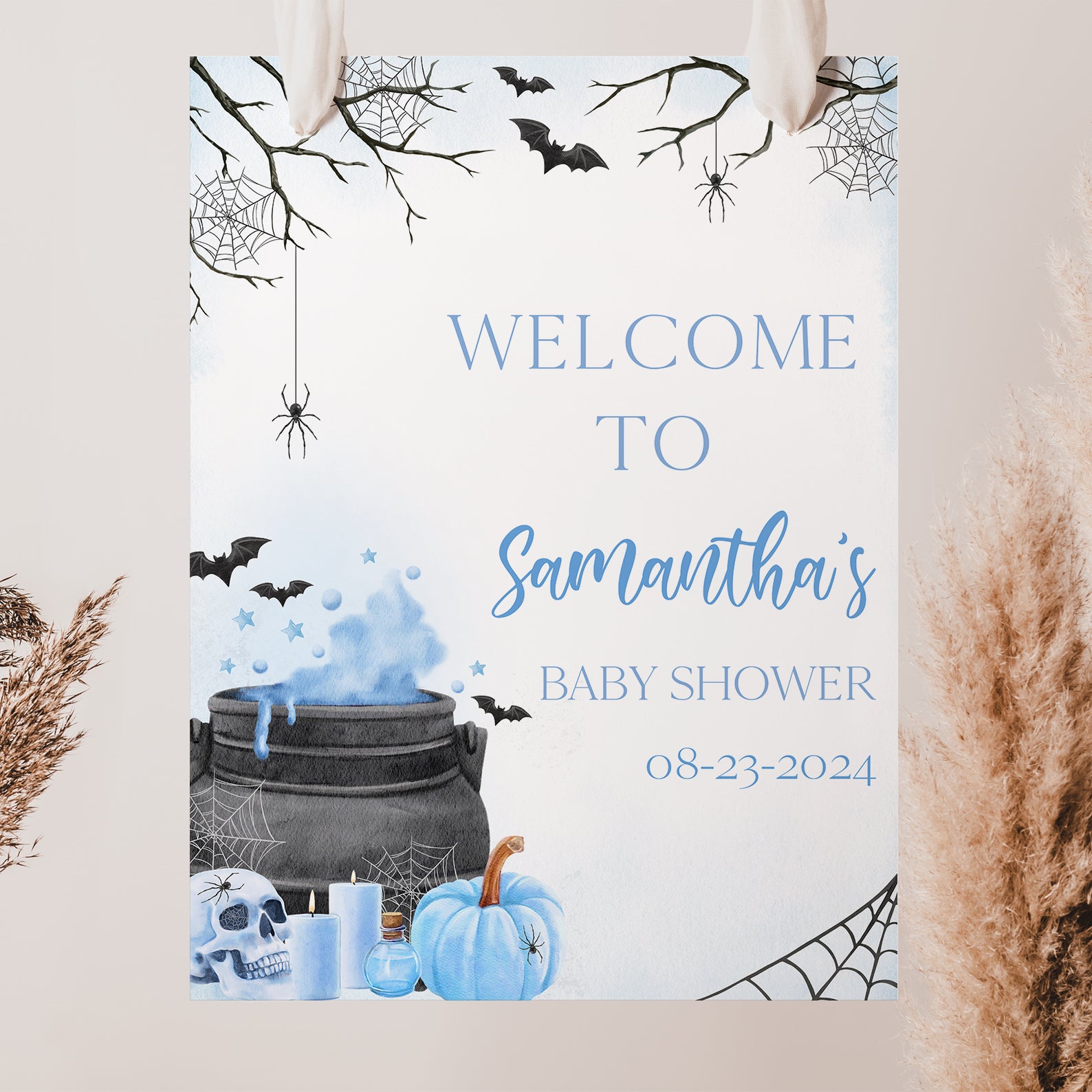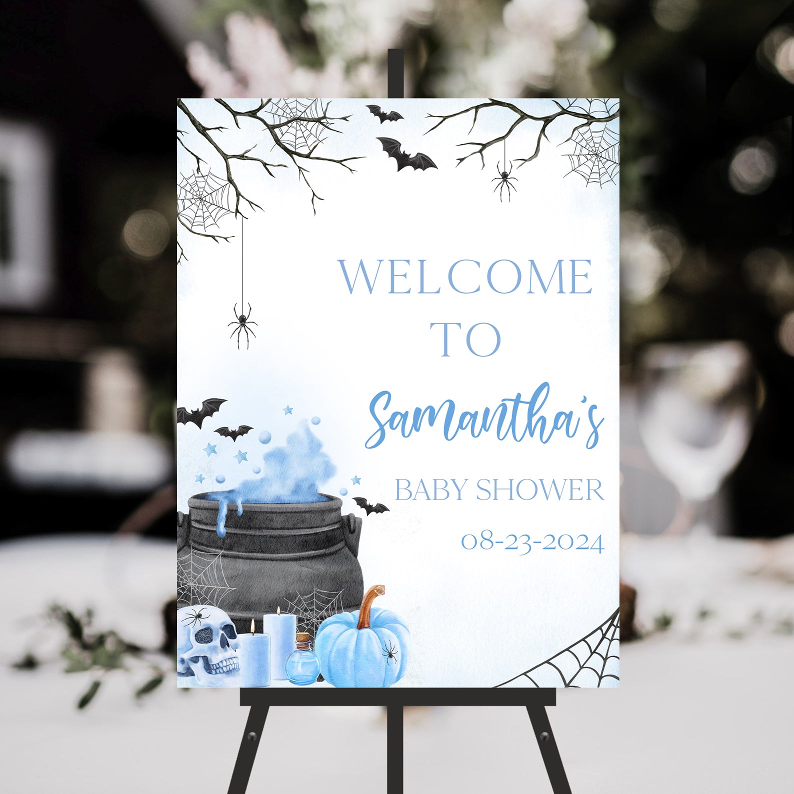 - Purchase this Blue Baby Potion Brewing Welcome Sign: Spooky Bats, Webs, & Pumpkins template