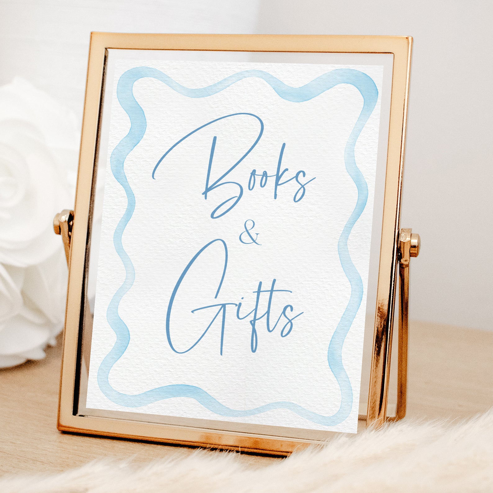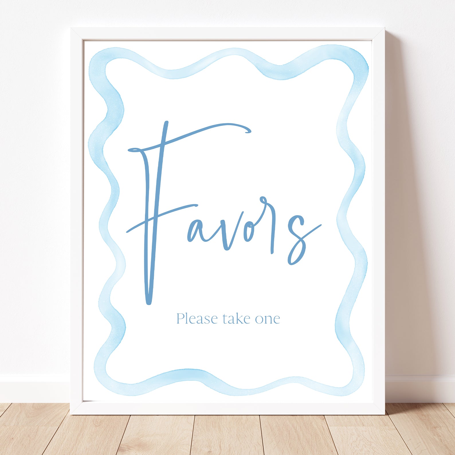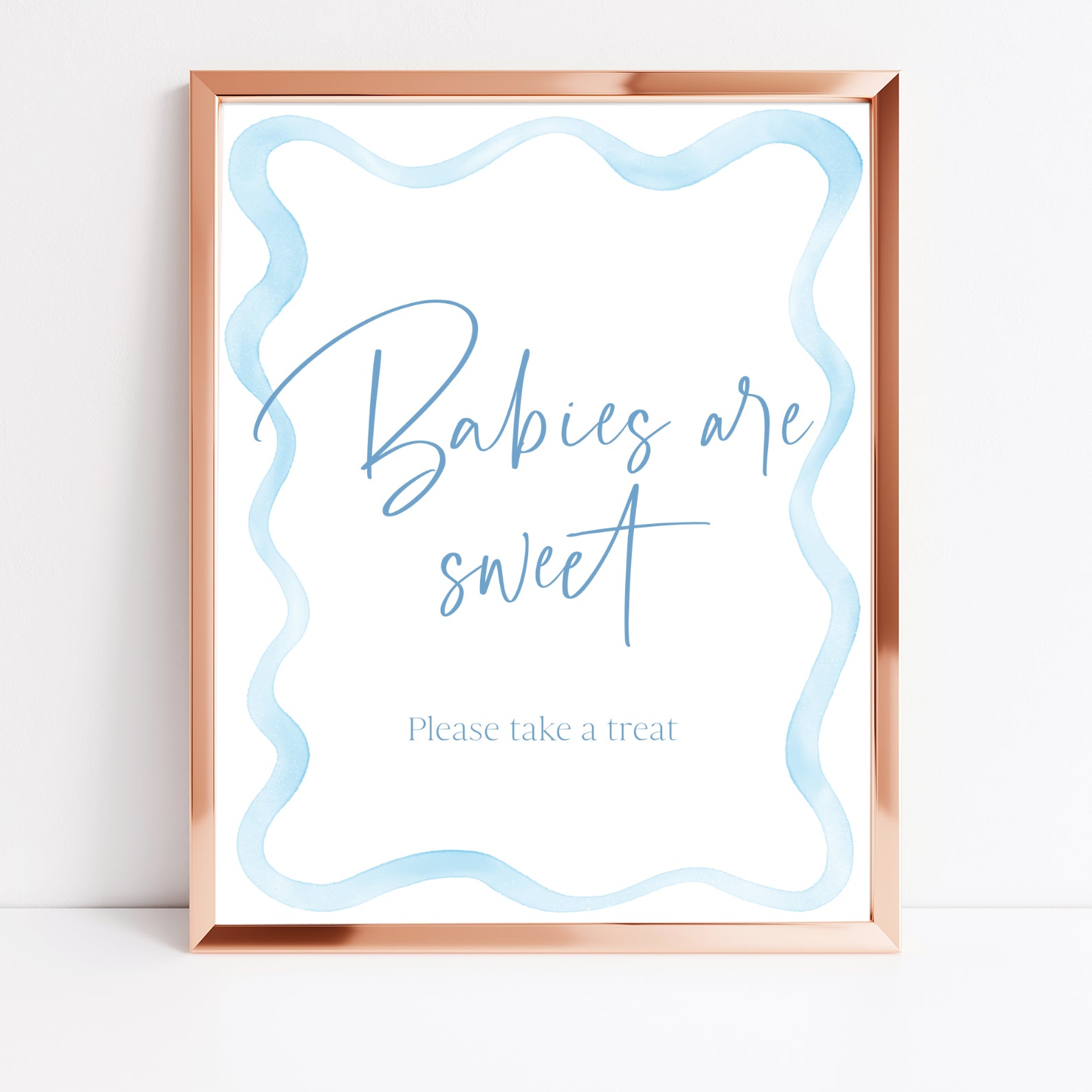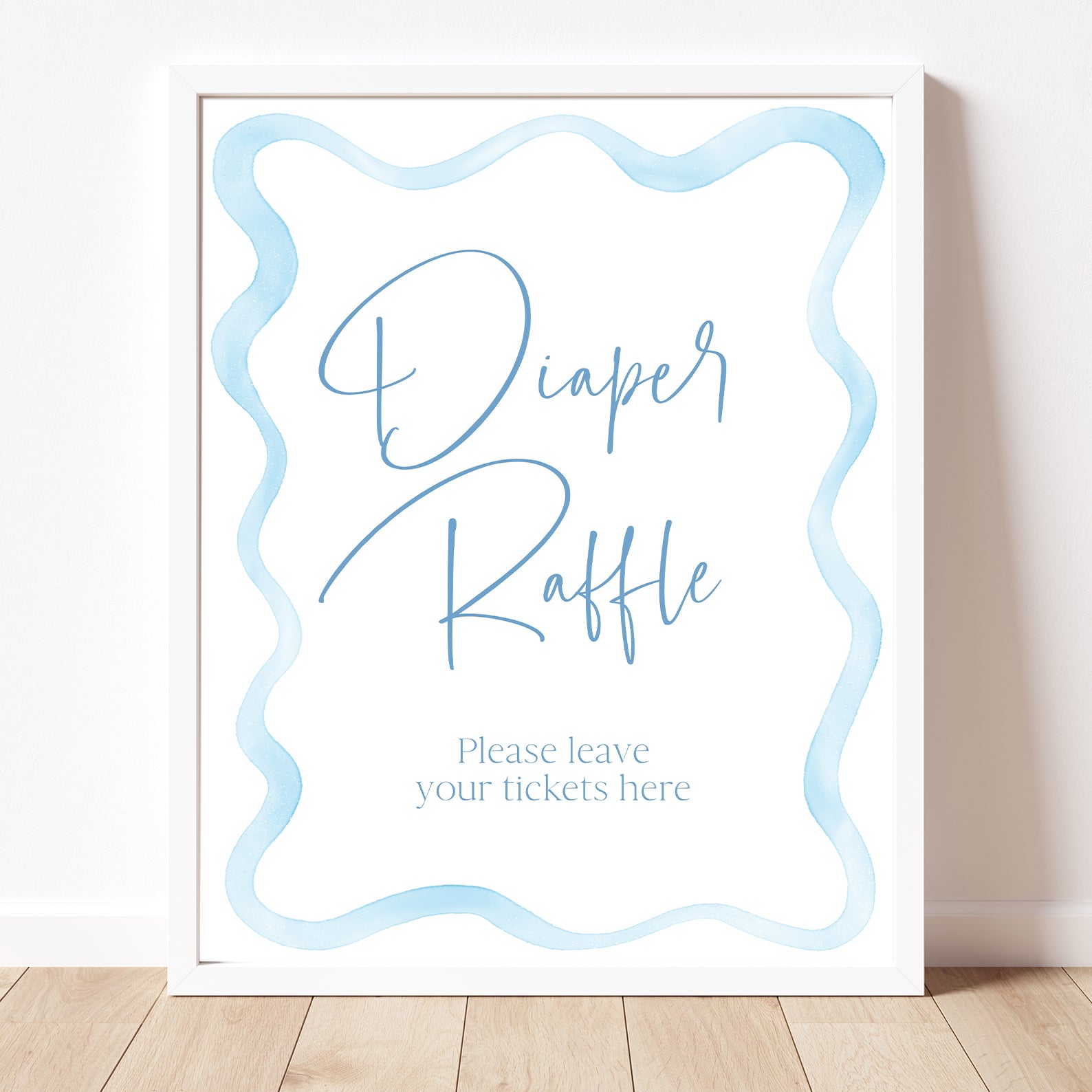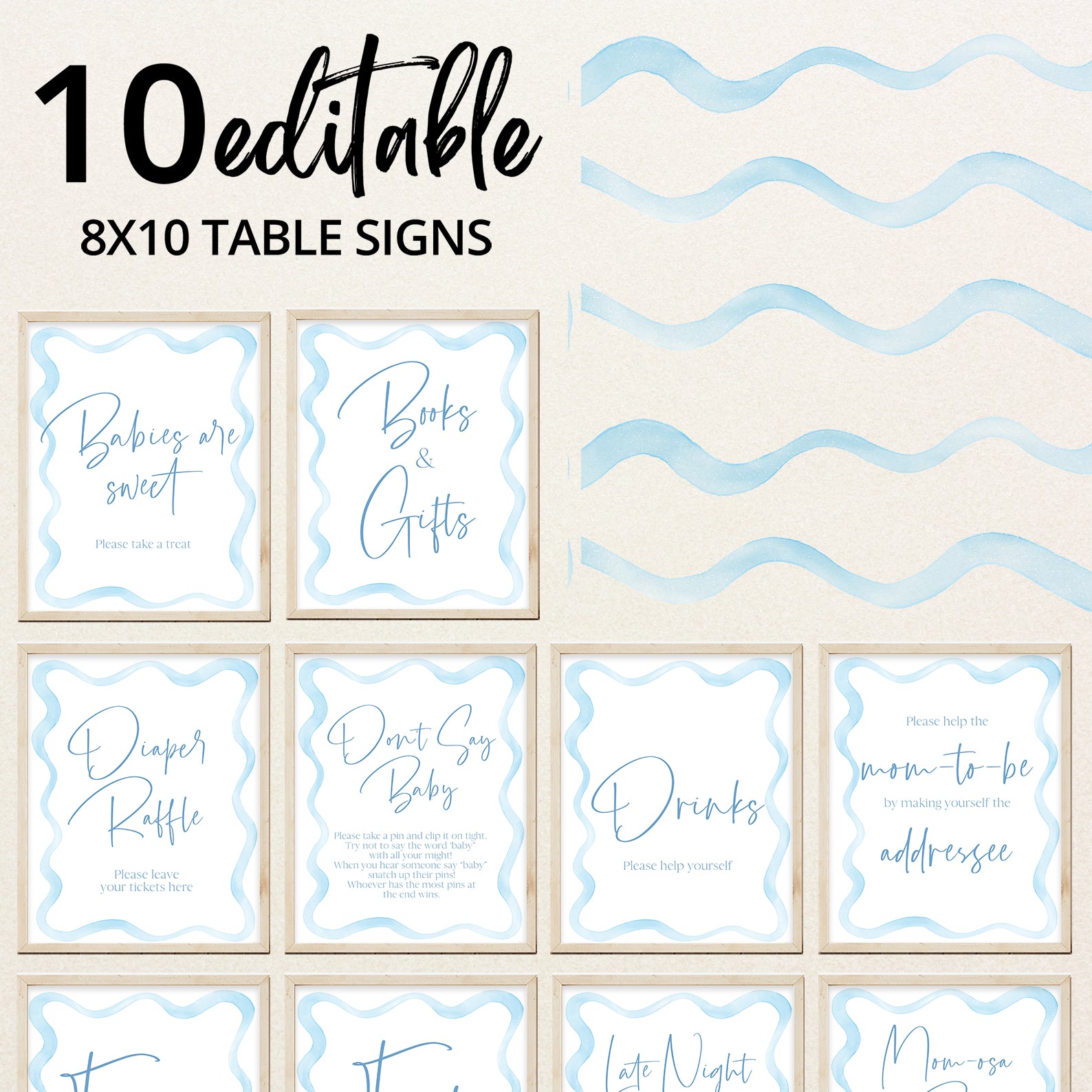 - Purchase this Blue Minimalist Wavy Border Baby Shower Digital Table Sign template