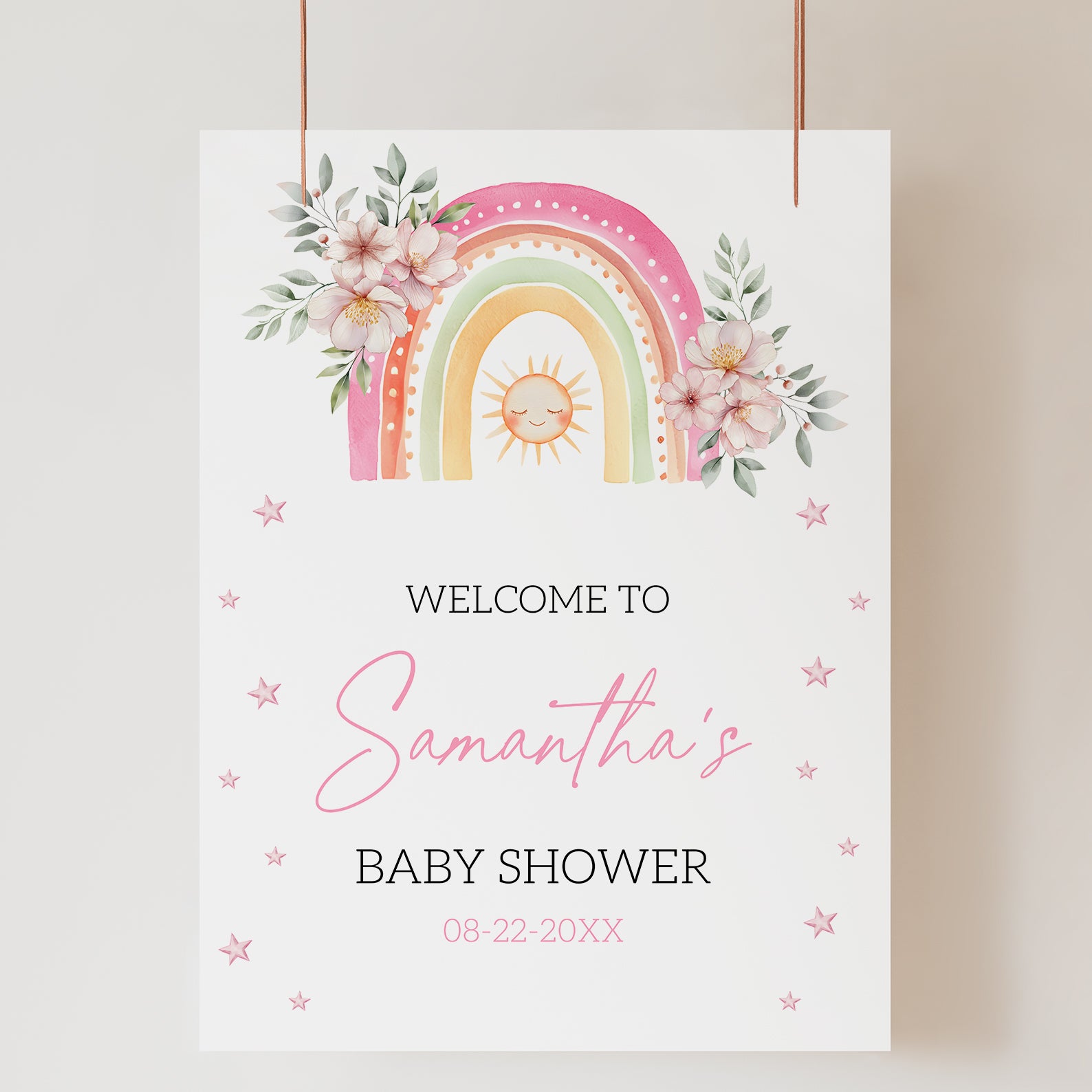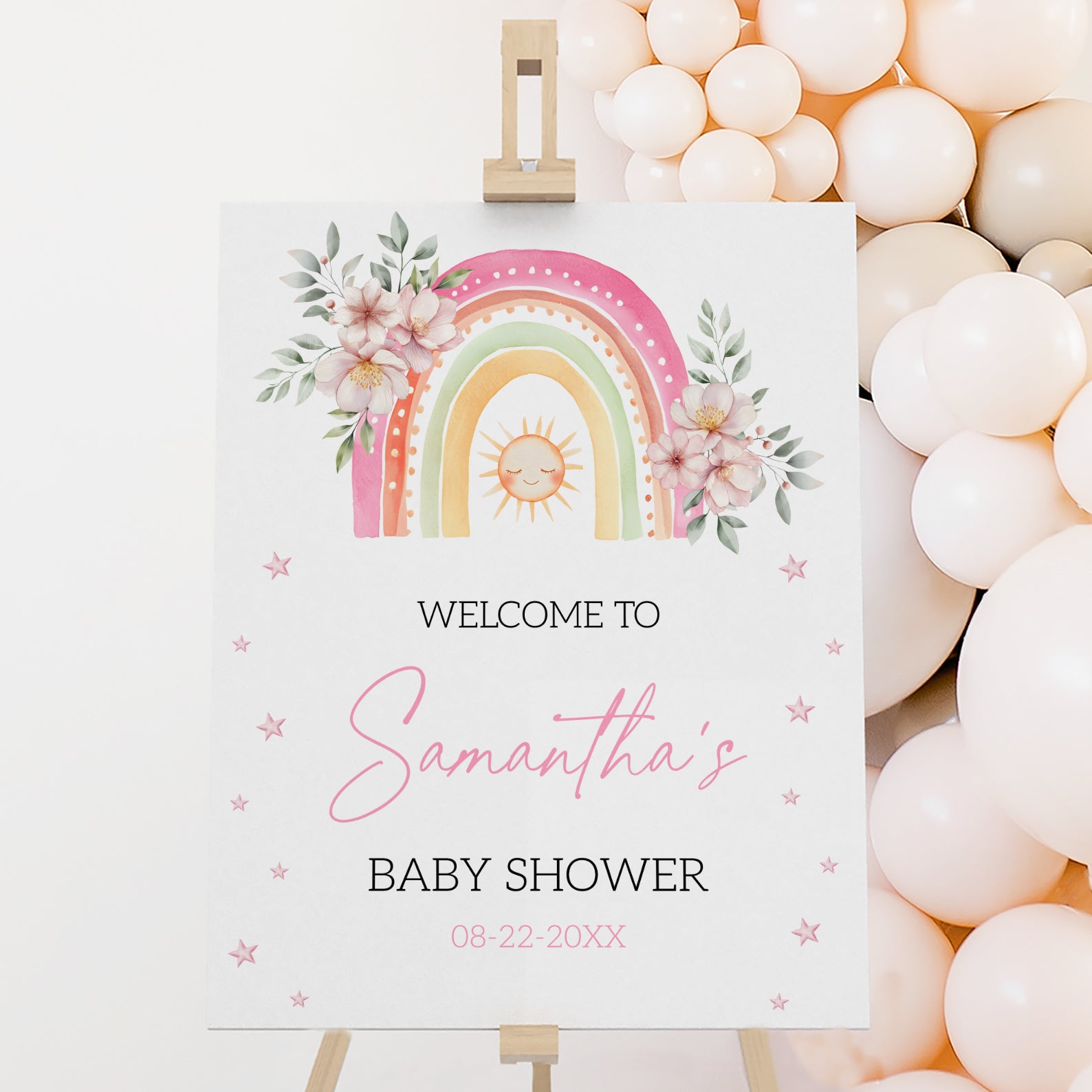 - Purchase this Boho Rainbow & Sun Baby Shower Digital Welcome Sign for Summer template