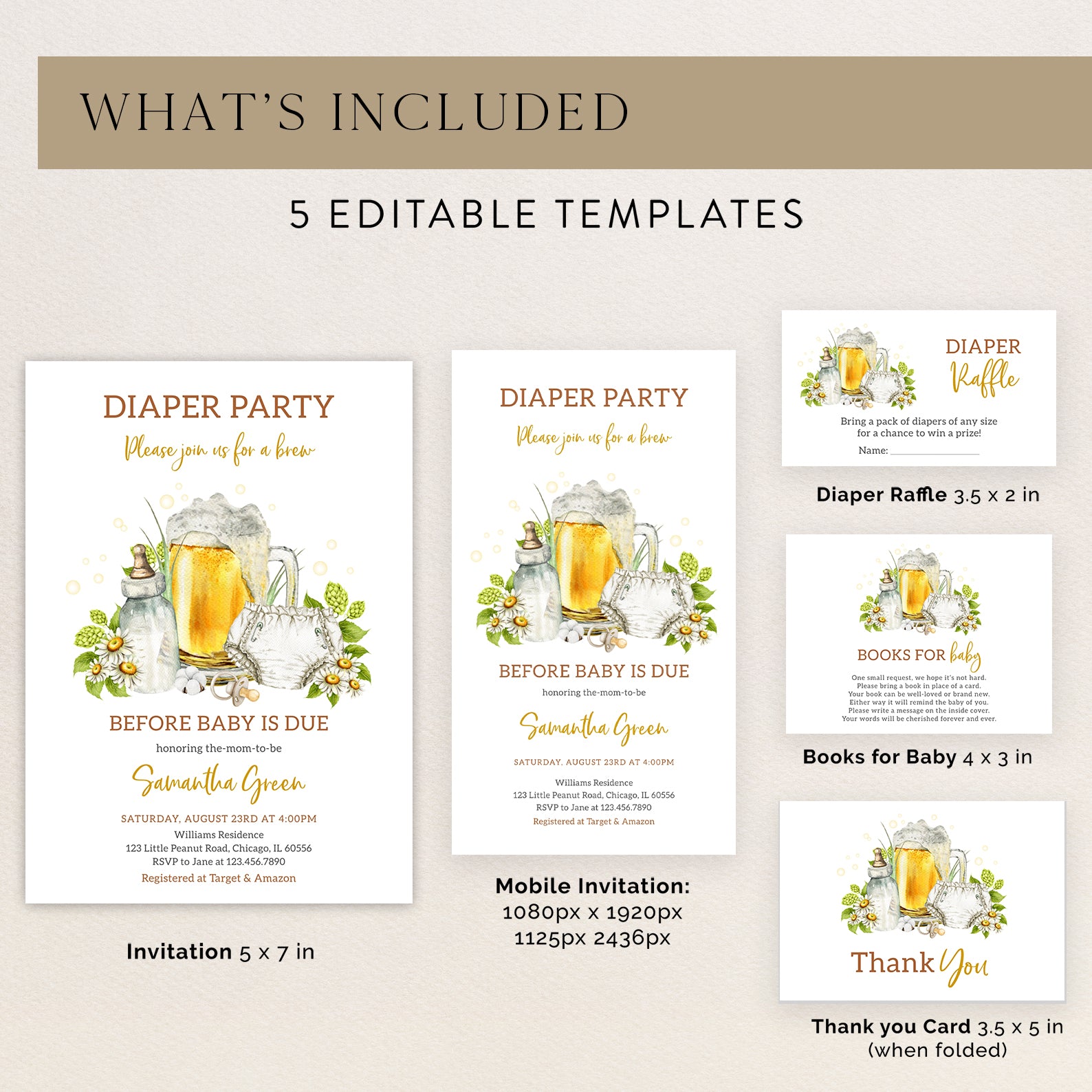 1. Purchase this Brew Before Baby Digital Invite Bundle with Beer Mug & Baby Essentials template