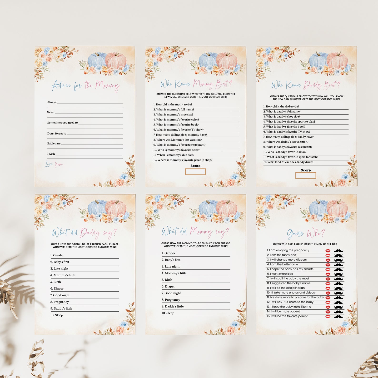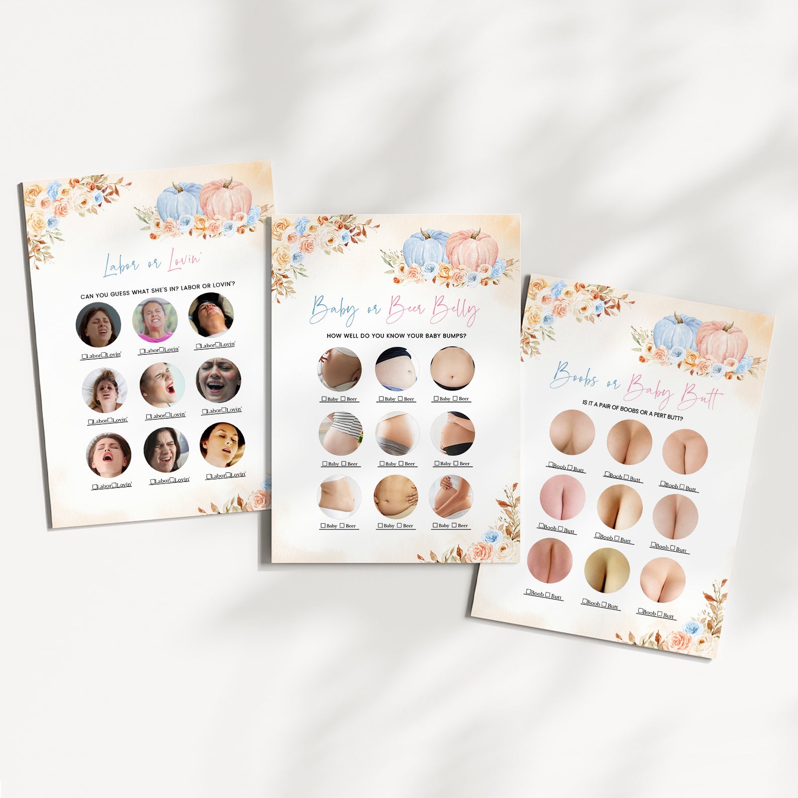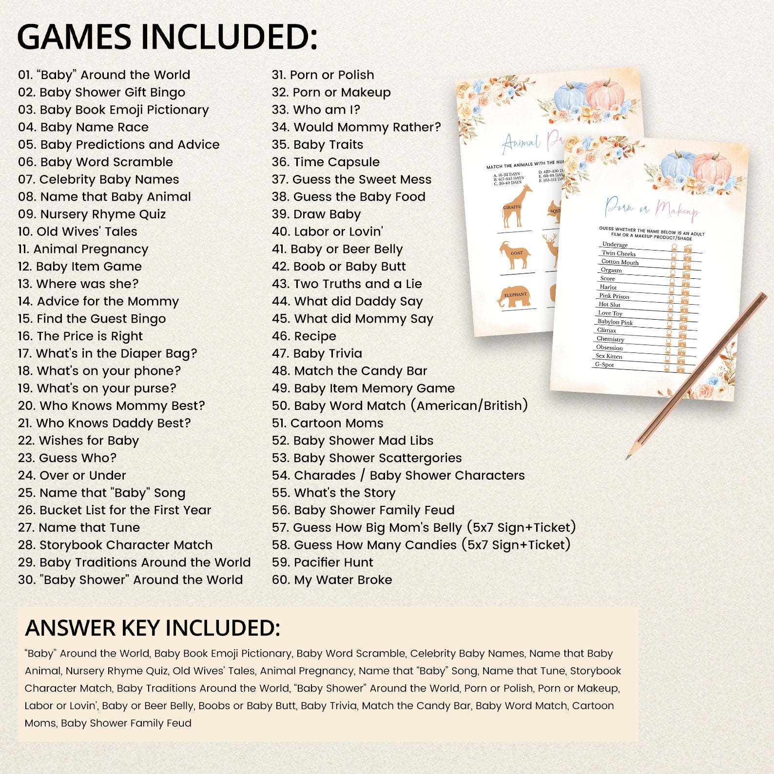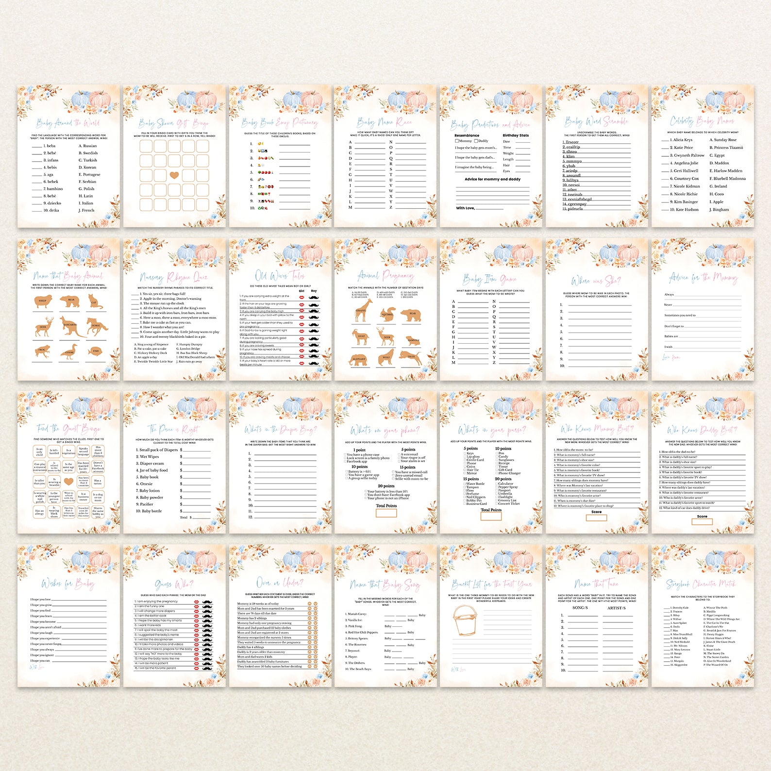 Charming Fall Baby Shower Game Bundle with Roses & Pumpkins