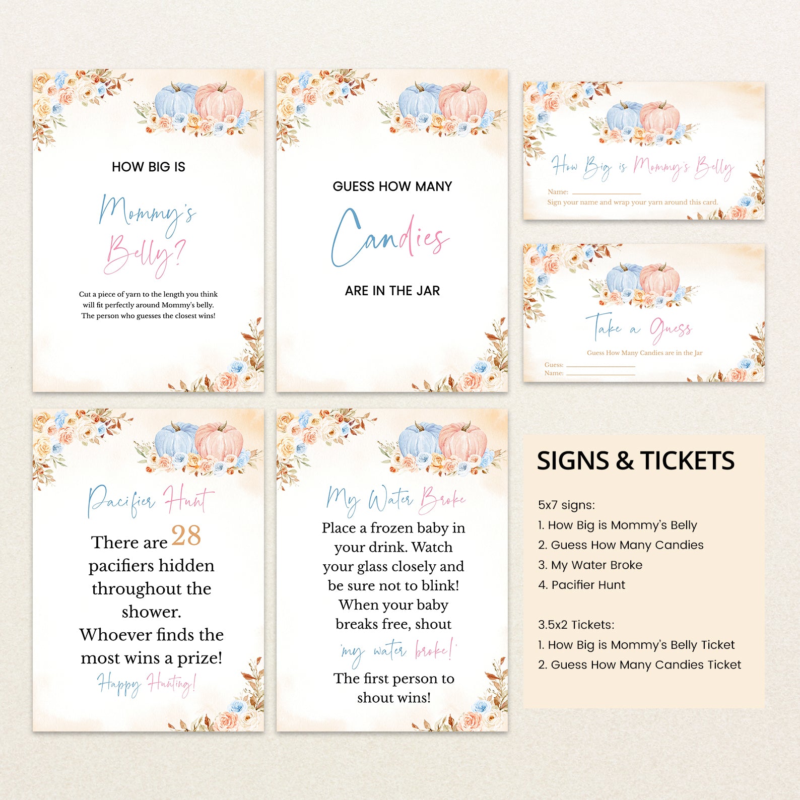 - Purchase this Charming Fall Baby Shower Game Bundle with Roses & Pumpkins template