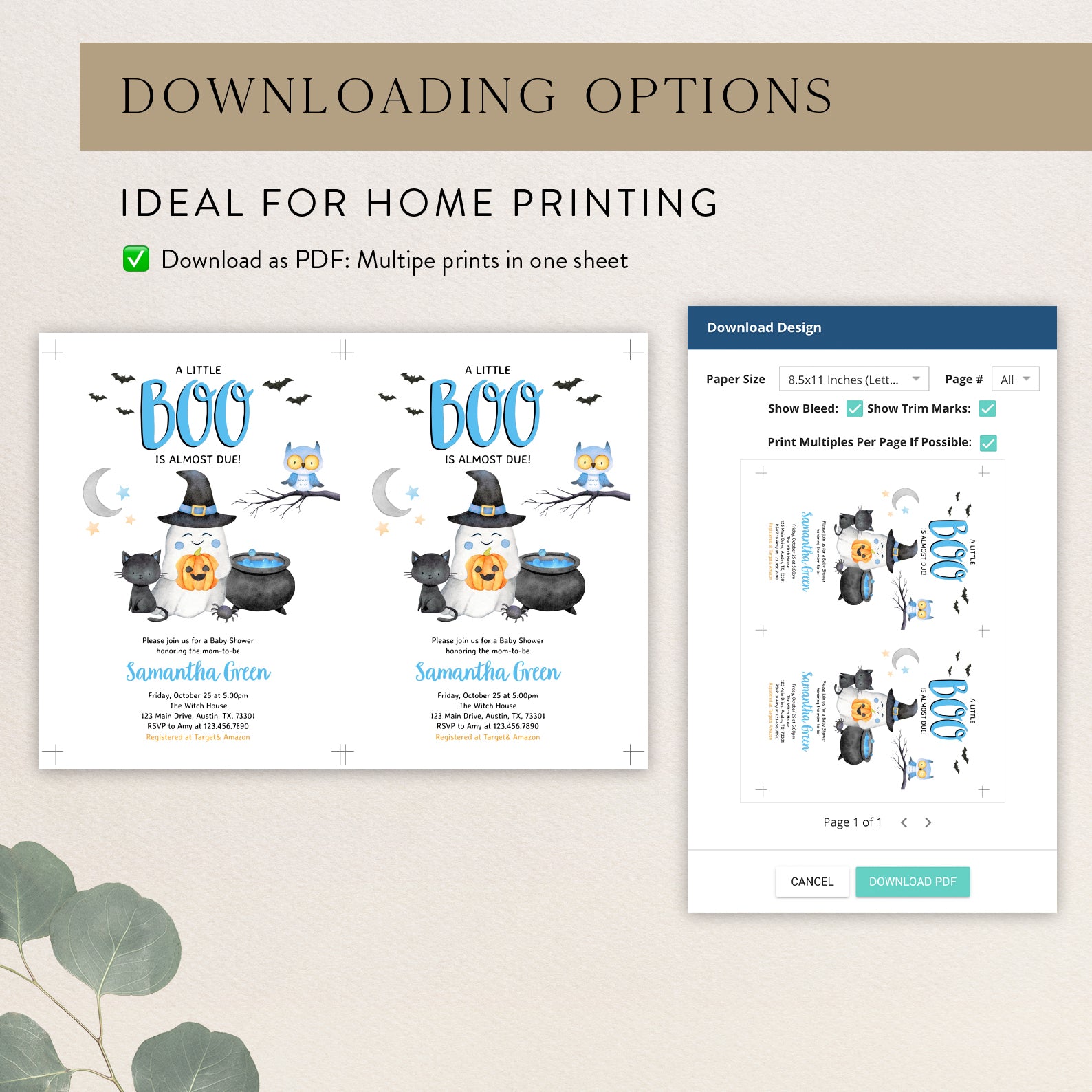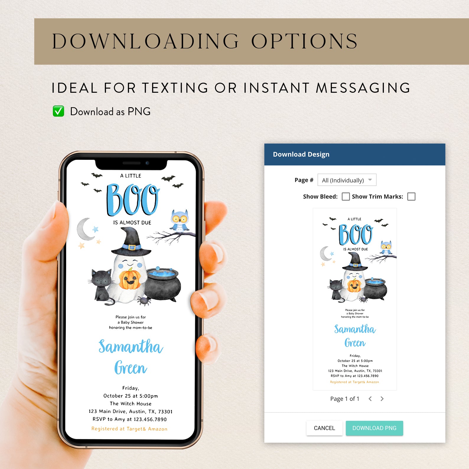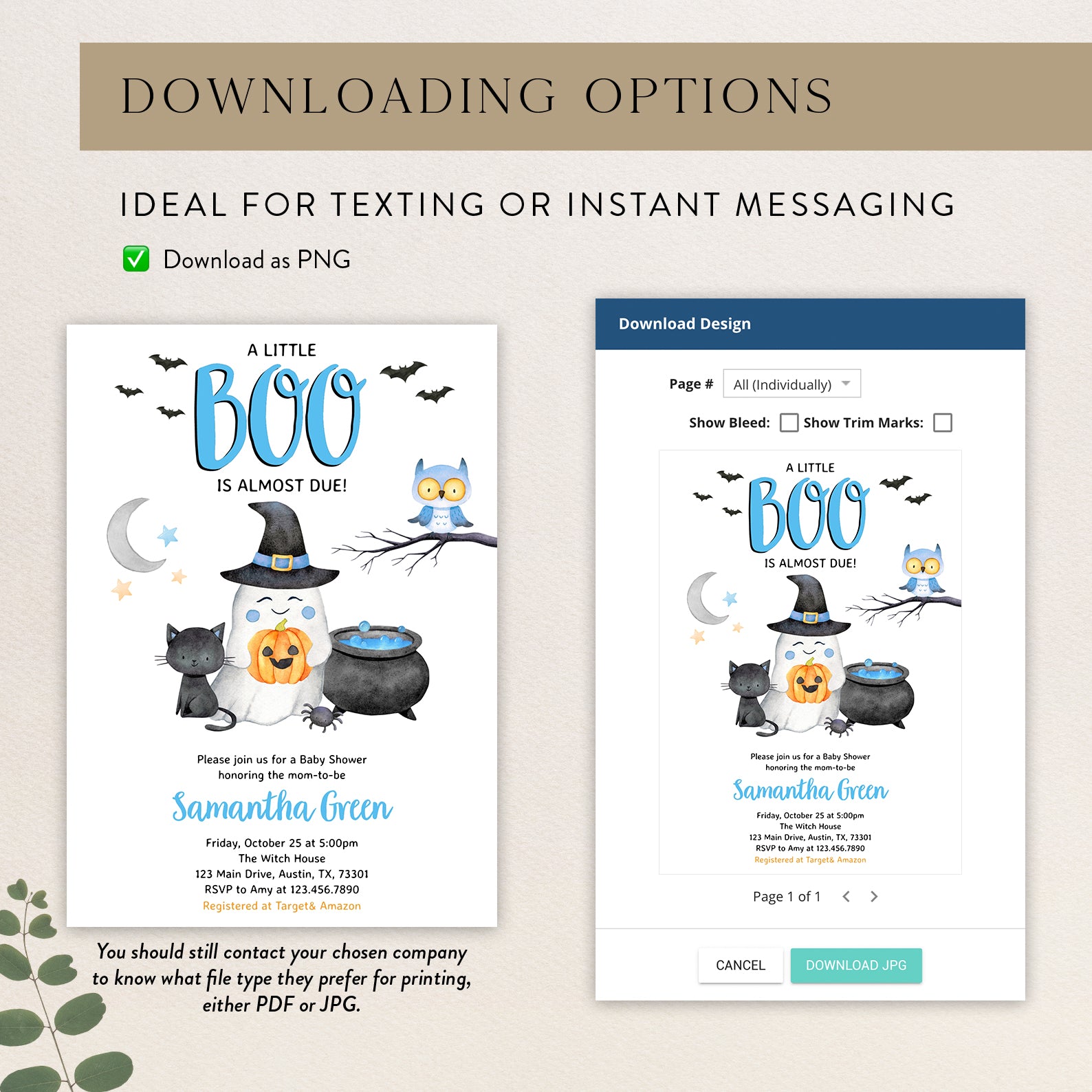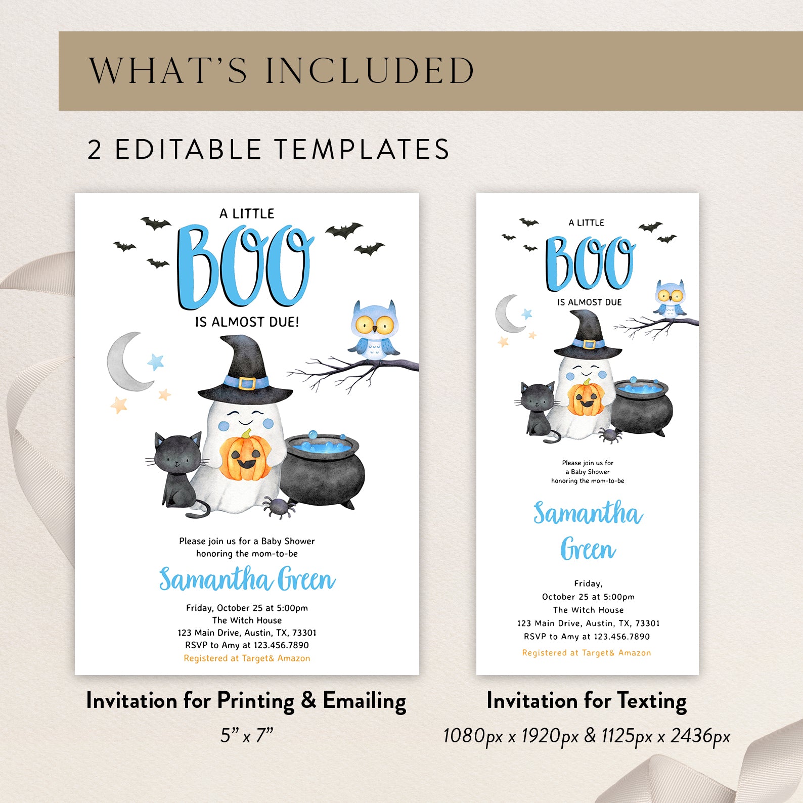 - Purchase this Charming Halloween Digital Invite Bundle: Cute Boo Arriving Soon template