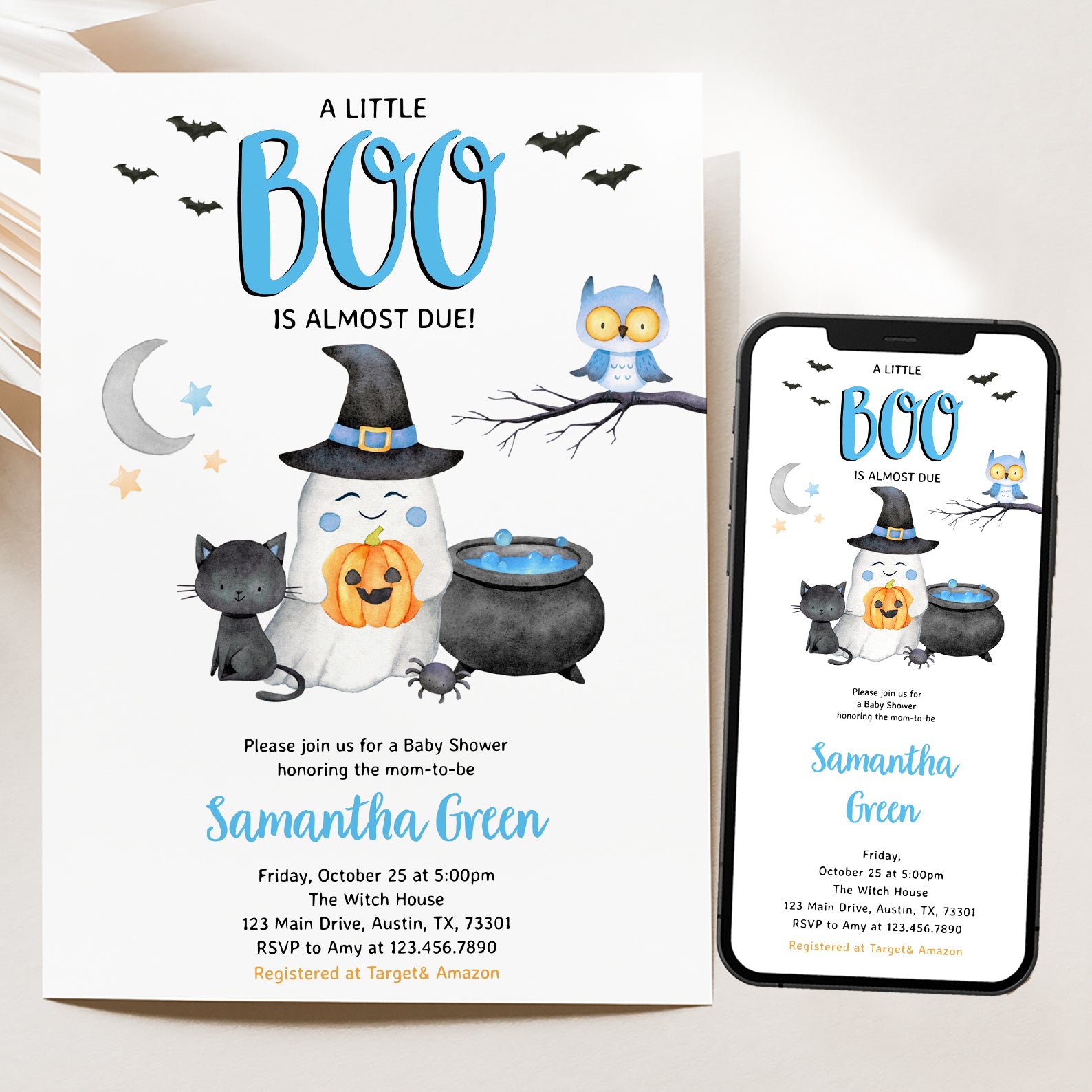 Charming Halloween Digital Invite Bundle: Cute Boo Arriving Soon