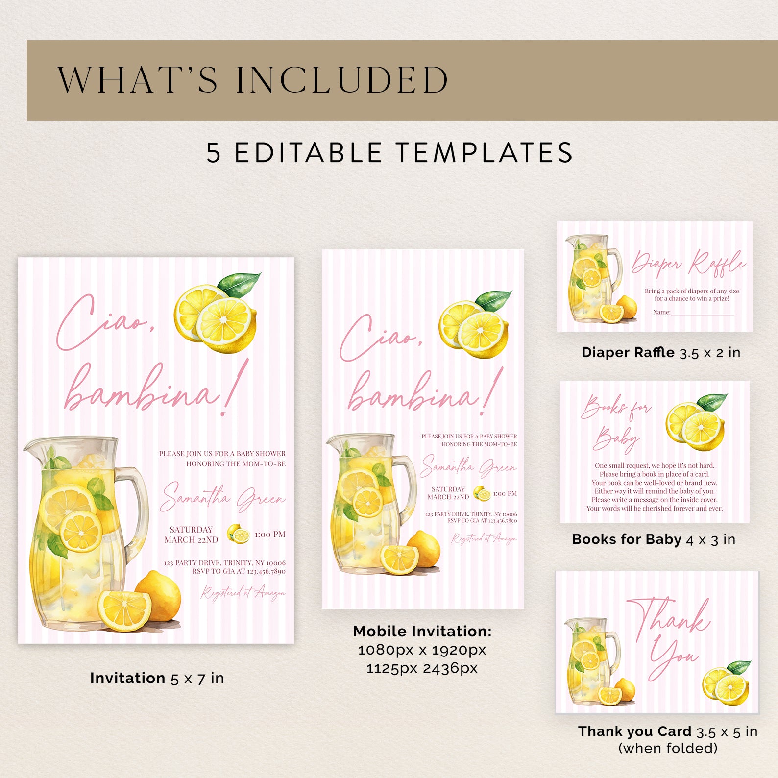 Ciao, Bambina Baby Shower Digital Invite Bundle: Summer Lemon Theme