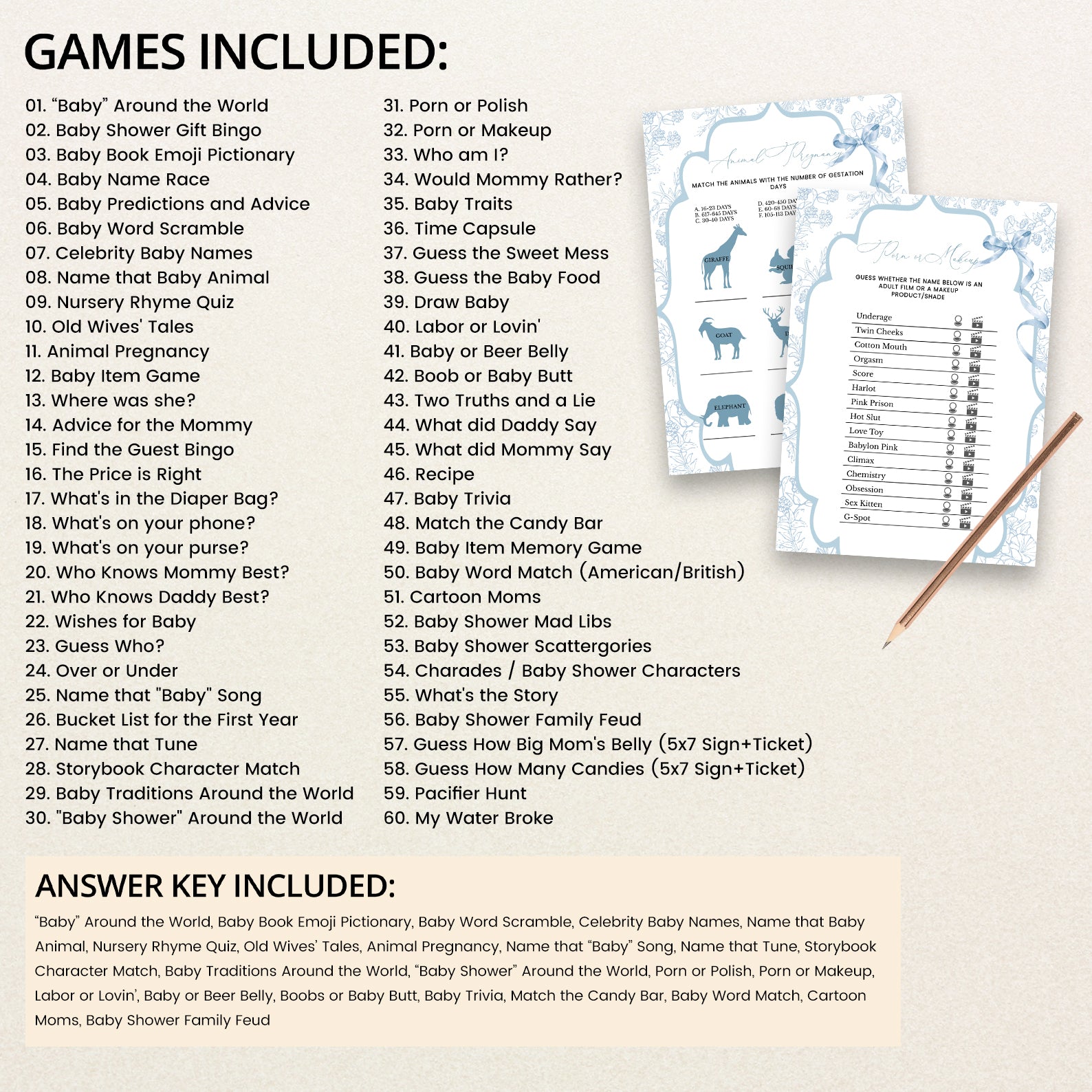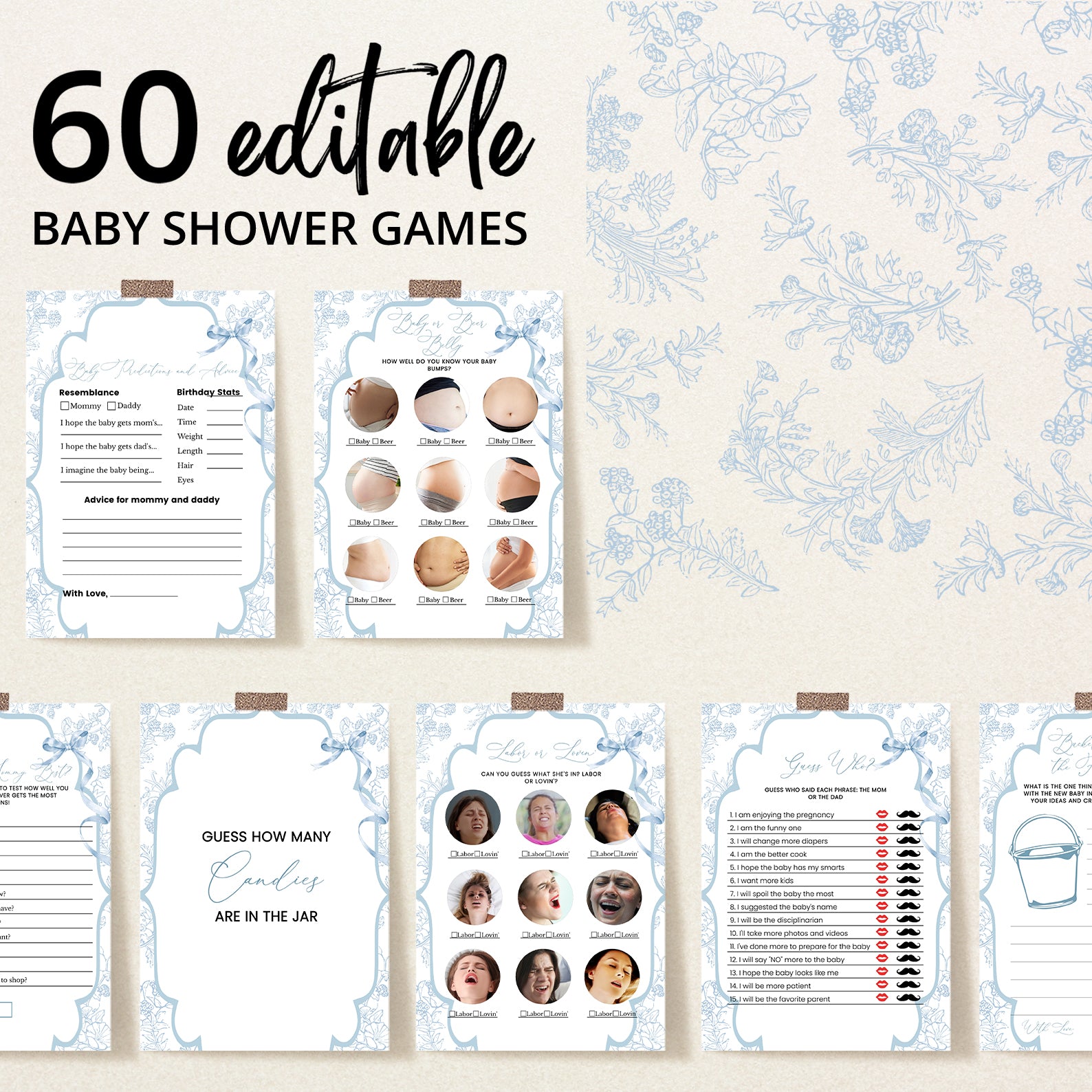 Elegant Blue Baby Shower Digital Game Bundle: A Sweet Little Boy