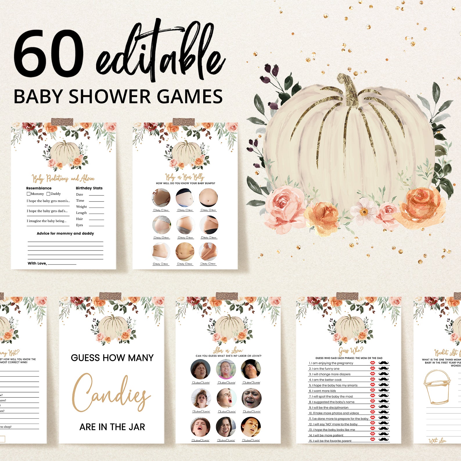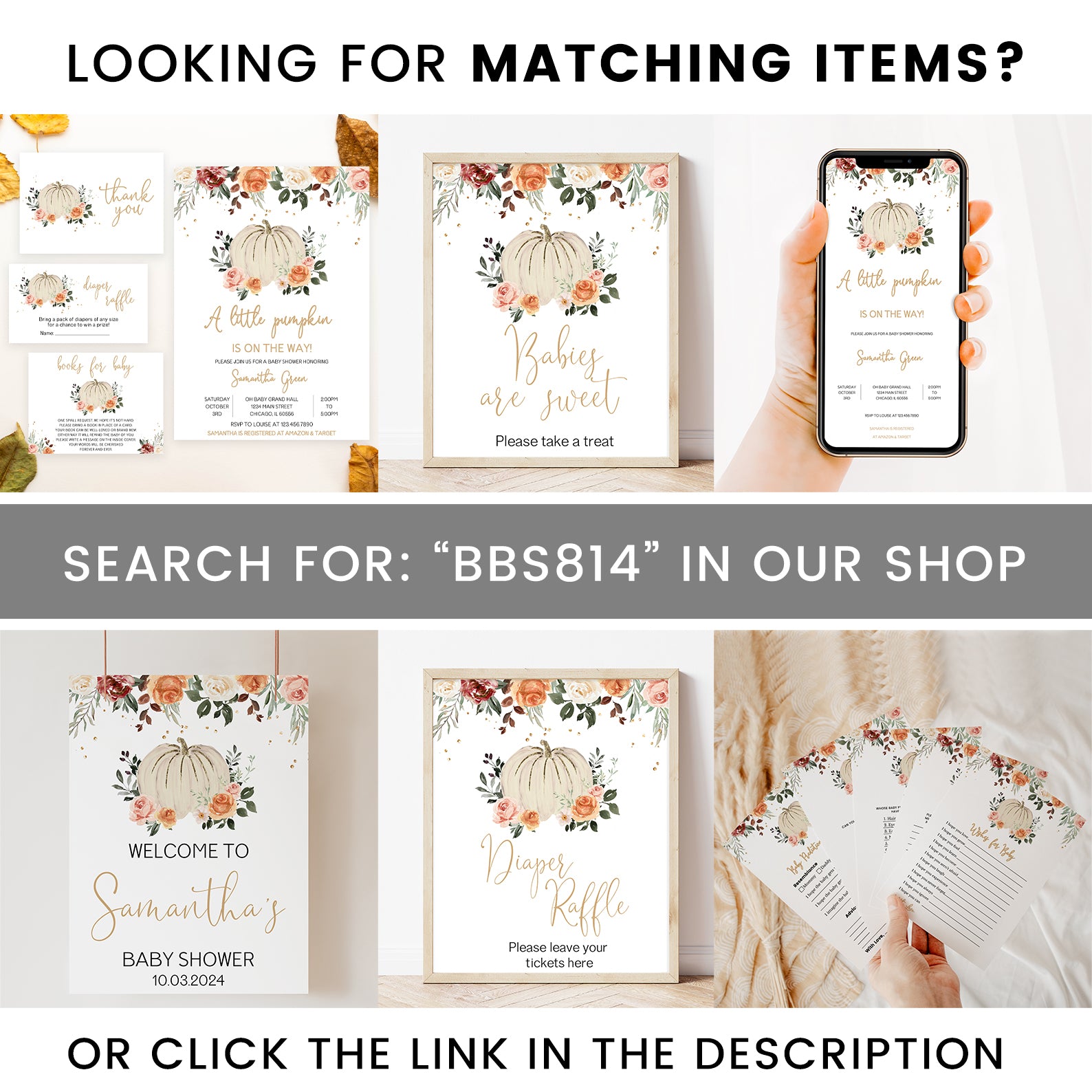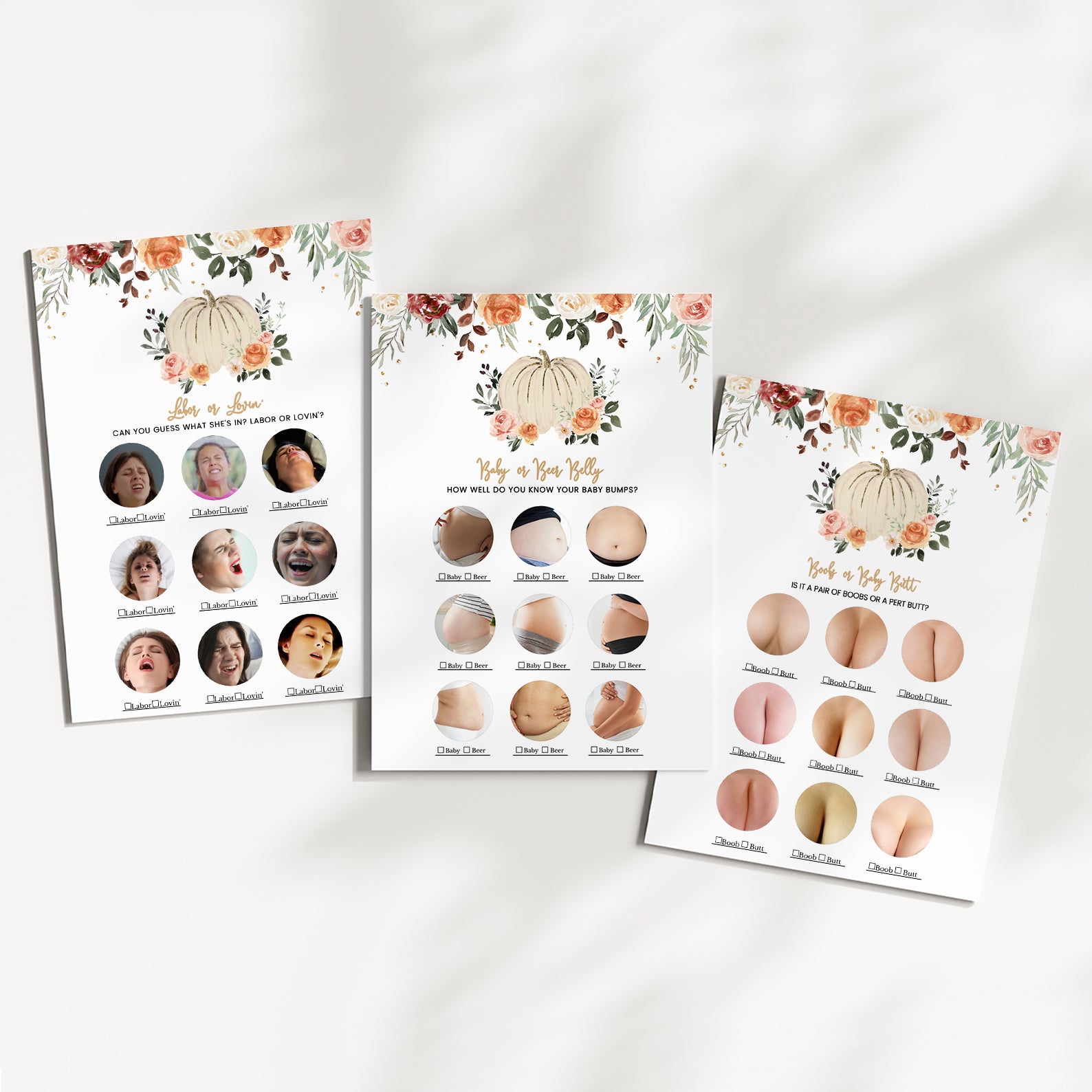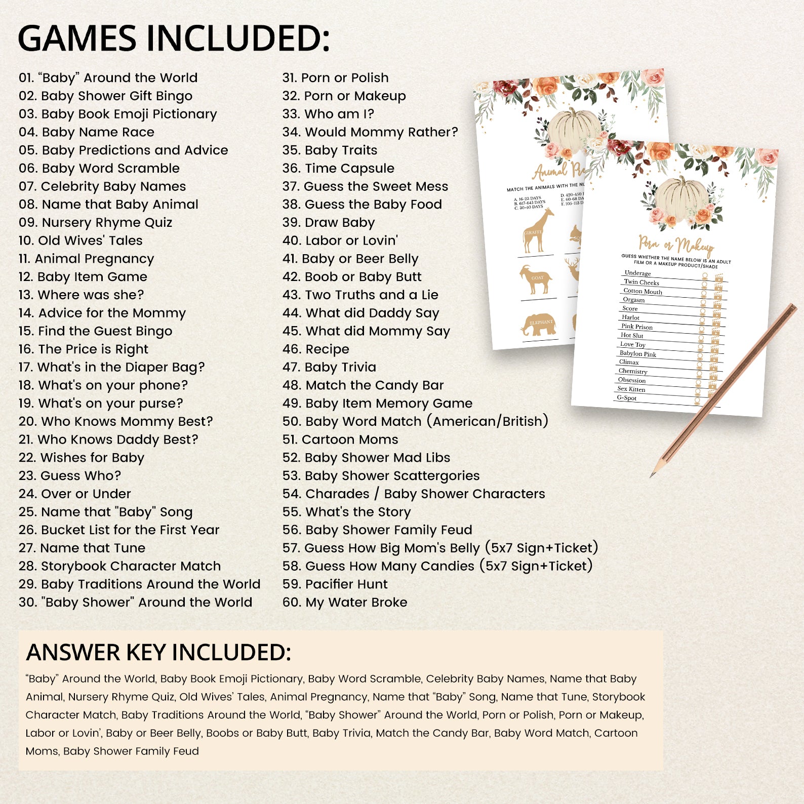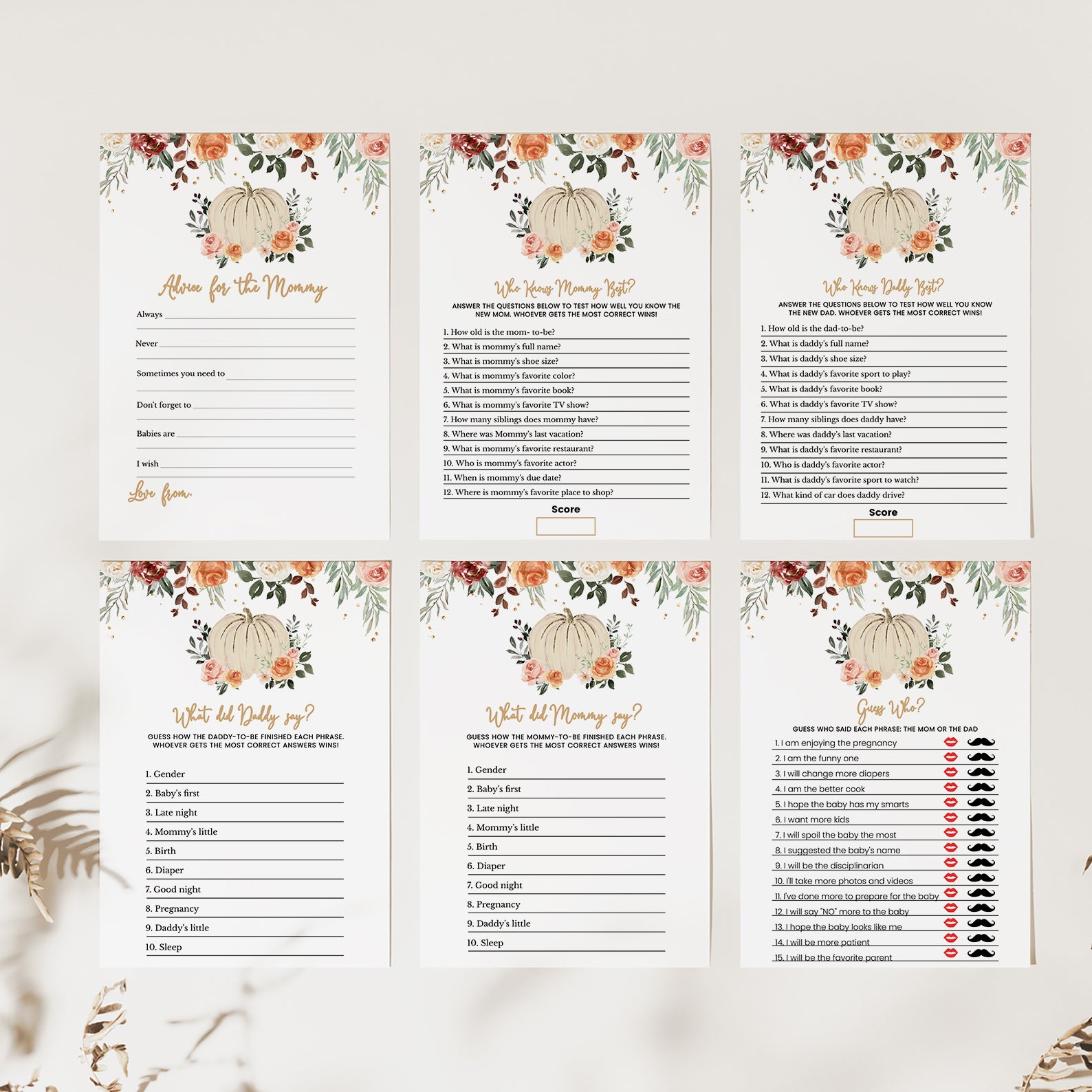 - Purchase this Fall Roses & Gold Accents Little Pumpkin Baby Shower Game Bundle template