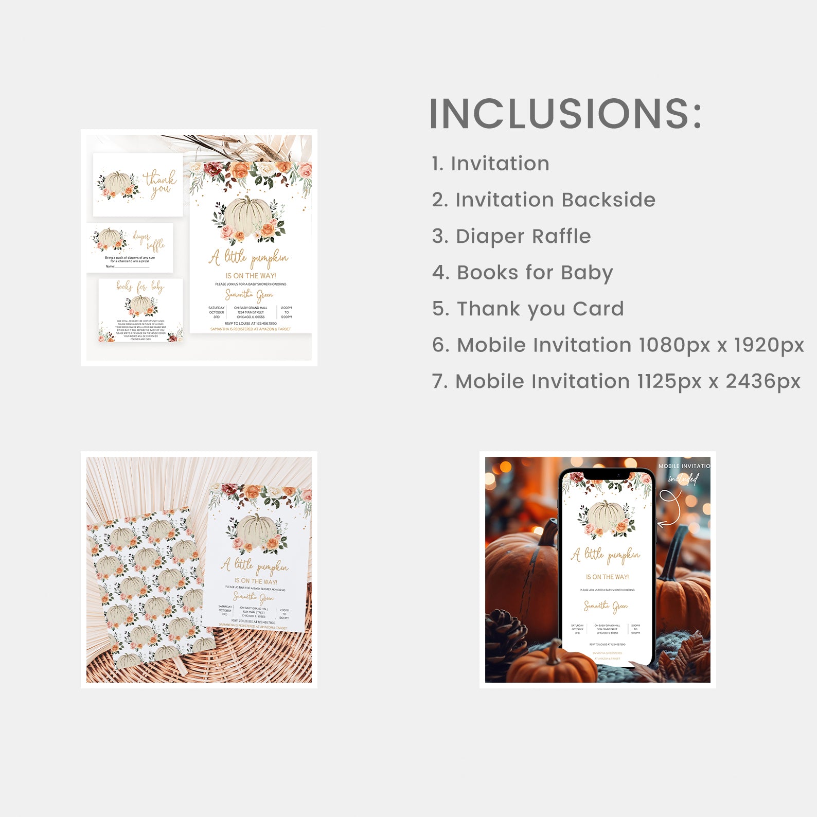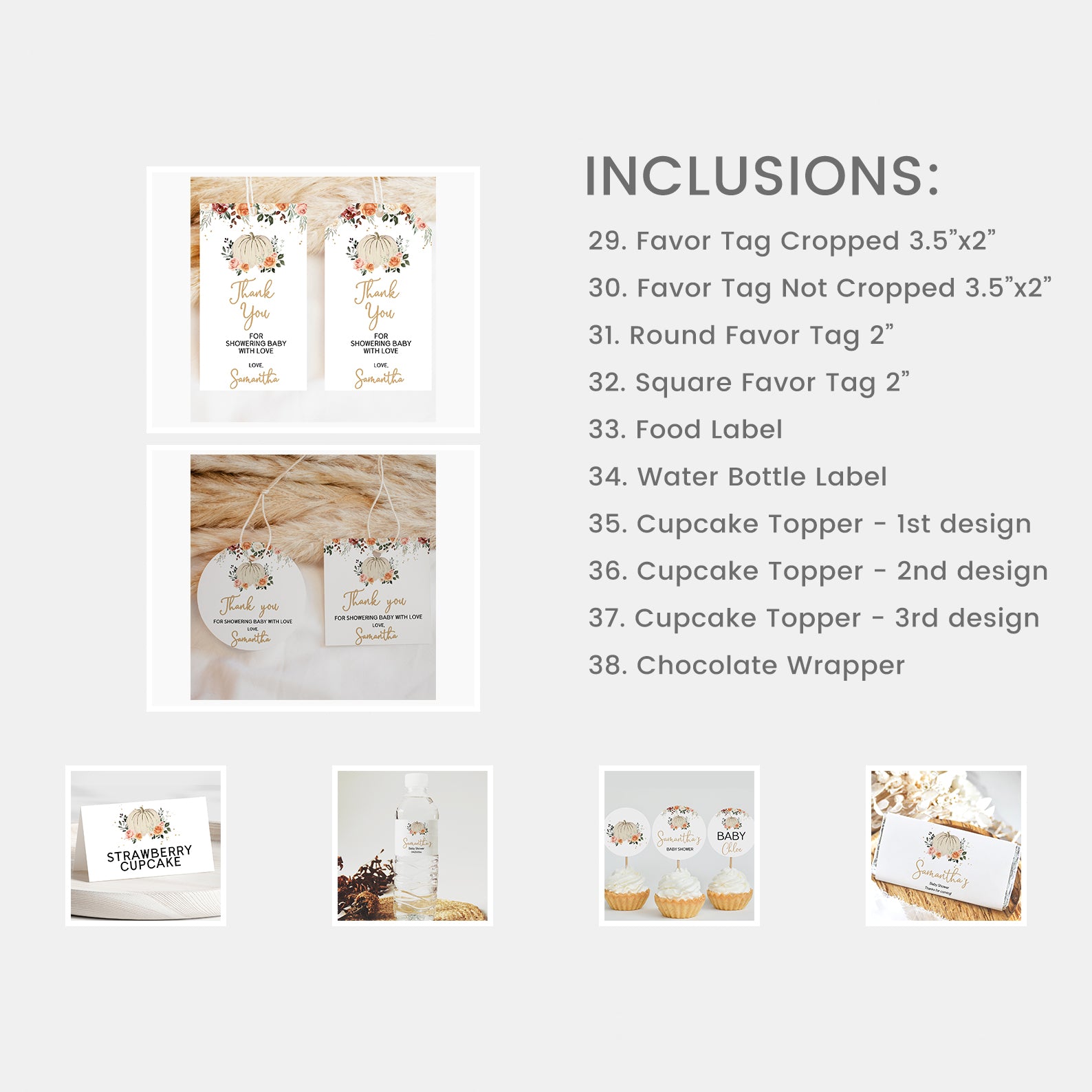 - Purchase this Fall Roses & Gold Accents Little Pumpkin Baby Shower Mega Bundle template