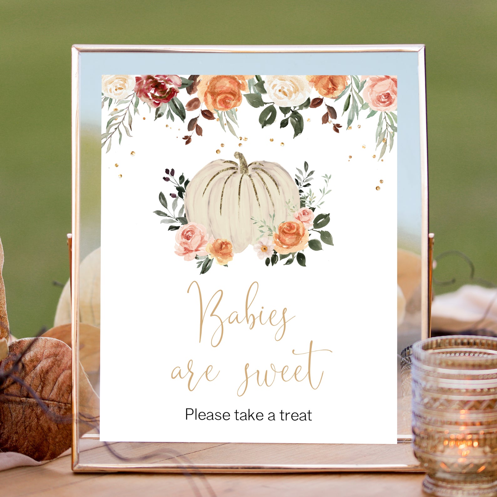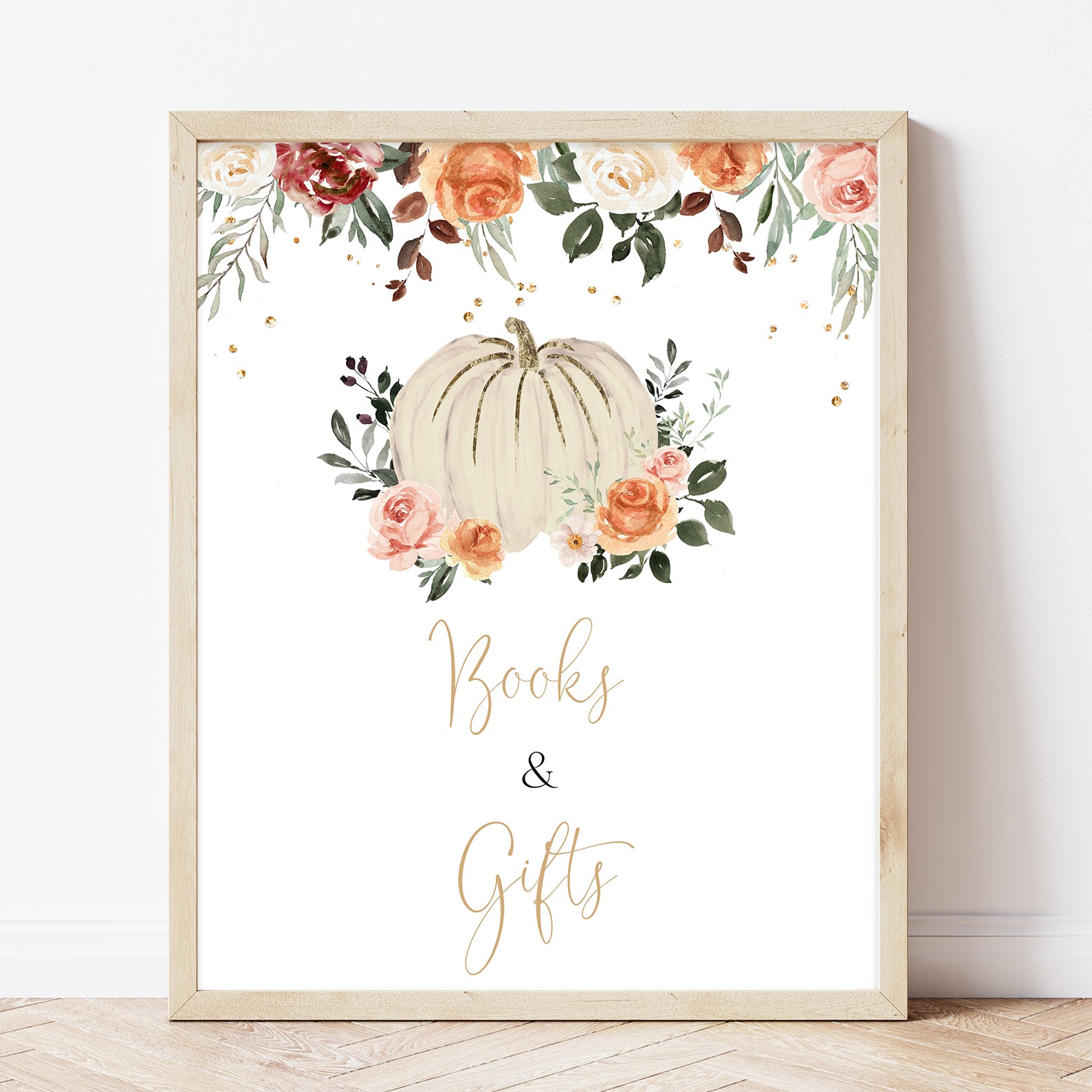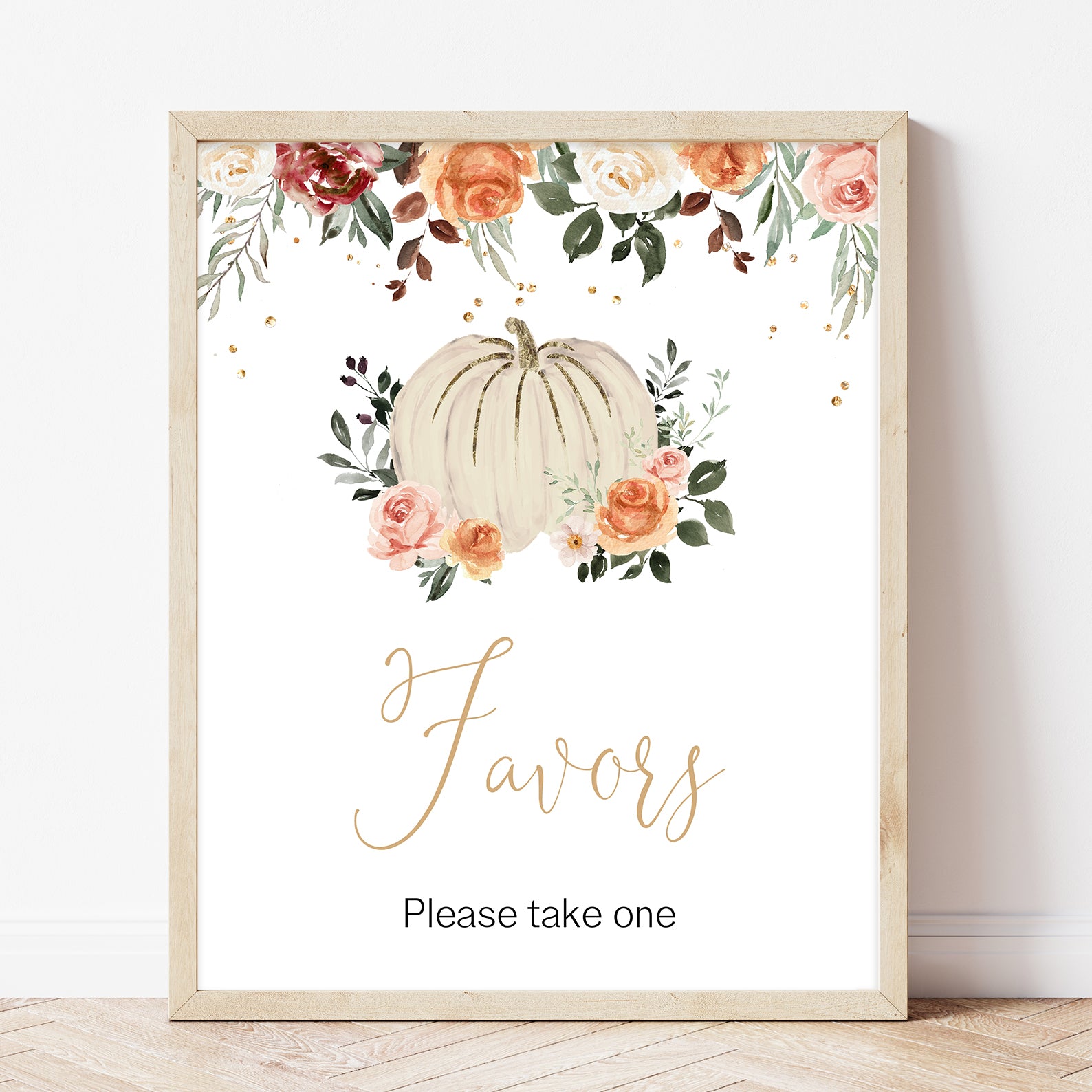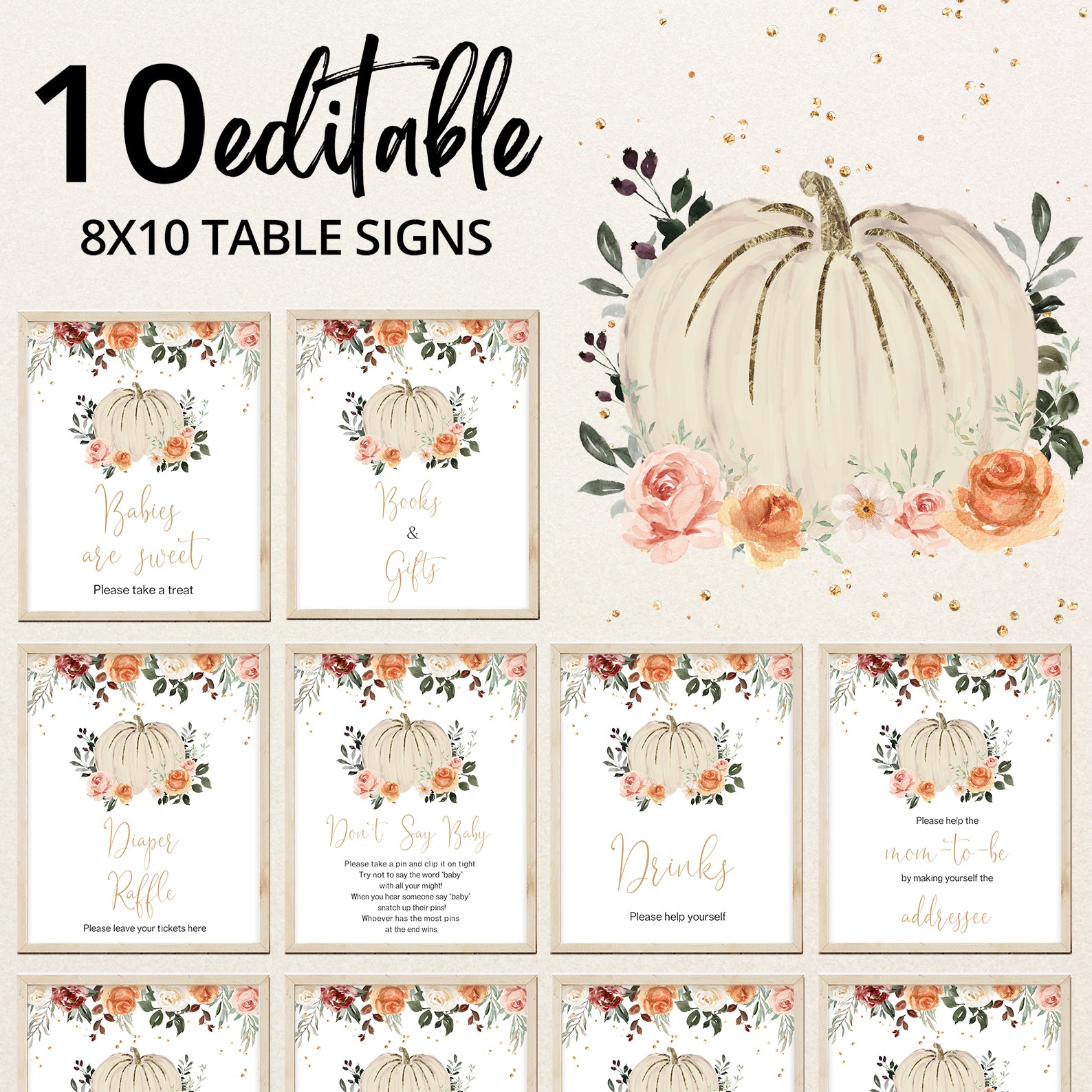 - Purchase this Fall Roses & Gold Accents Little Pumpkin Baby Shower Table Sign template