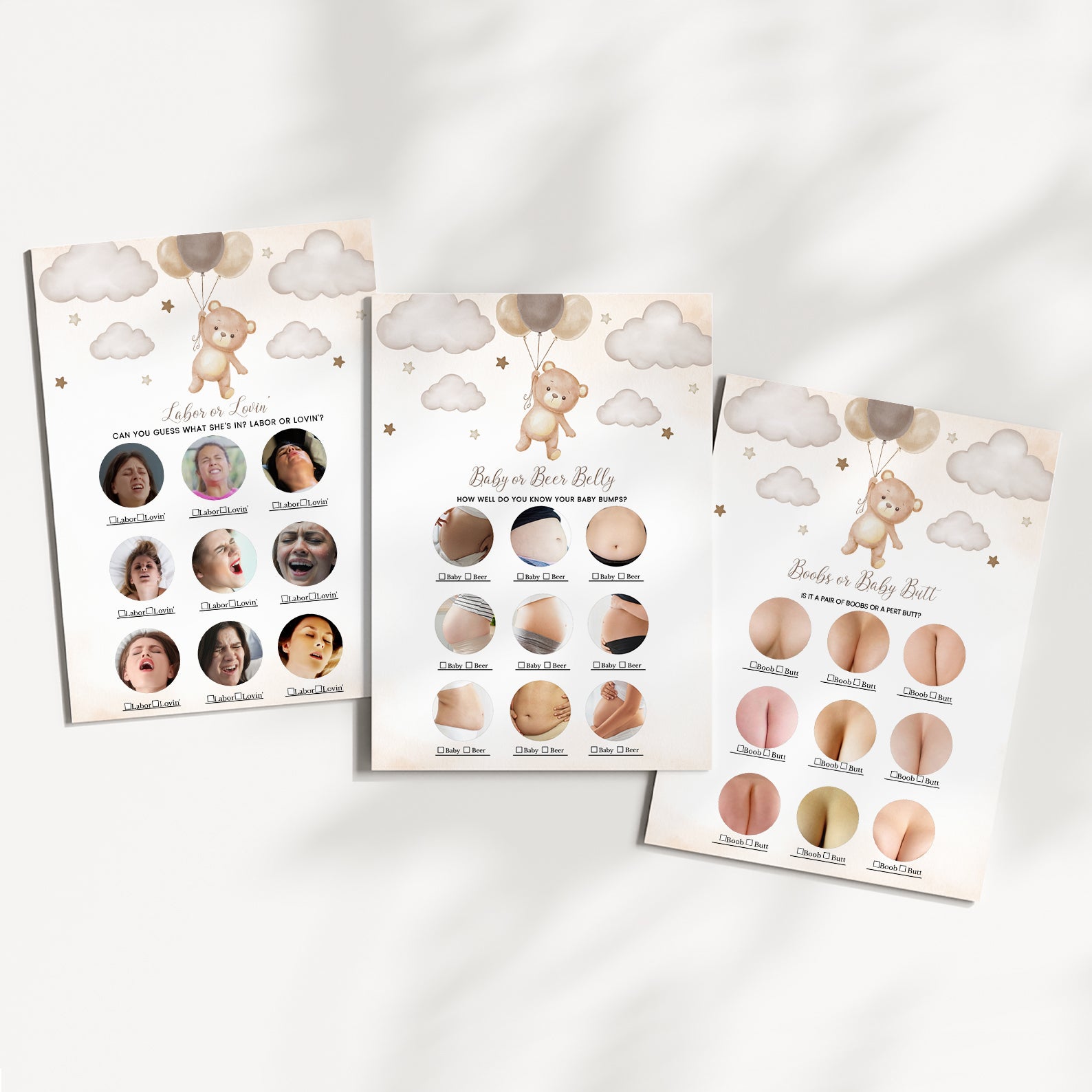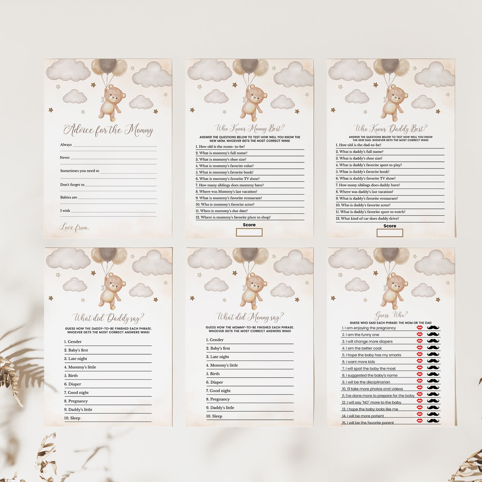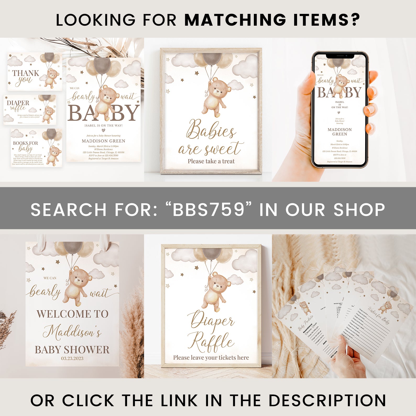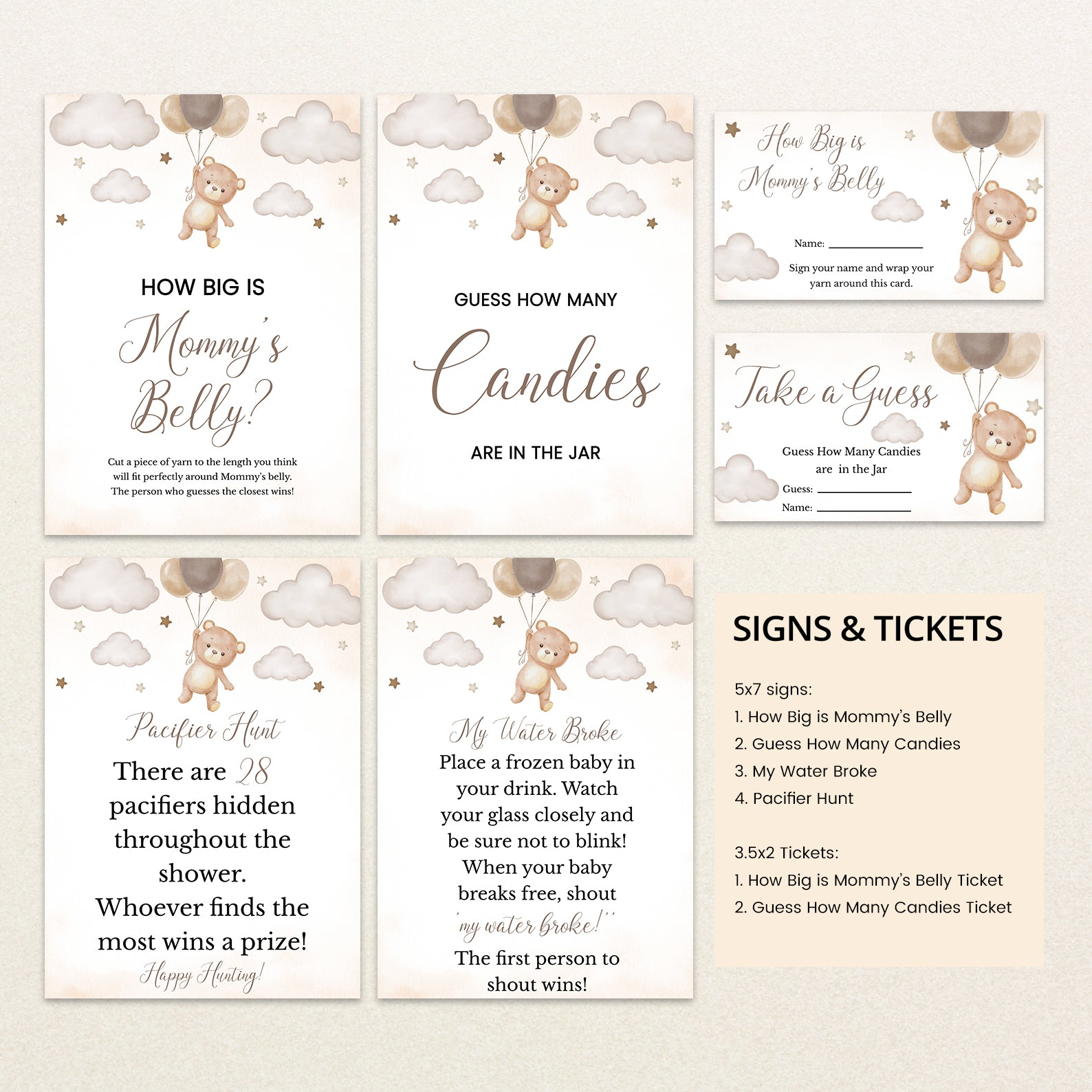 - Purchase this Flying Teddy Bear Brown Baby Shower Game Bundle: We Can Bearly Wait template