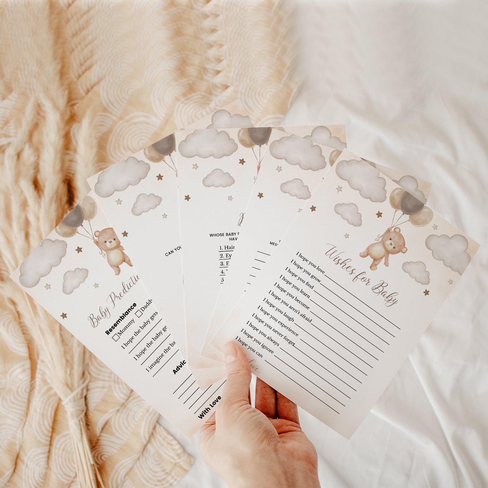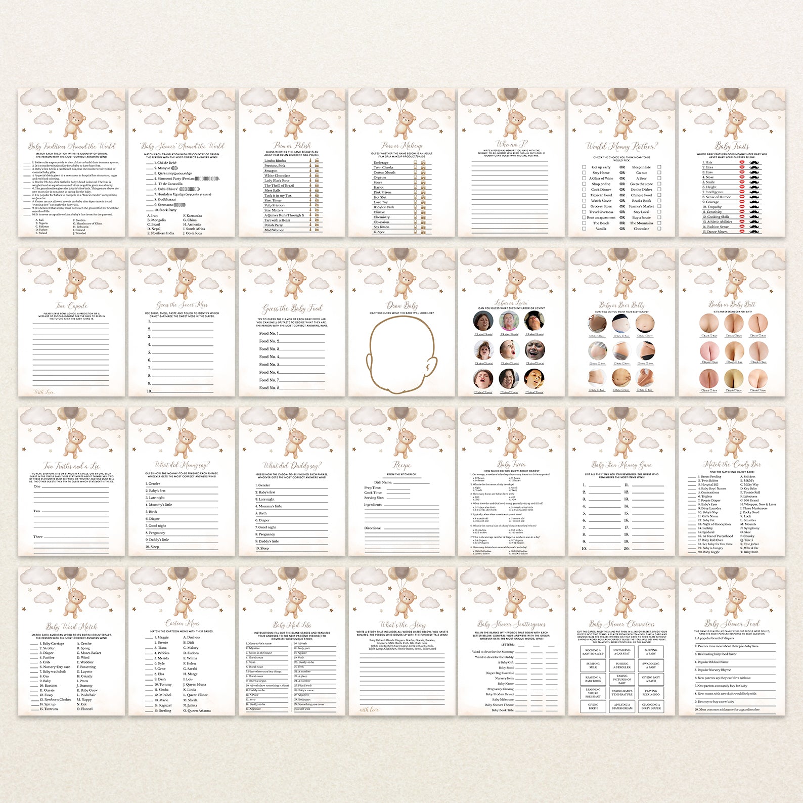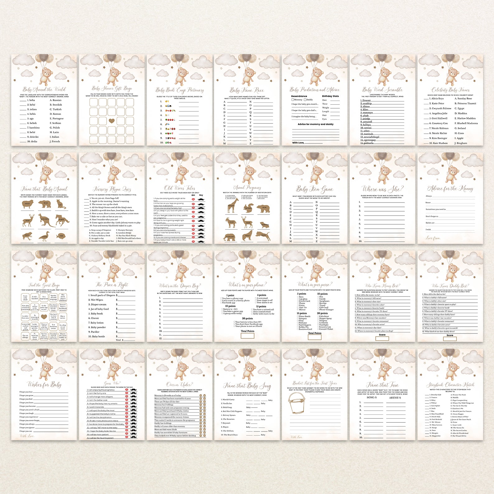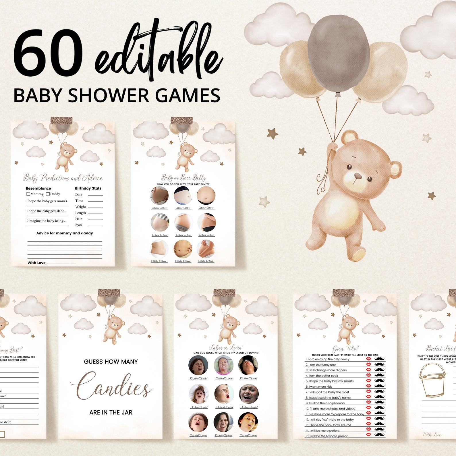 - Purchase this Flying Teddy Bear Brown Baby Shower Game Bundle: We Can Bearly Wait template