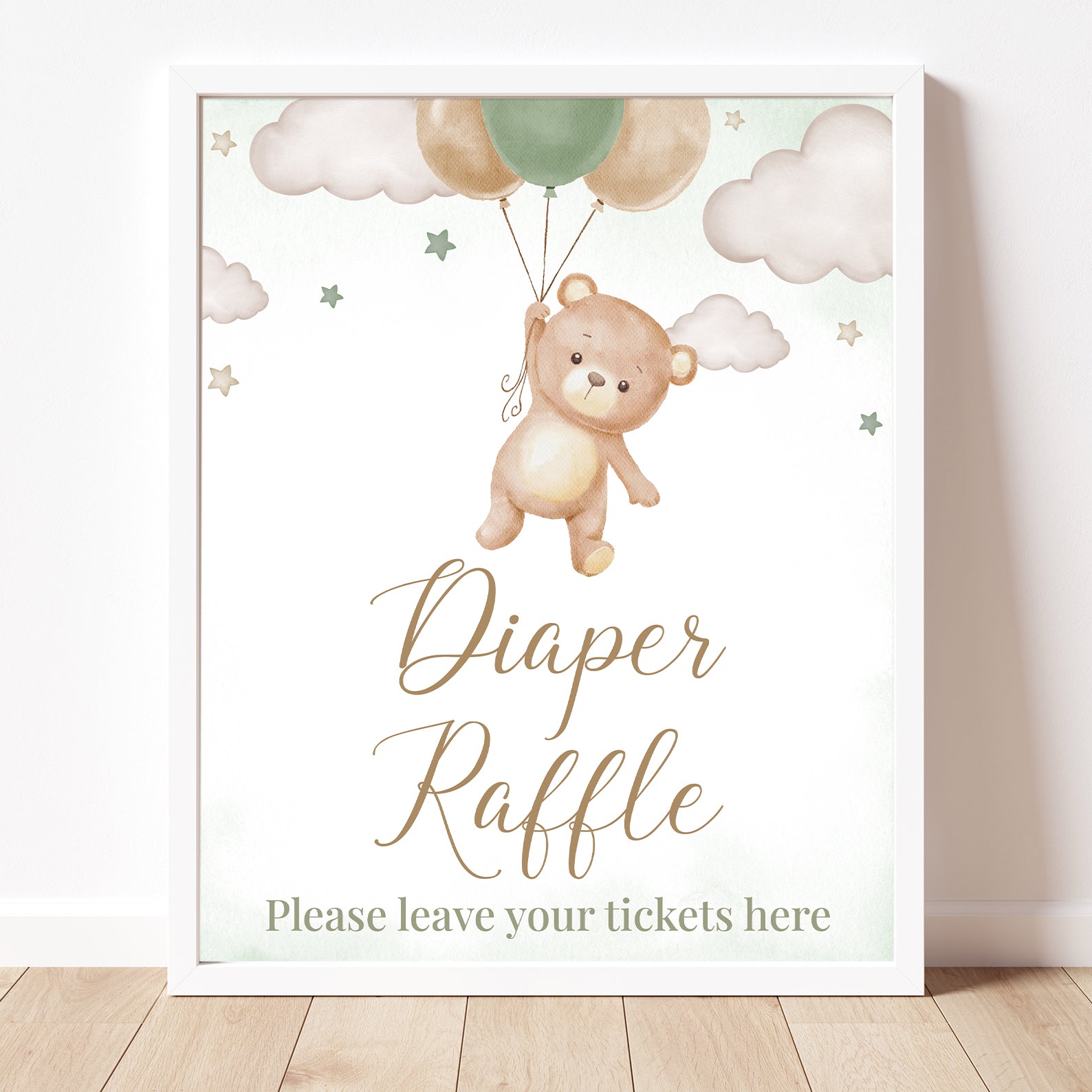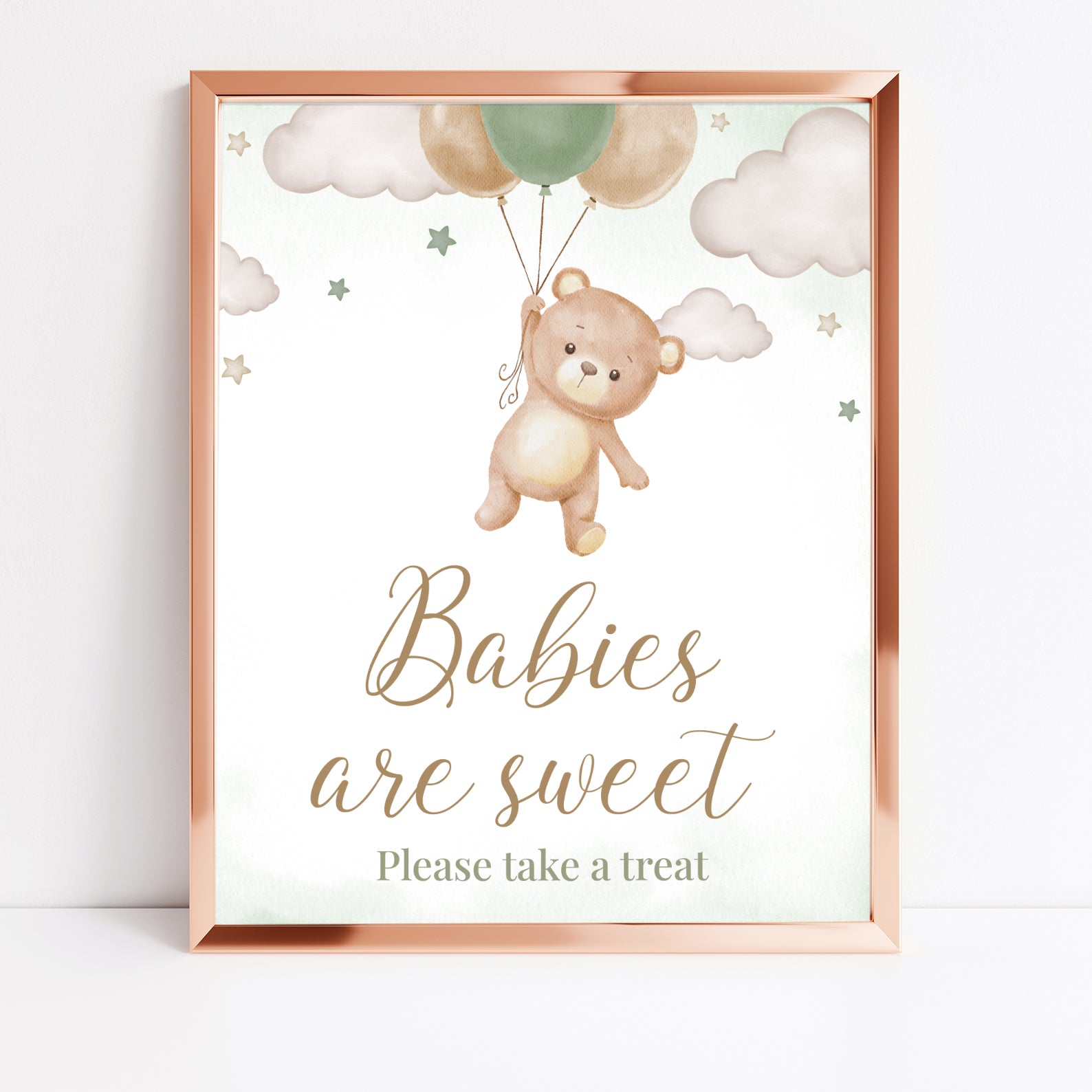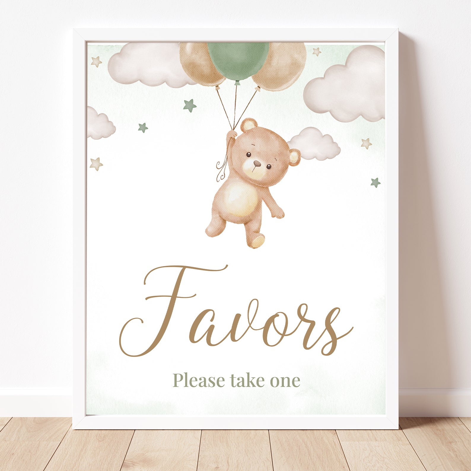 - Purchase this Flying Teddy Bear Green Baby Shower Table Sign: We Can Bearly Wait template