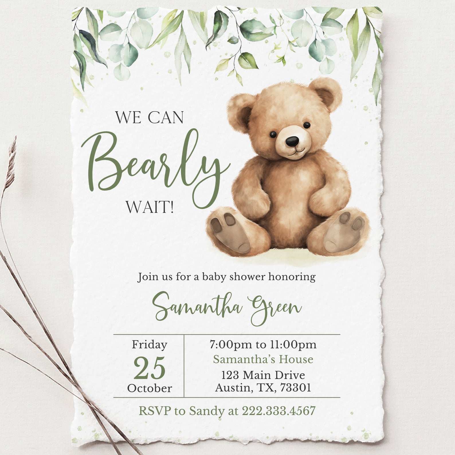- Purchase this Greenery We Can Bearly Wait Baby Shower Digital Invitation template