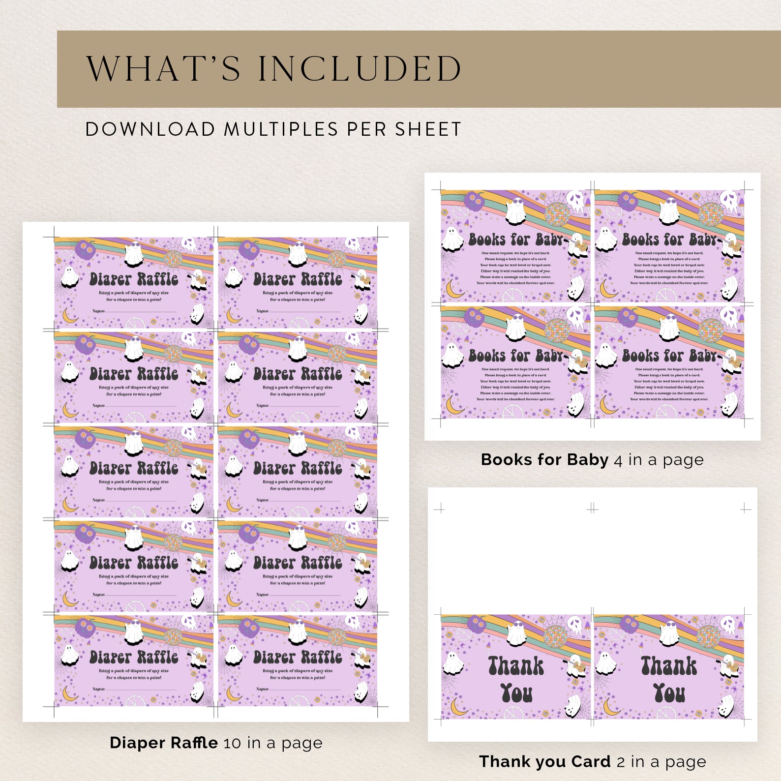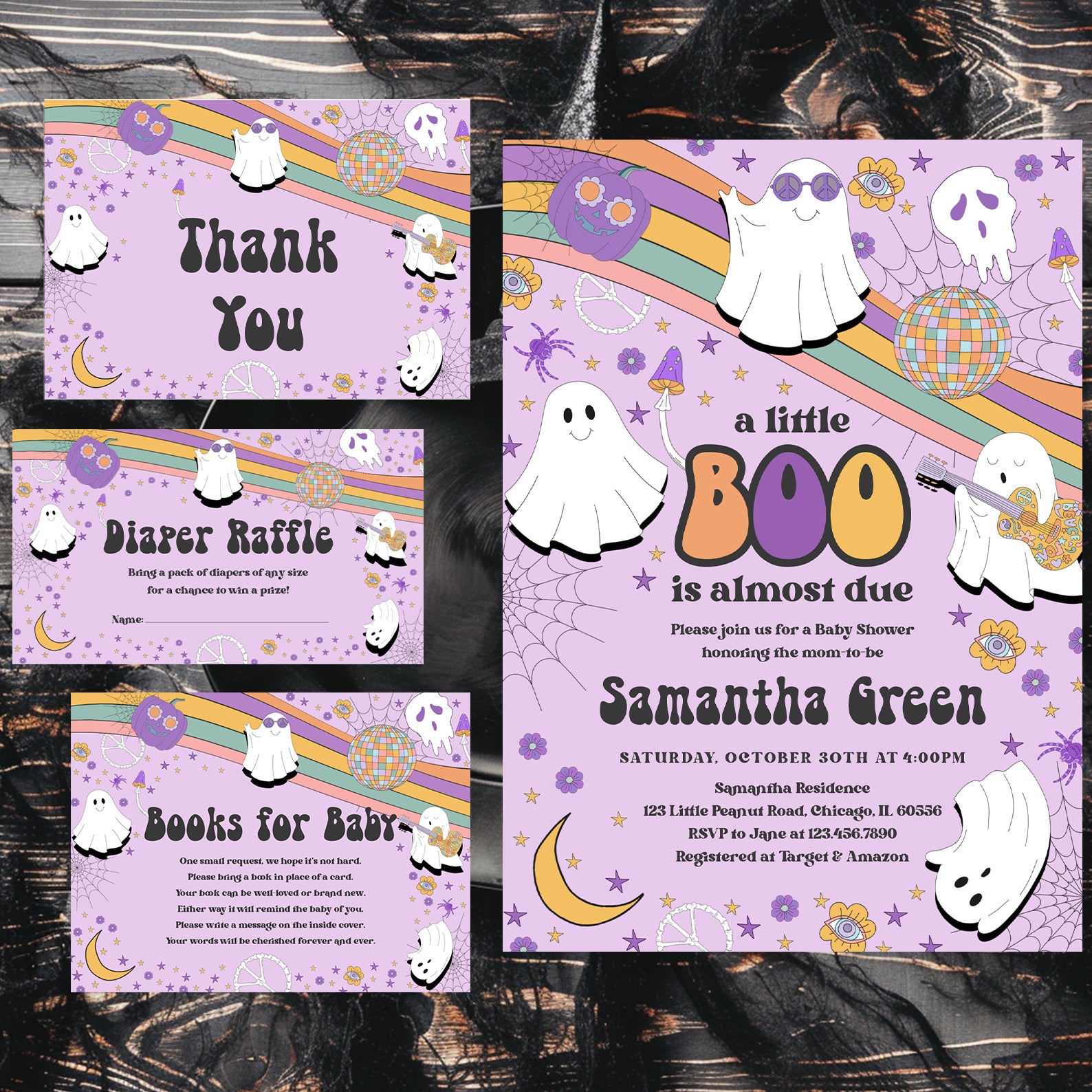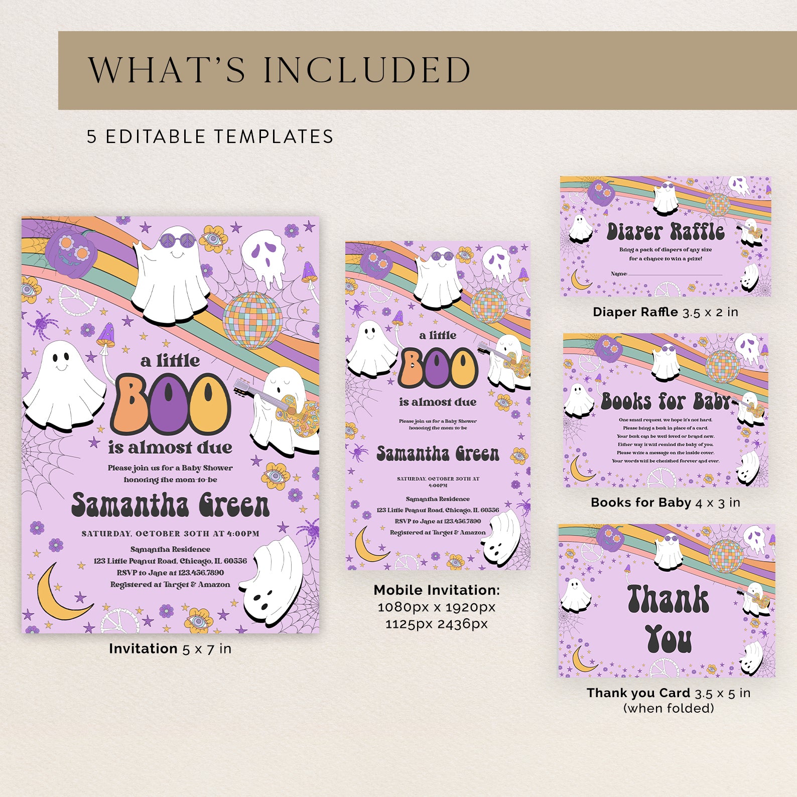 - Purchase this Groovy Baby Shower Invite Bundle: Spooky Playful Halloween Ghosts template