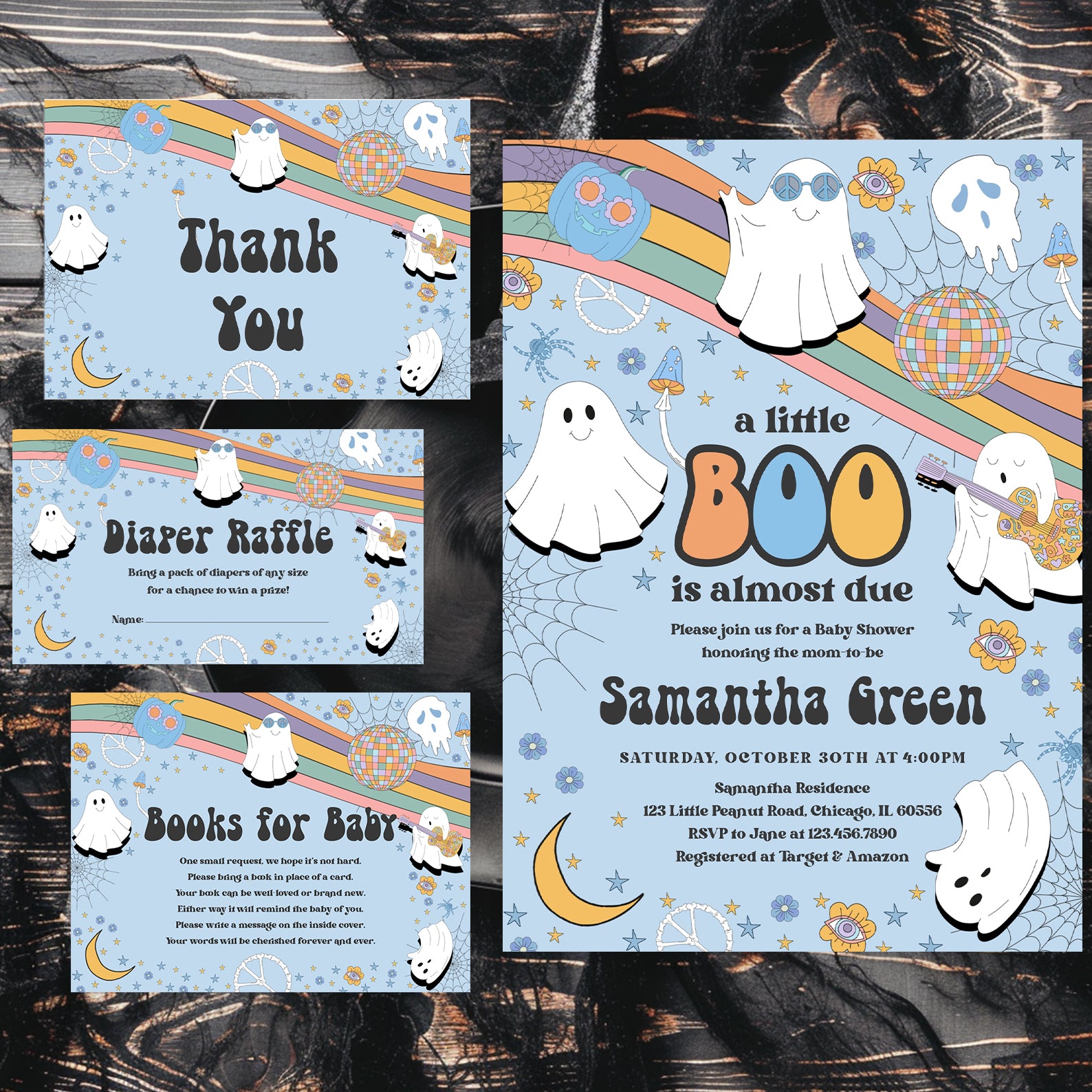 Groovy Blue Baby Shower Invite Bundle: Spooky Playful Halloween Ghosts