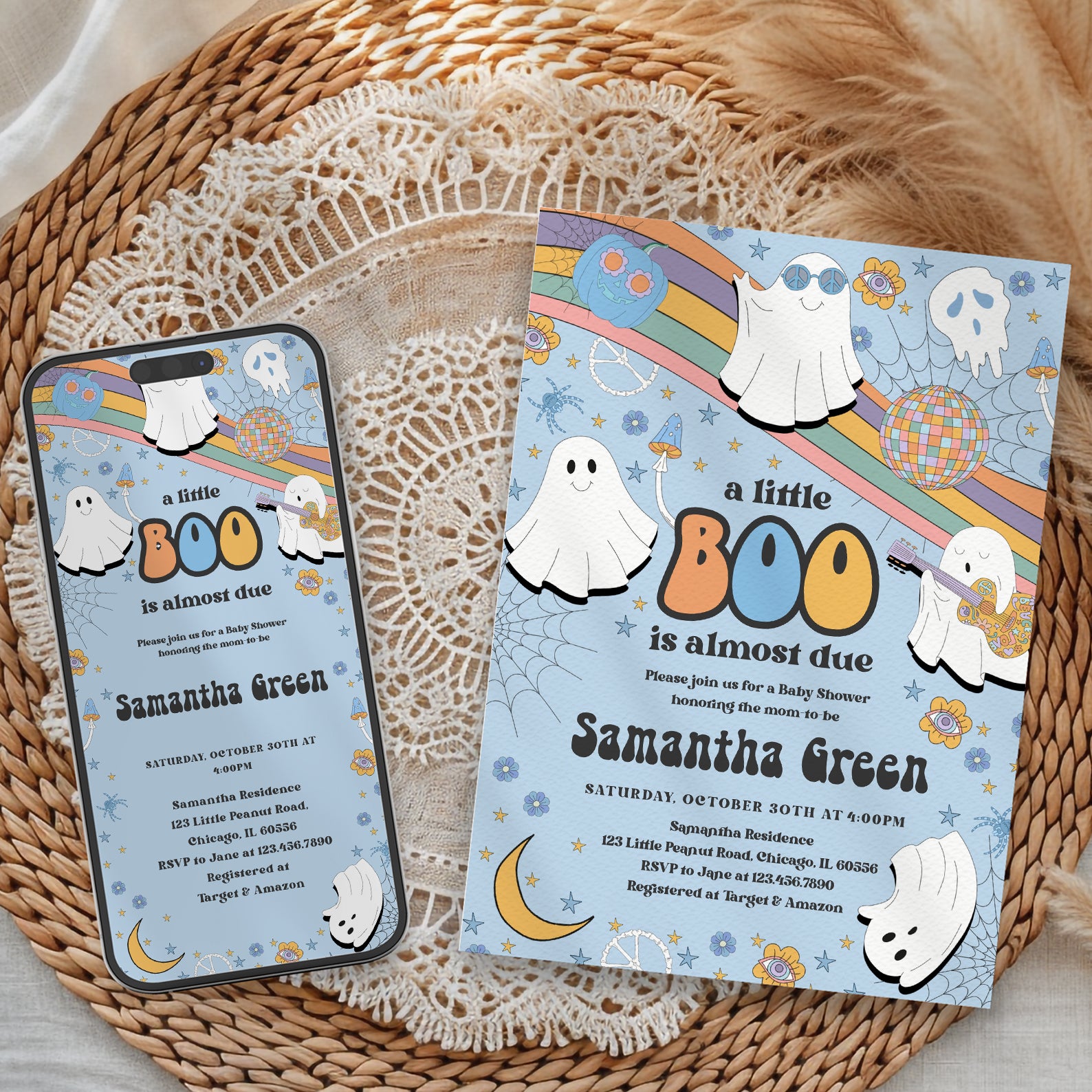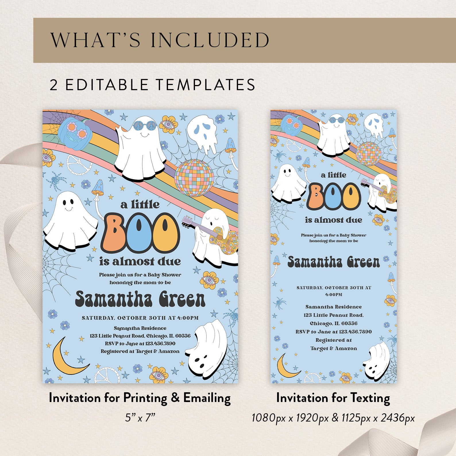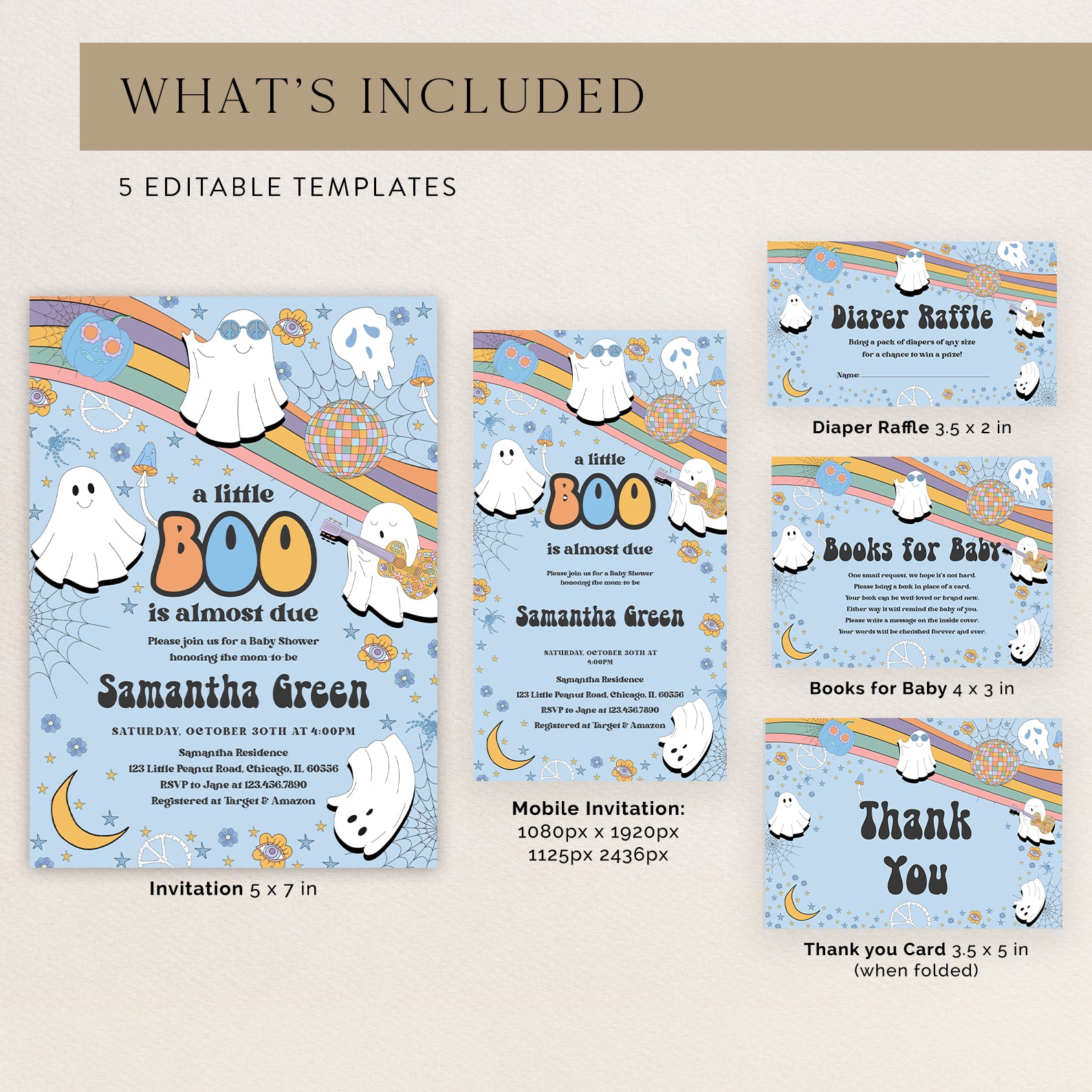 - Purchase this Groovy Blue Baby Shower Invite Bundle: Spooky Playful Halloween Ghosts template