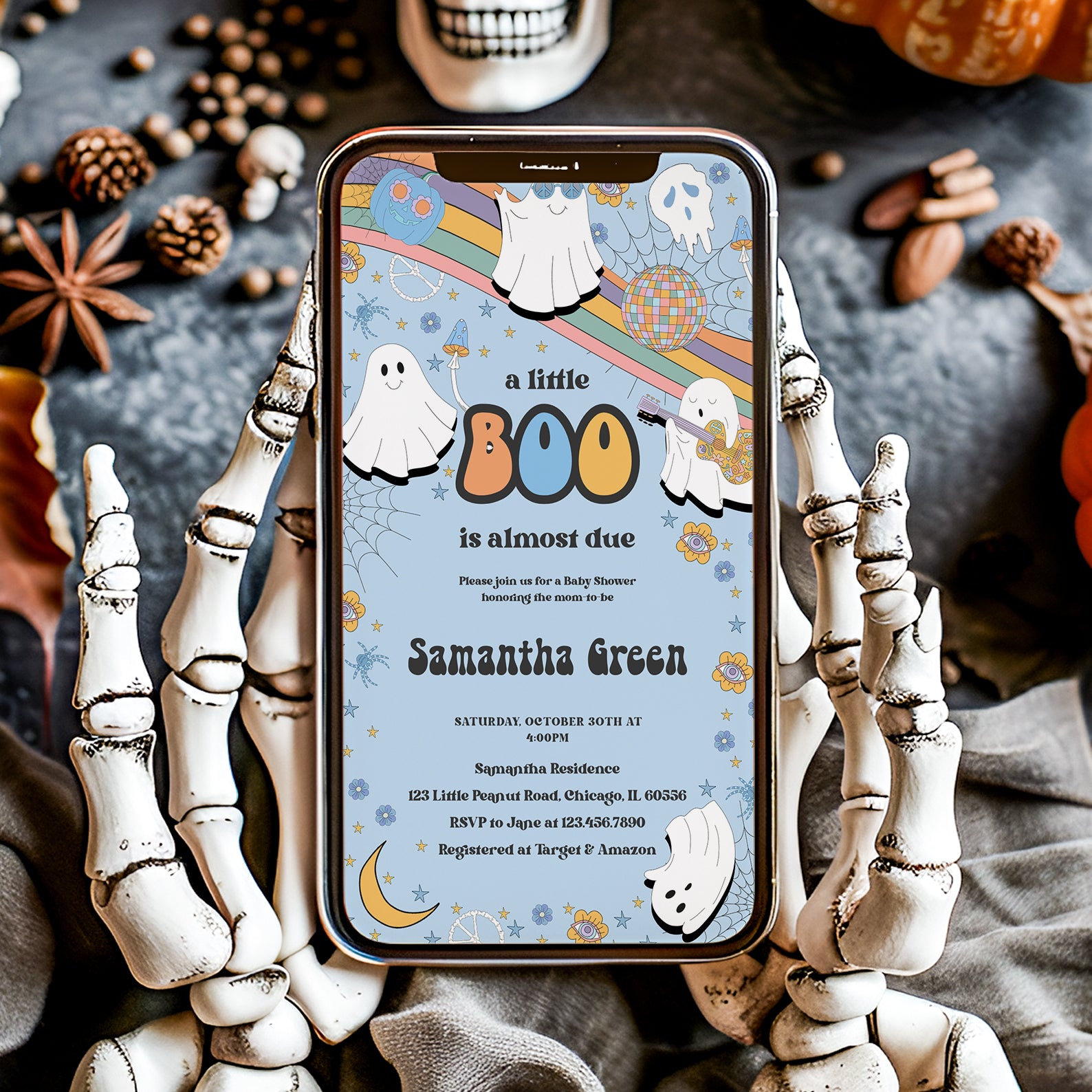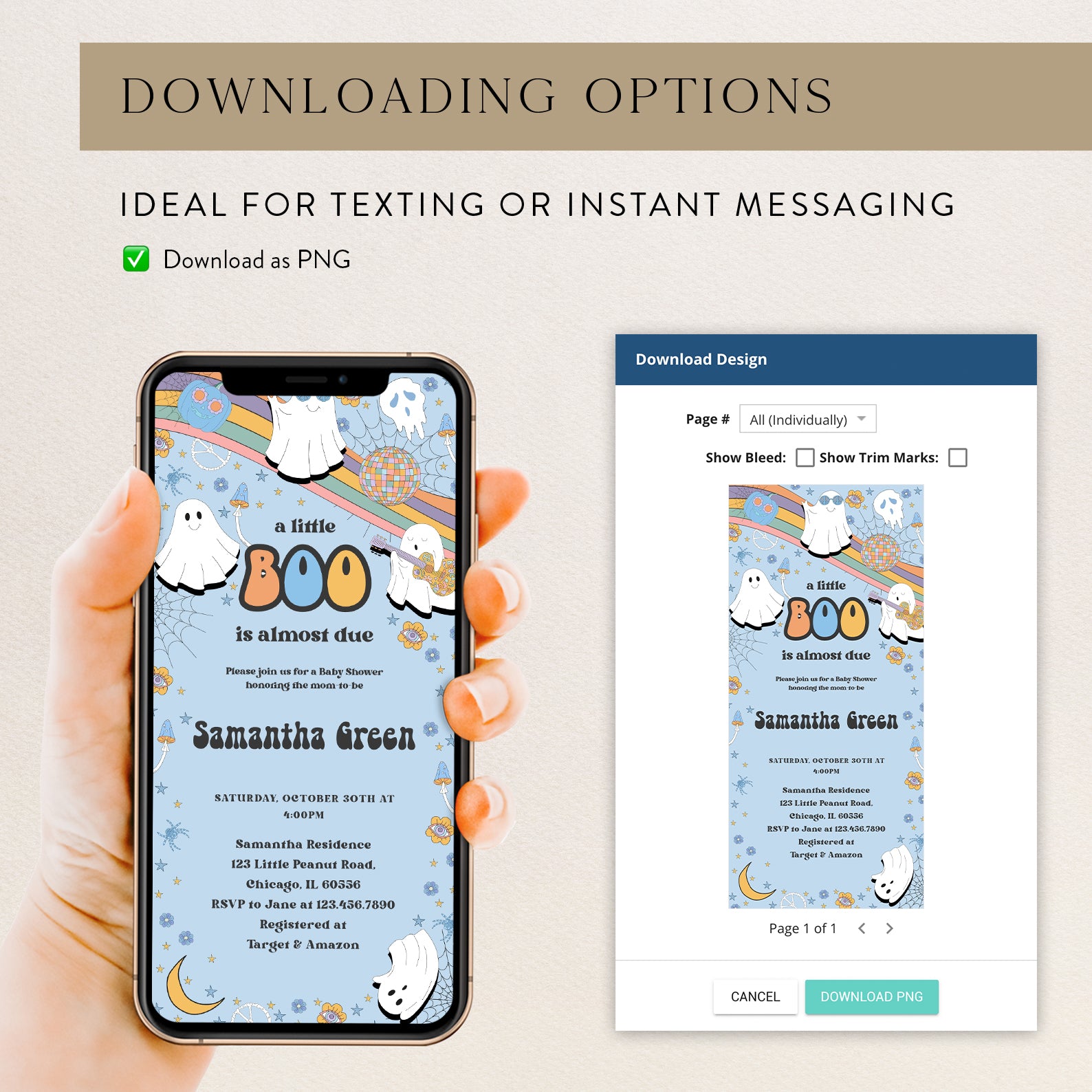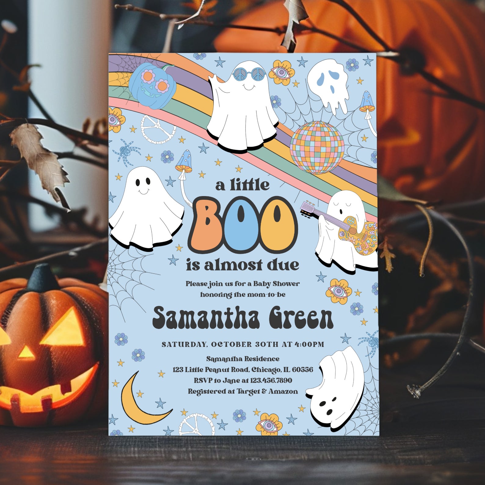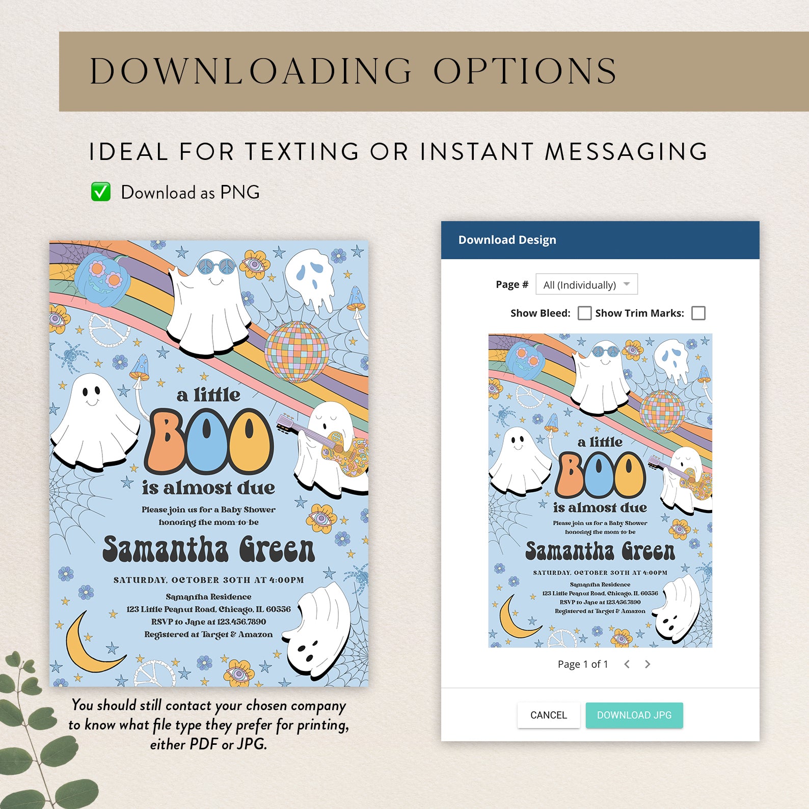 - Purchase this Groovy Blue Baby Shower Invite Bundle: Spooky Playful Halloween Ghosts template