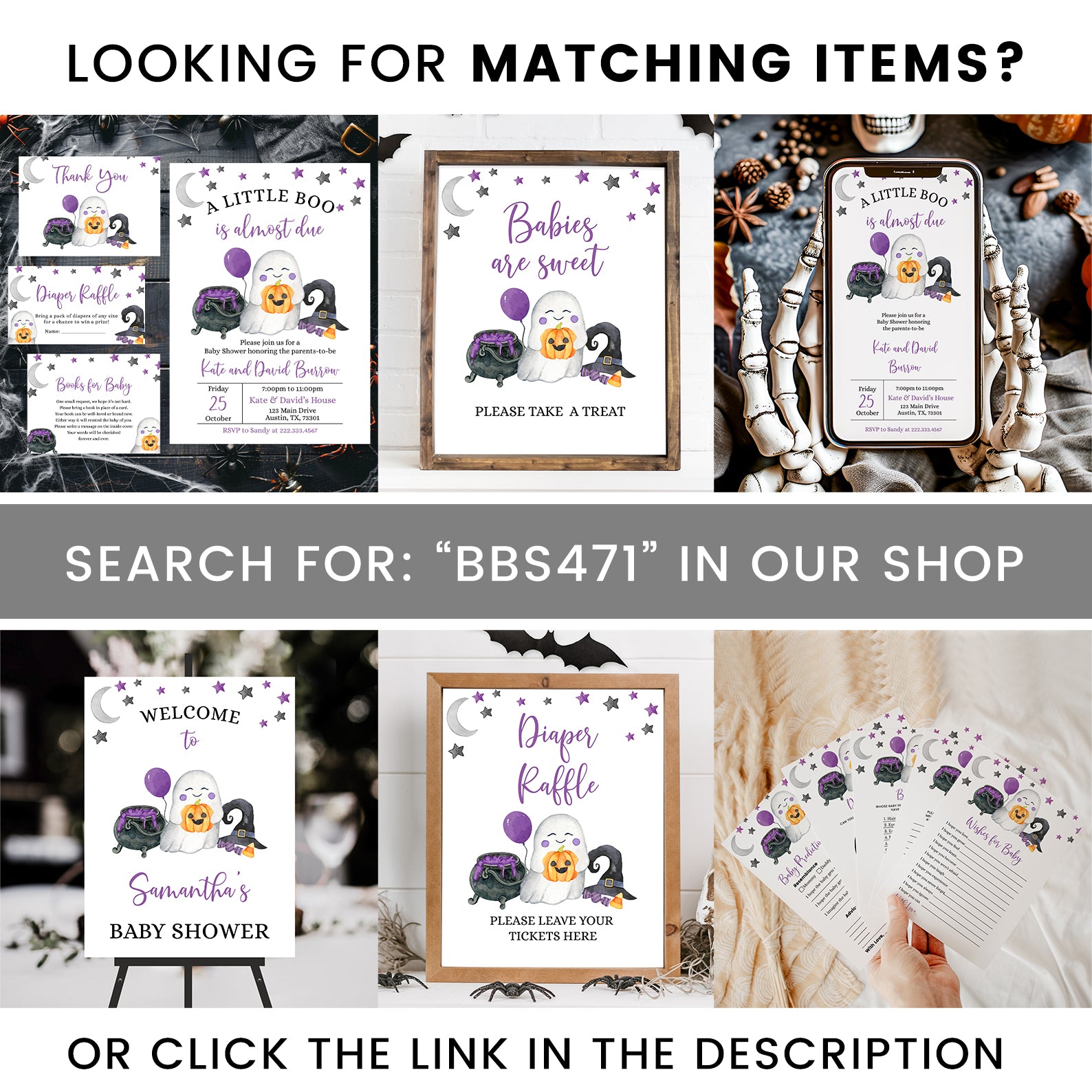 Welcome your guests with our charming "Little Boo’s Spooktacular Arrival" sign! Available in purple, blue, pink, or orange, this sign features a grey half moon, charming stars, and a playful design with a brewing cauldron, a smiling ghost holding a pumpkin and balloon, and a witch hat. It’s the perfect way to greet everyone and set a fun, spooky tone for your baby shower!
