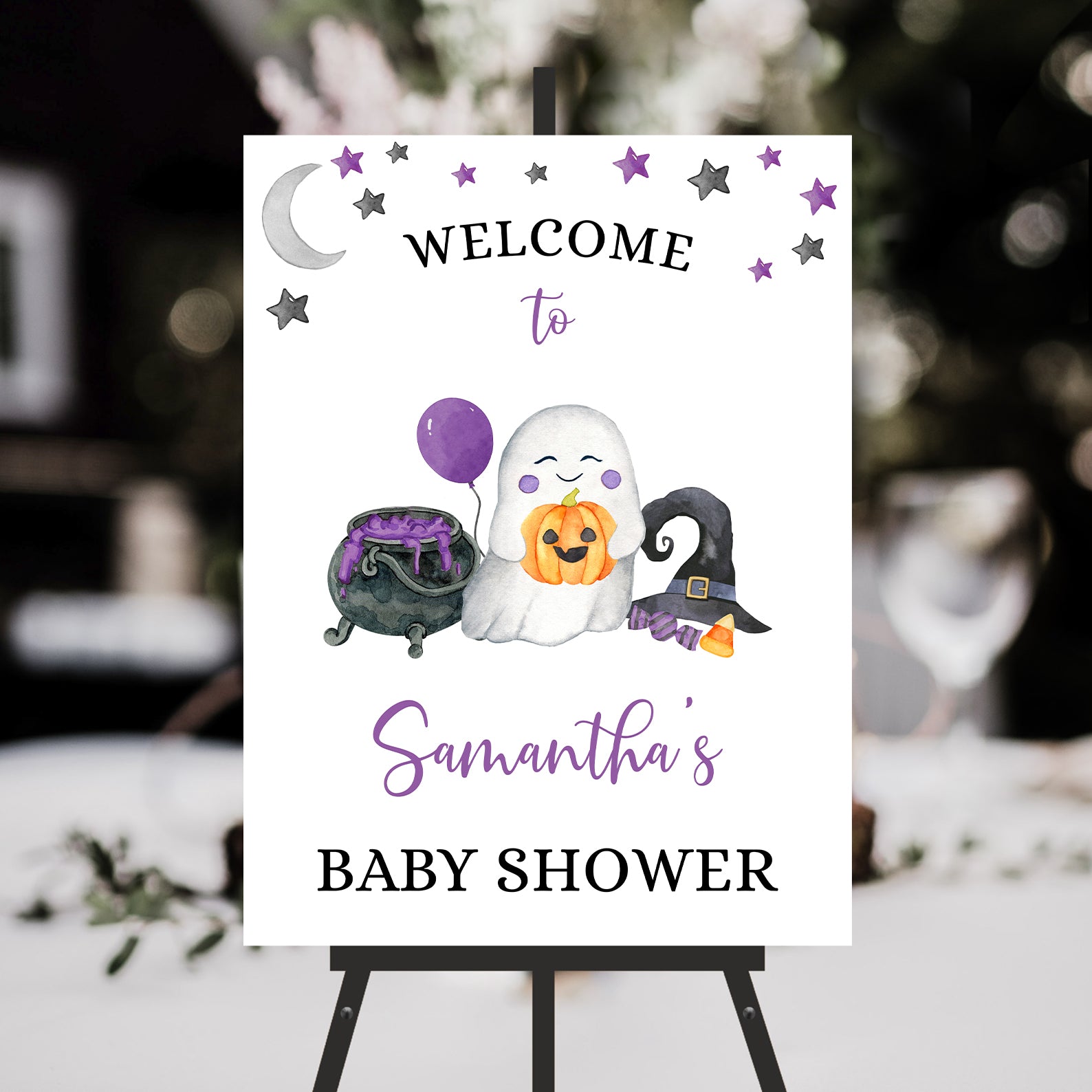 Halloween Baby Shower Welcome Sign: Charming Smiling Ghost Design