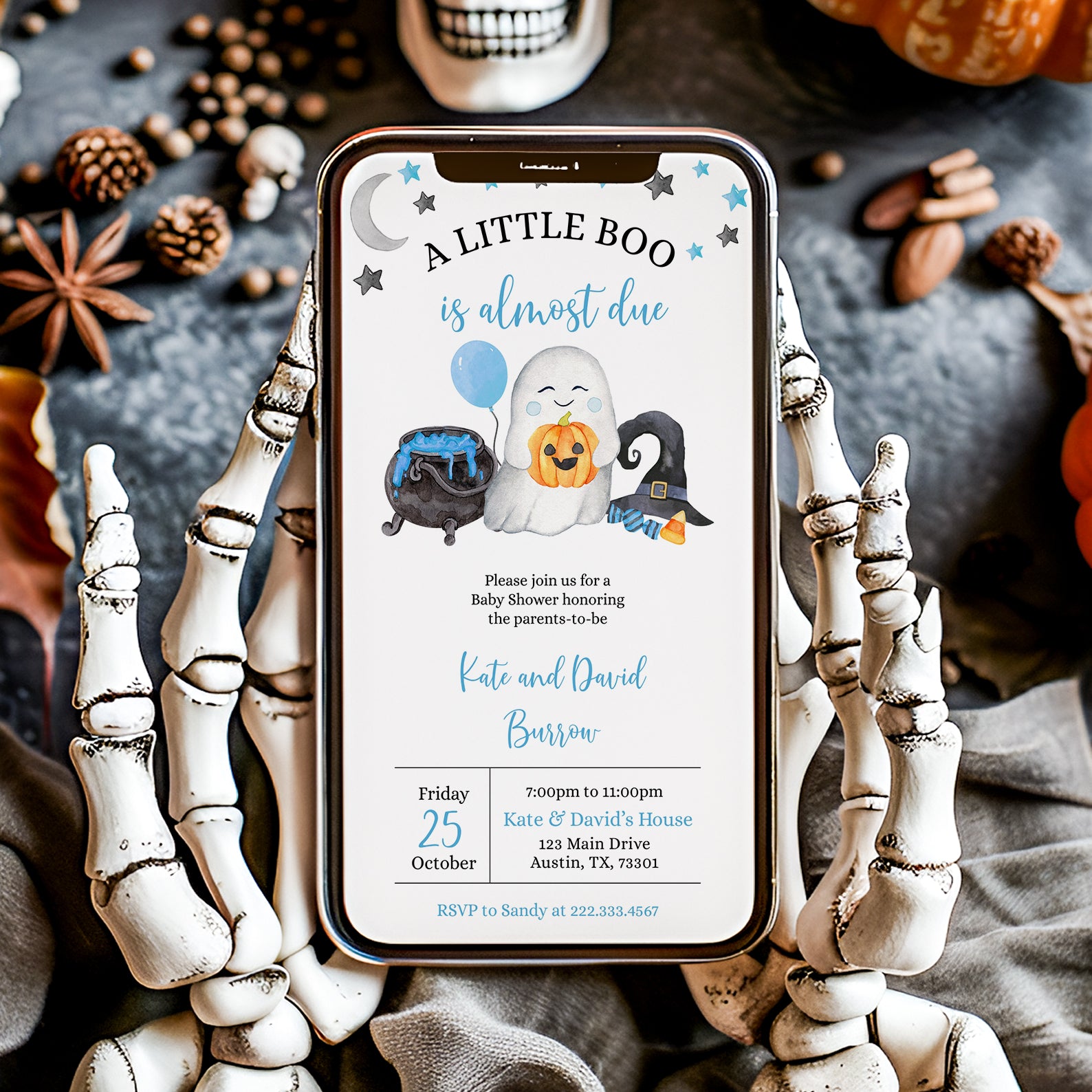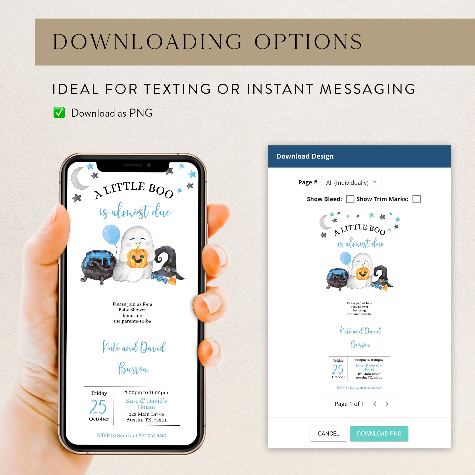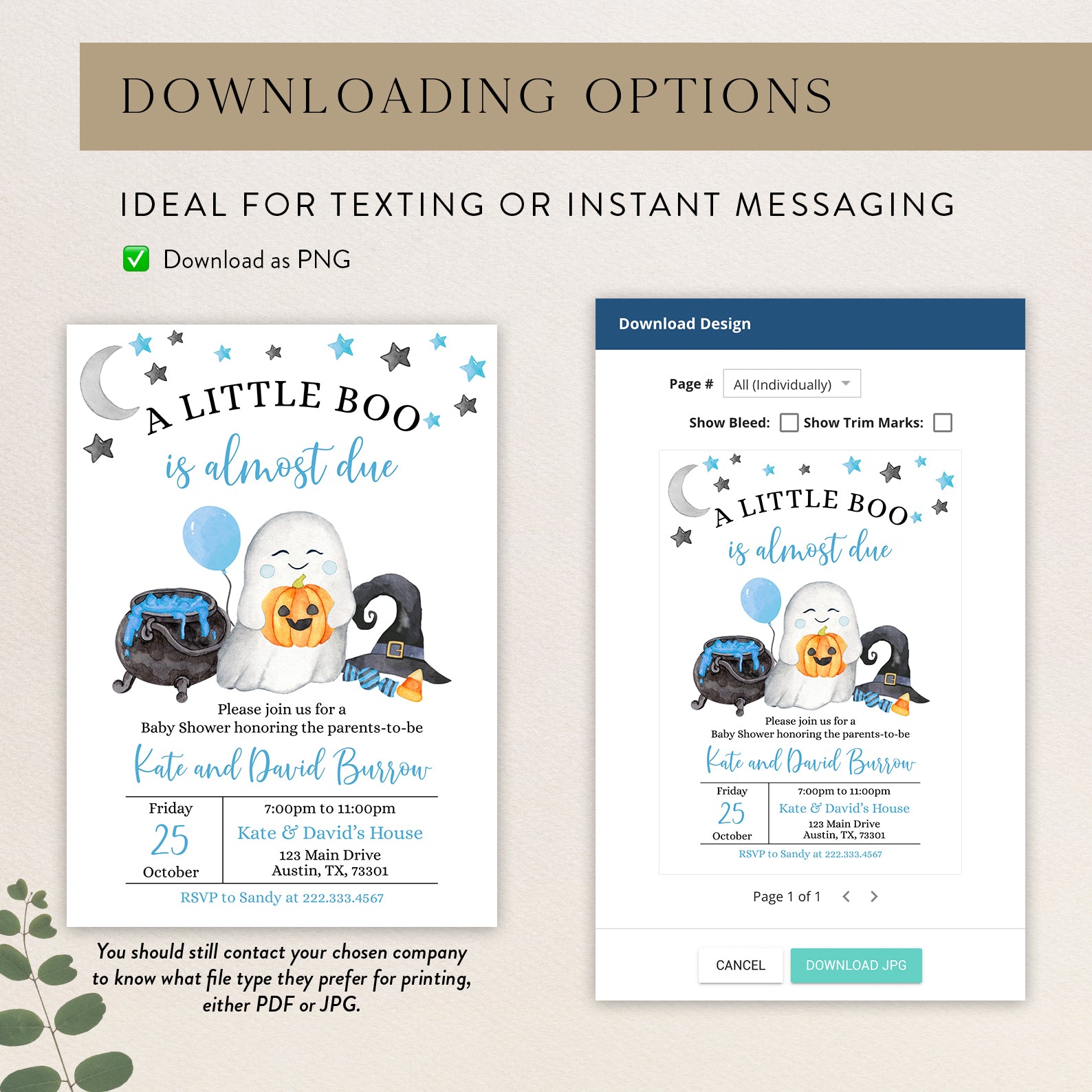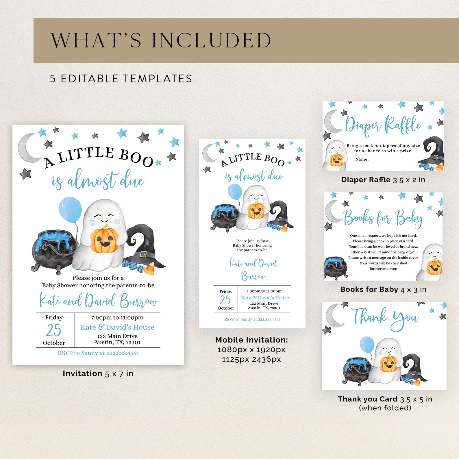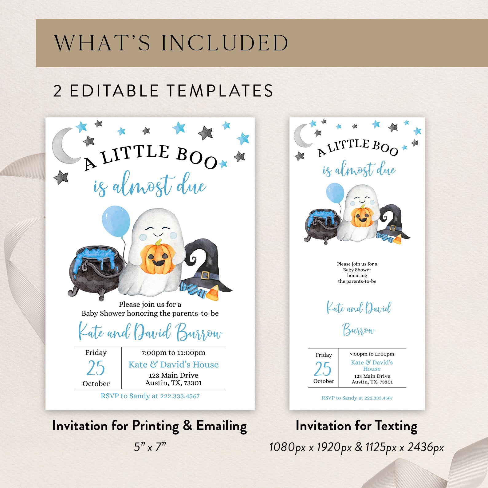 - Purchase this Halloween Blue Baby Shower Invite Bundle: Charming Smiling Ghost Design template