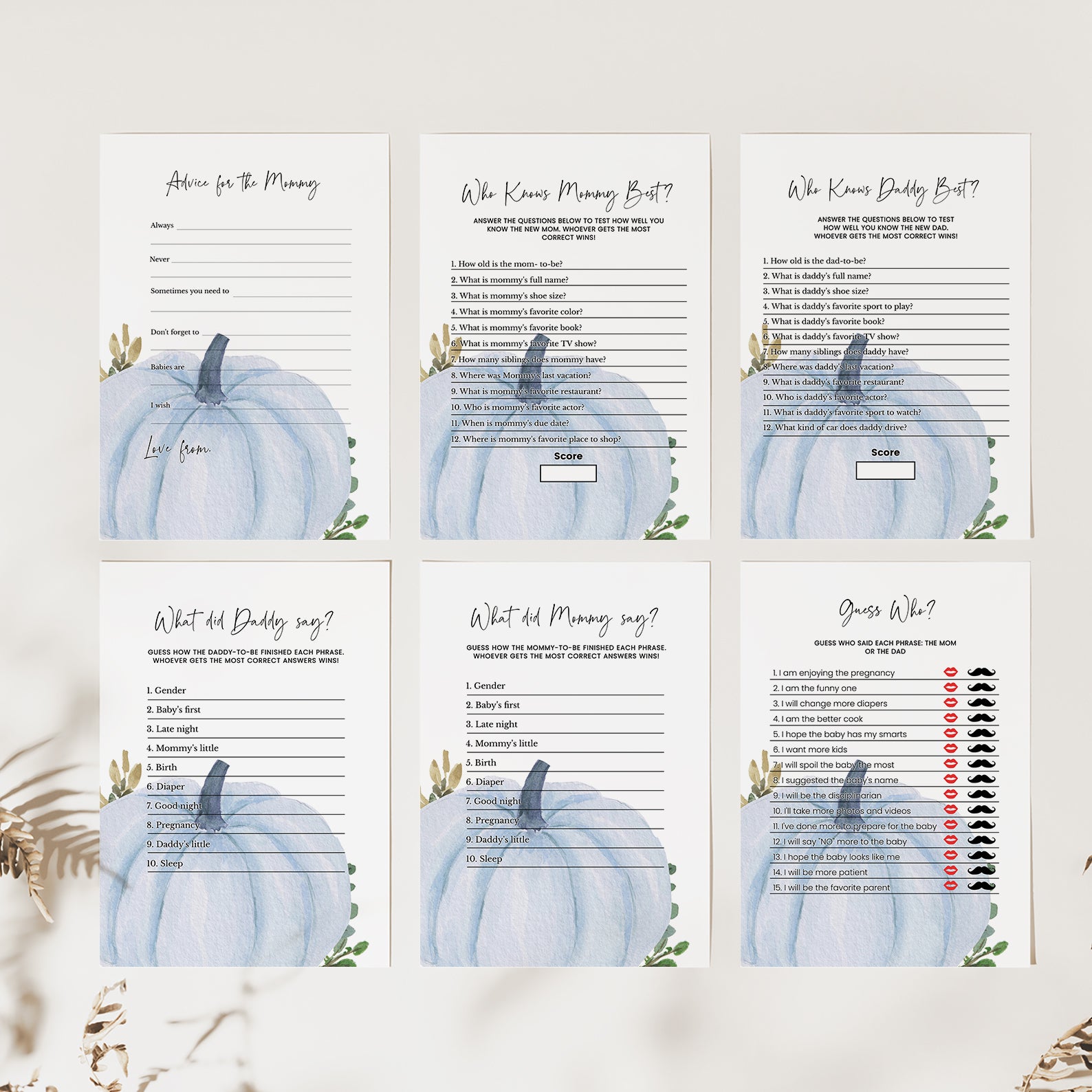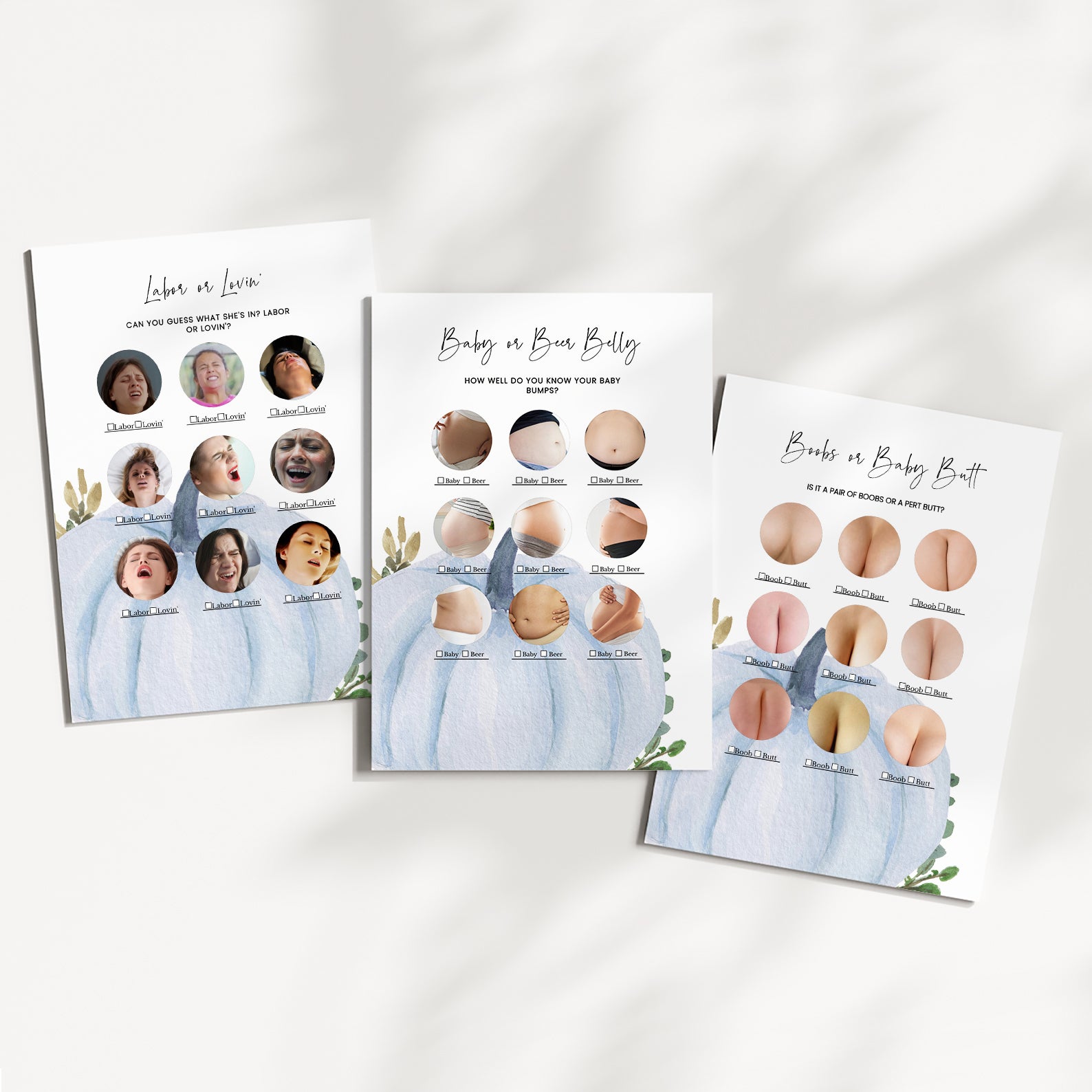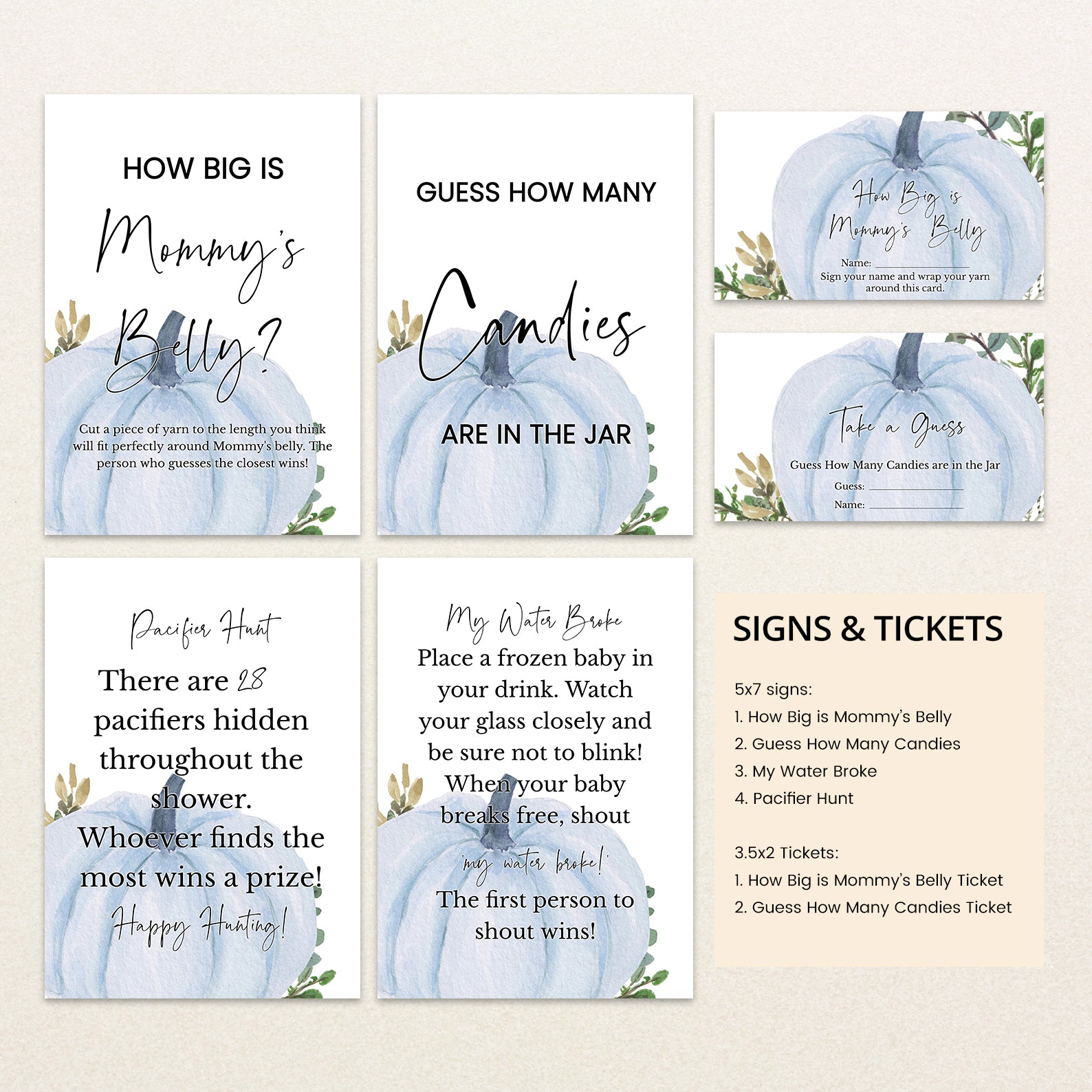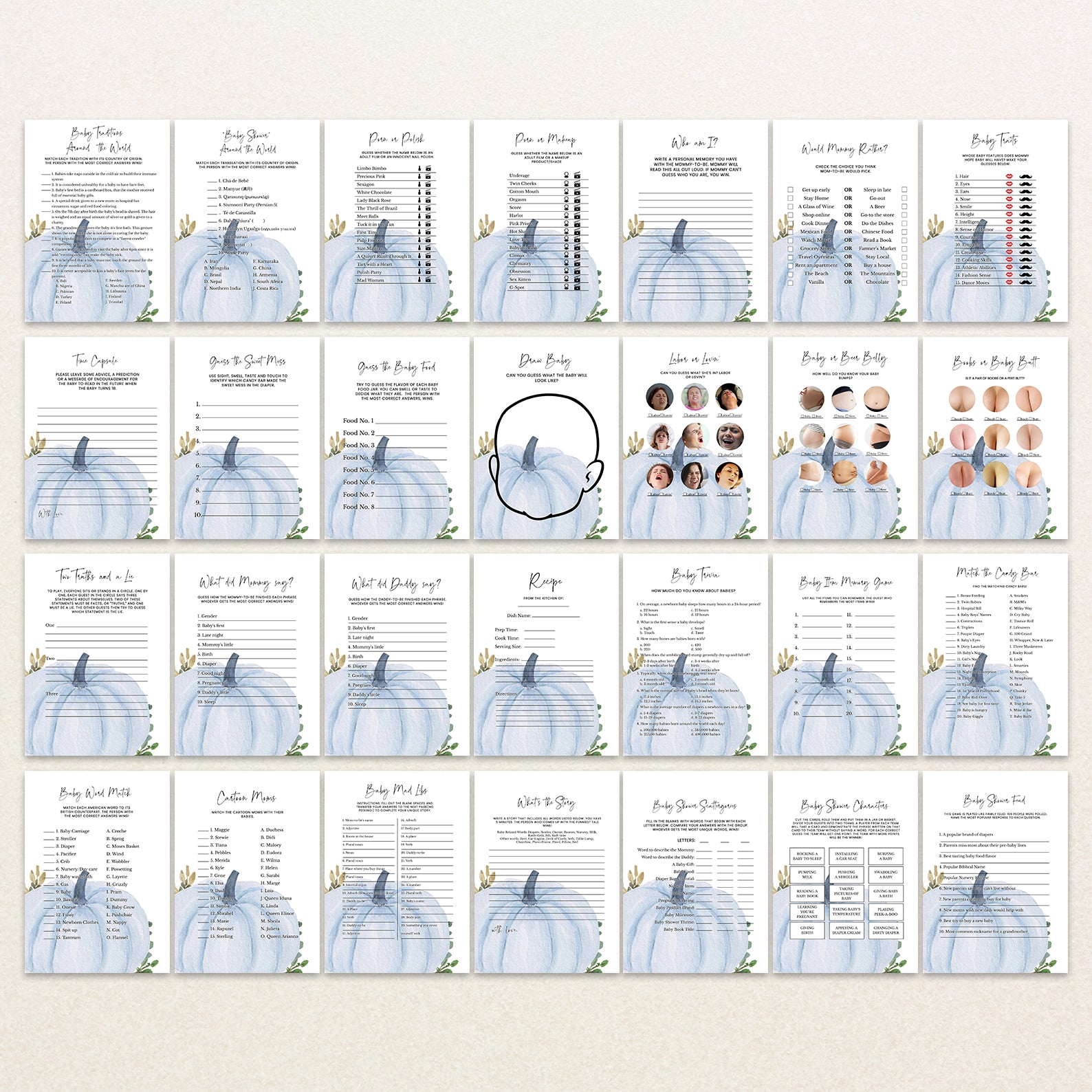 Large Pumpkin with Green Leaves Baby Shower Digital Game Bundle