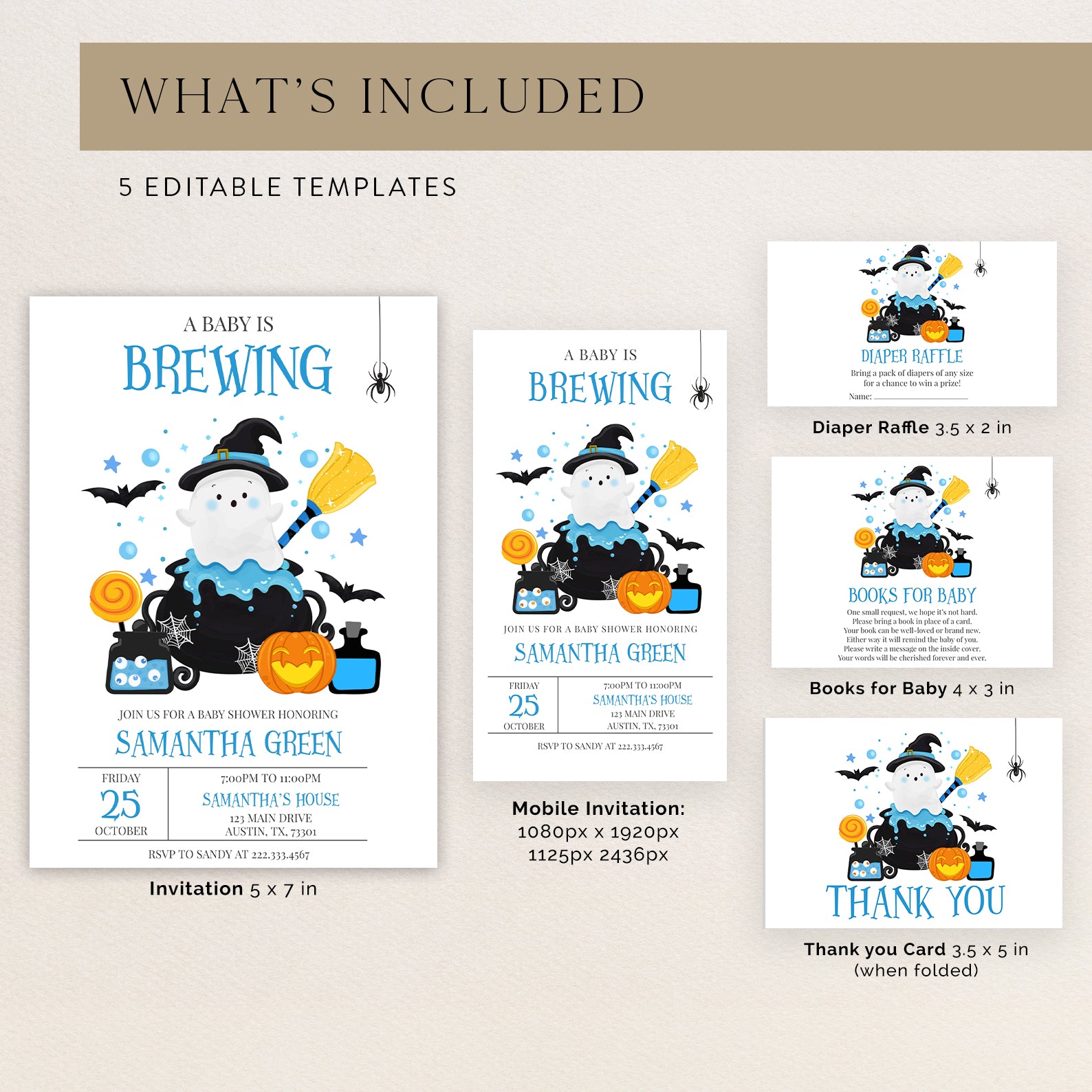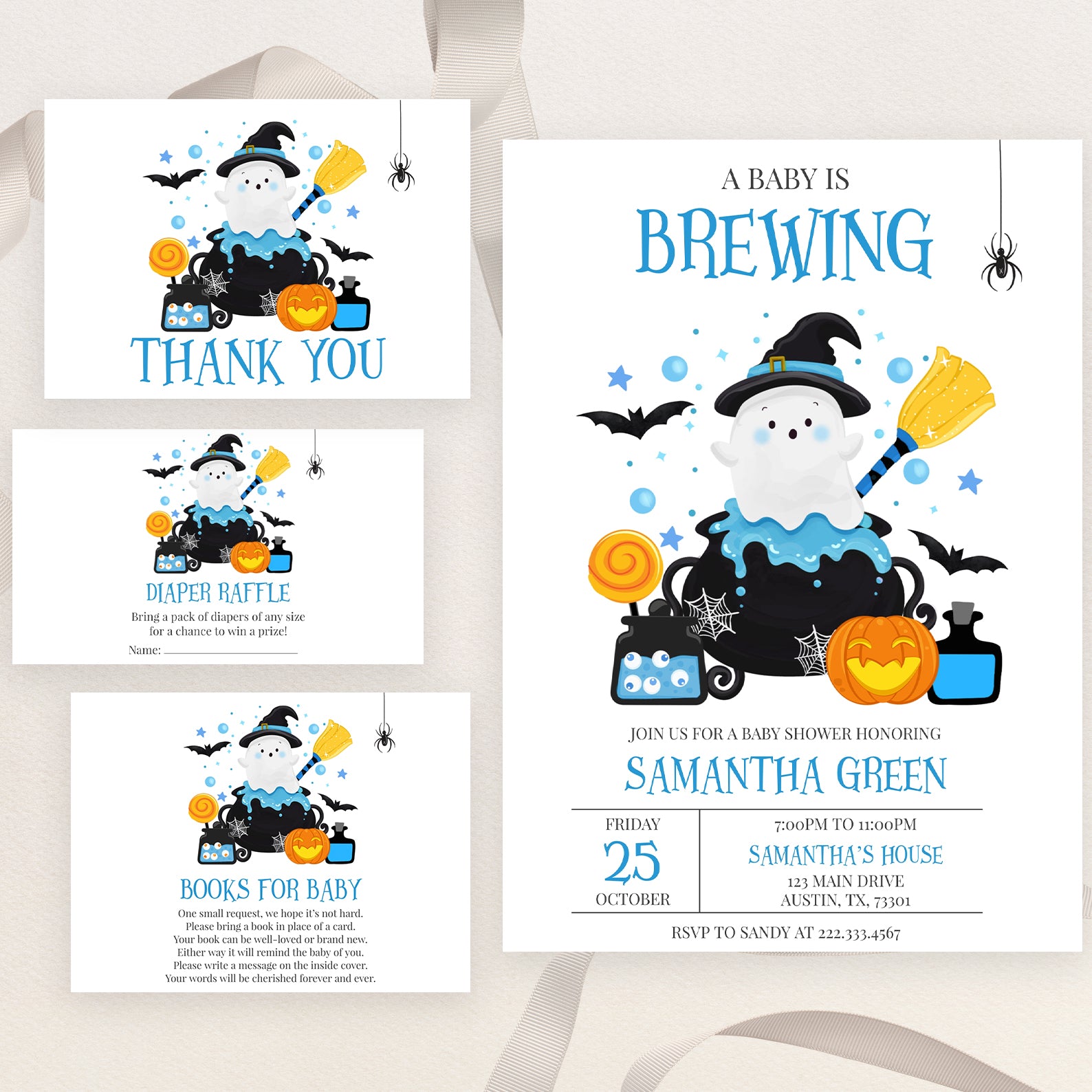 Little Boo Brewing in Cauldron Digital Baby Shower Invitation Bundle