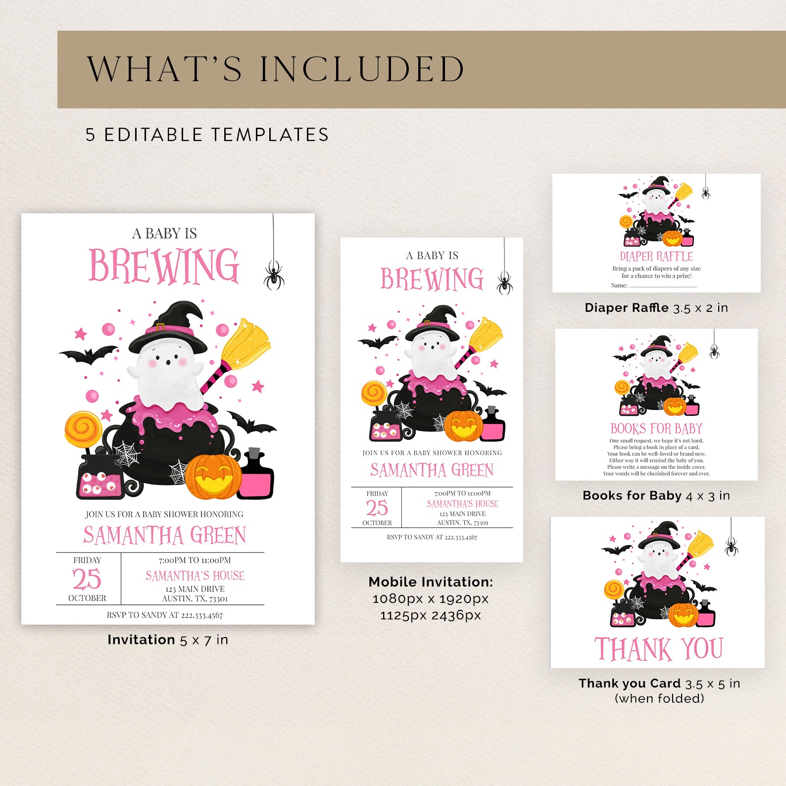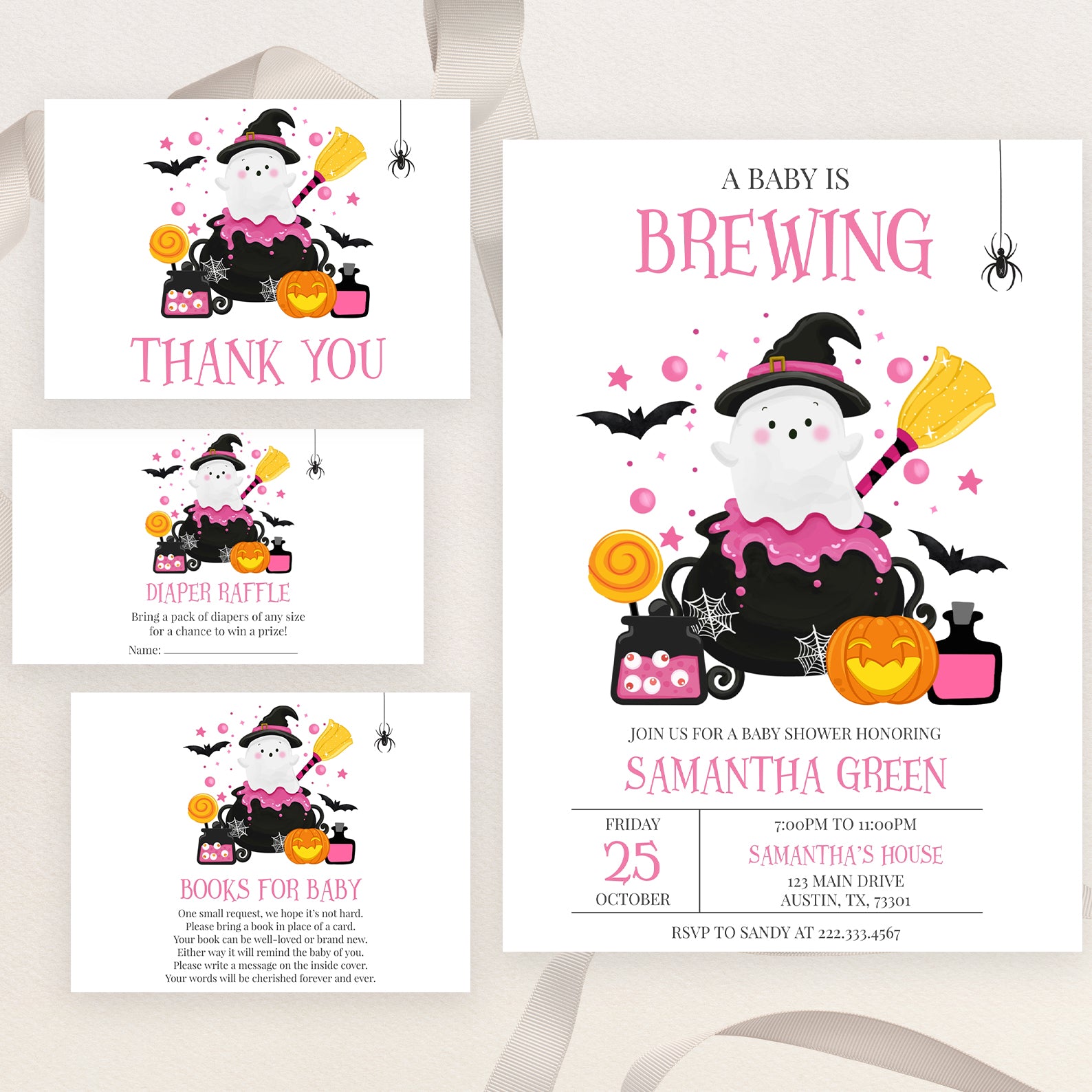- Purchase this Little Boo Brewing in Cauldron Pink Digital Baby Shower Invitation Bundle template