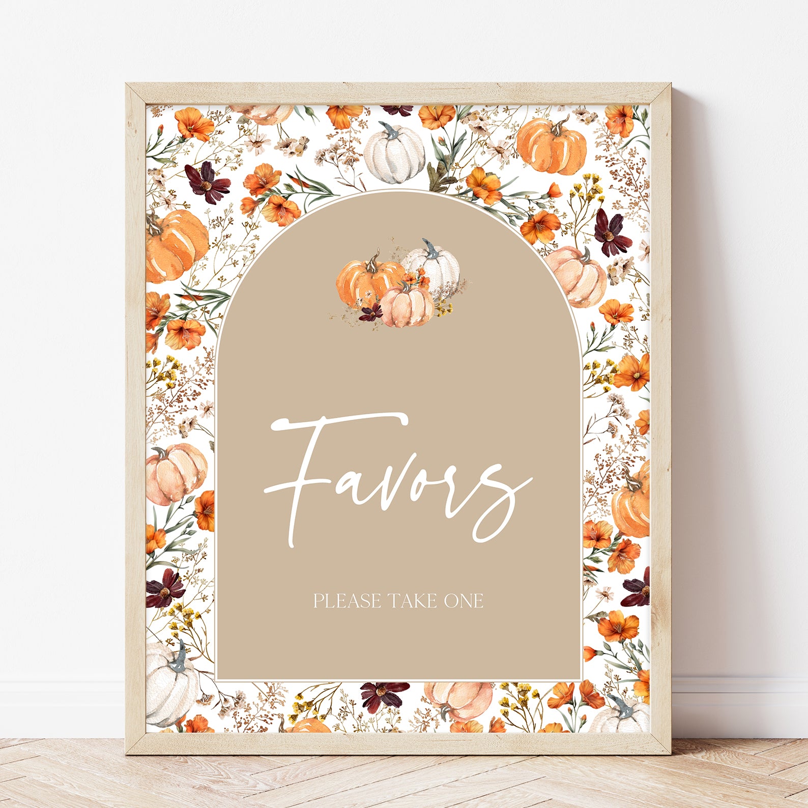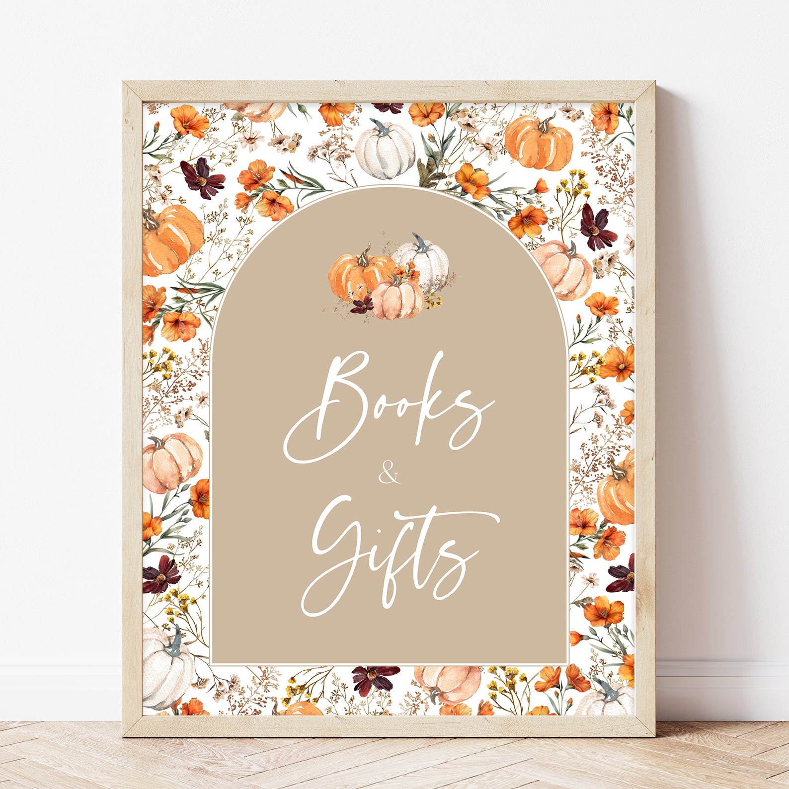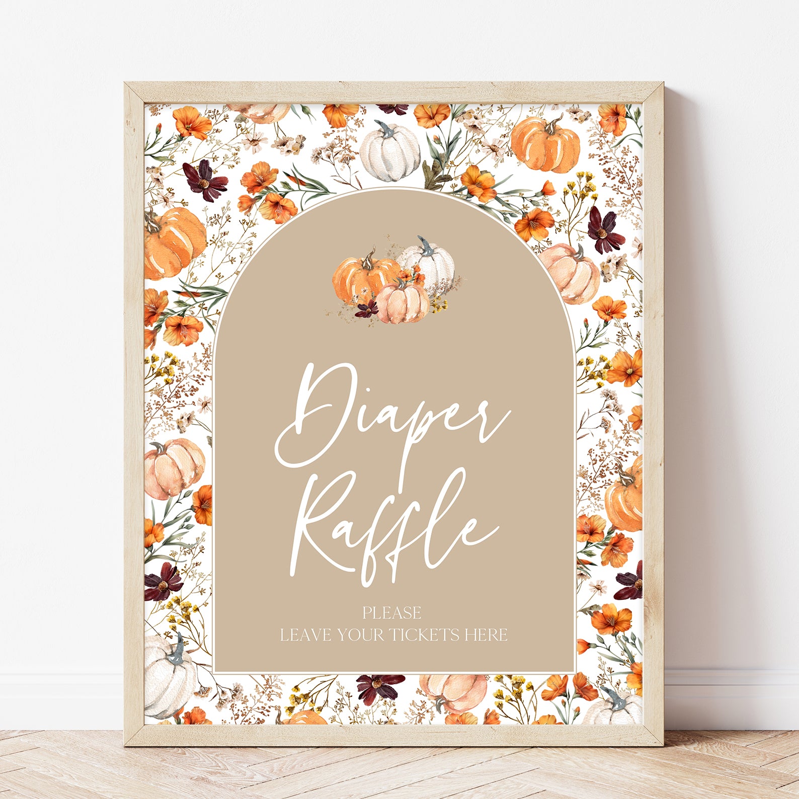 Enhance your autumn baby shower with this set of 10 editable table signs, designed to complement a cozy “little pumpkin” theme. Each sign features a warm brown arch framed by soft watercolor pumpkins, rustic leaves, and seasonal florals in earthy tones. The elegant yet playful design adds a festive touch to your décor and includes: Babies Are Sweet, Books and Gifts, Diaper Raffle, Don’t Say Baby, Drinks, Envelope Station, Favors, Food, Late Night Diapers, and Mom-osa Bar.
