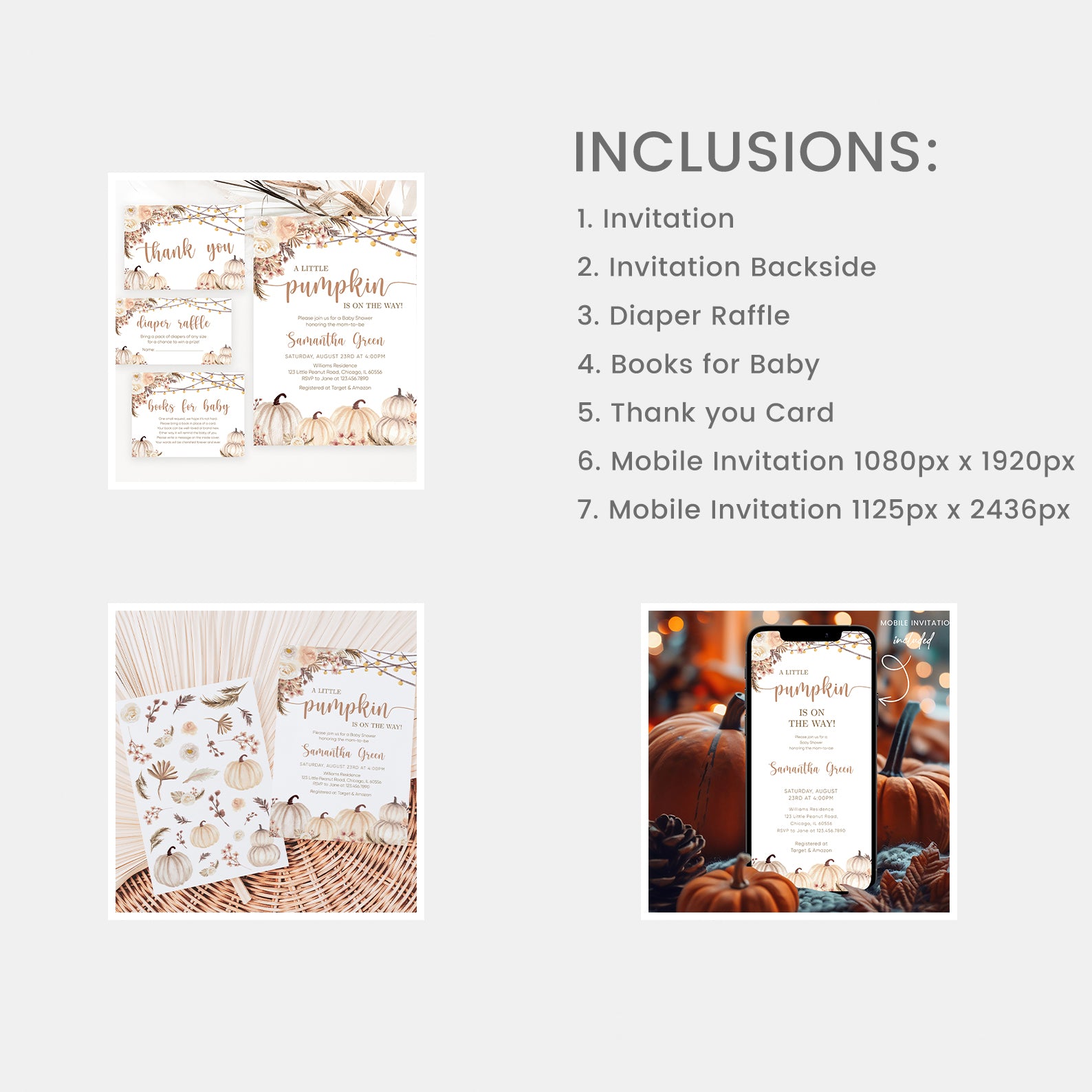 - Purchase this Little Pumpkin Fall Mega Bundle: Boho Roses, Pampas Grass & Lights template