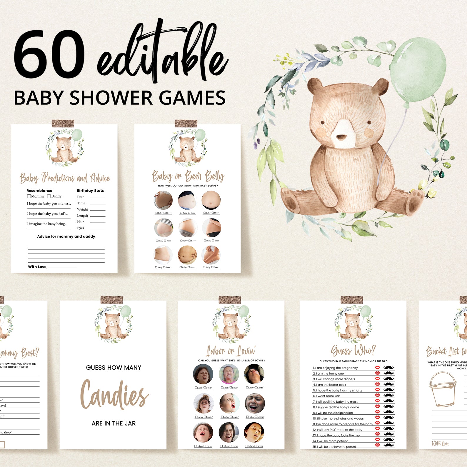 - Purchase this Minimalist Bear Baby Shower Digital Game Bundle Green Leaf Circle template