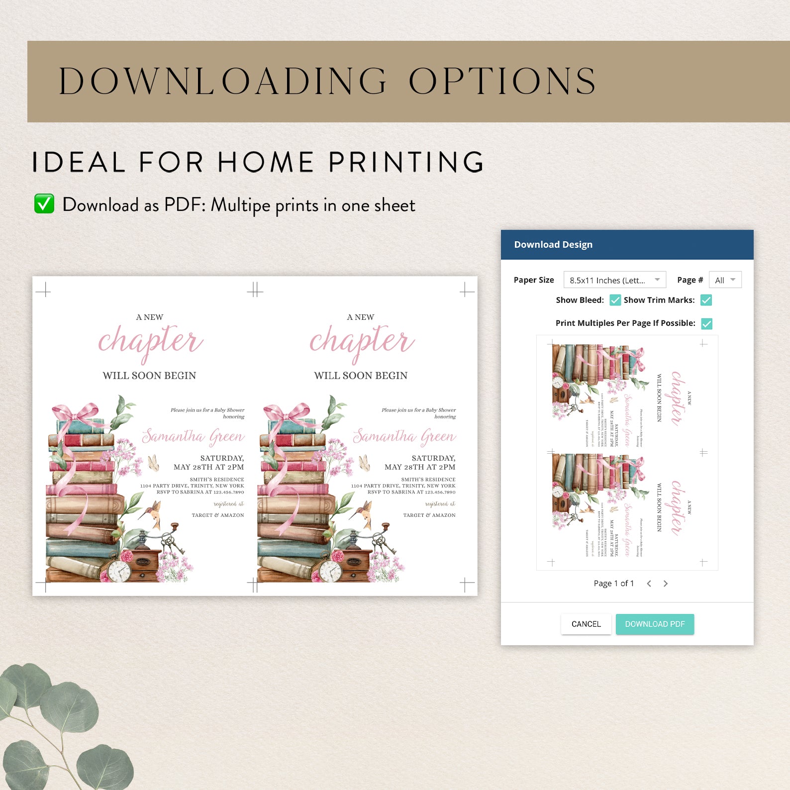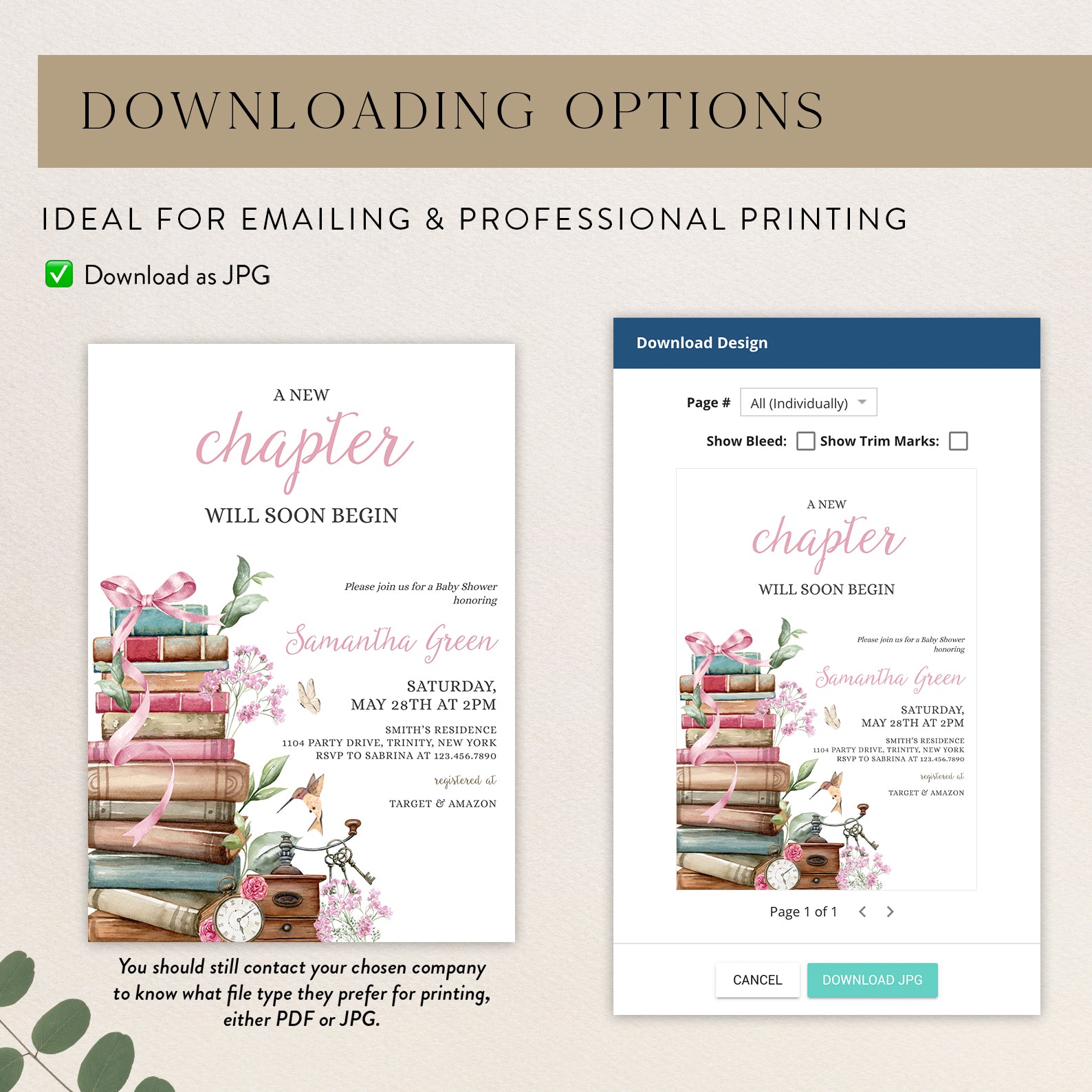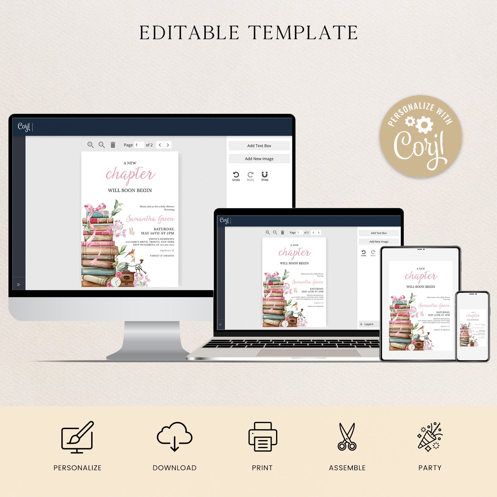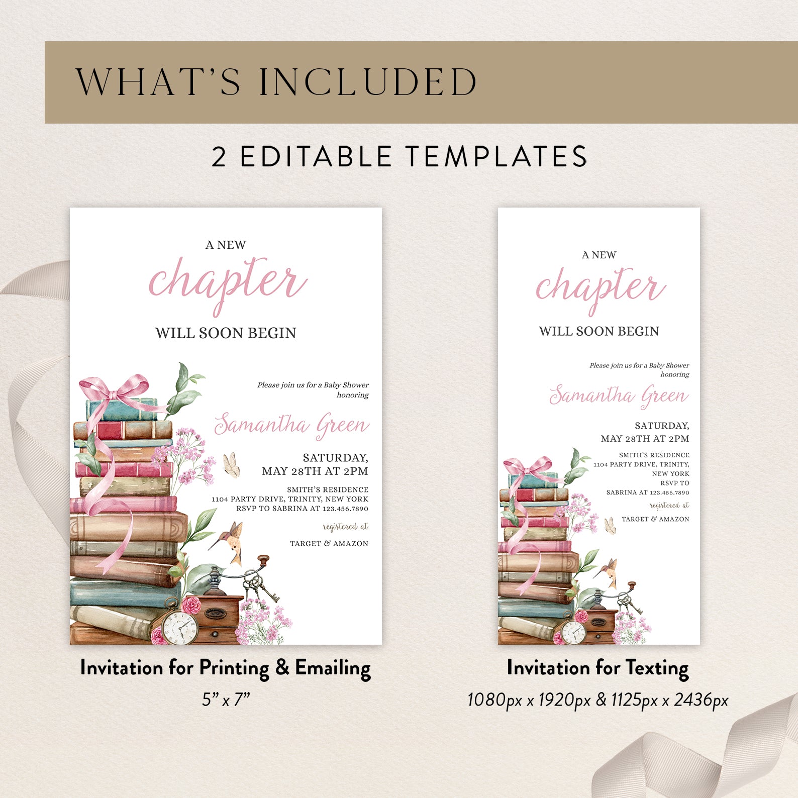 - Purchase this Pink Baby Shower Invite: Books, Florals & Vintage Charm template