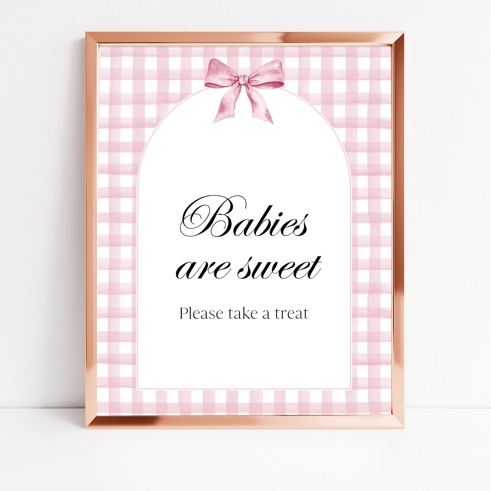 - Purchase this Pink Plaid Baby Shower Table Sign with Arch & Ribbon Design template