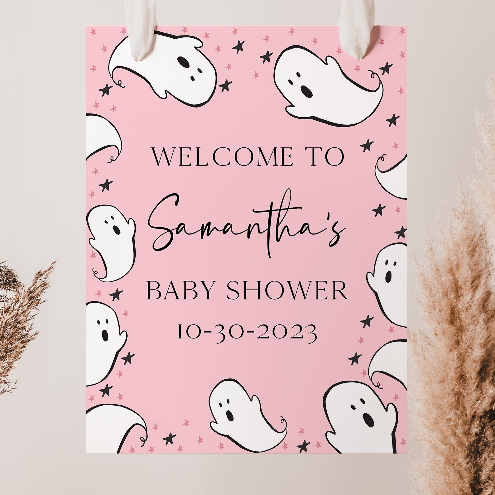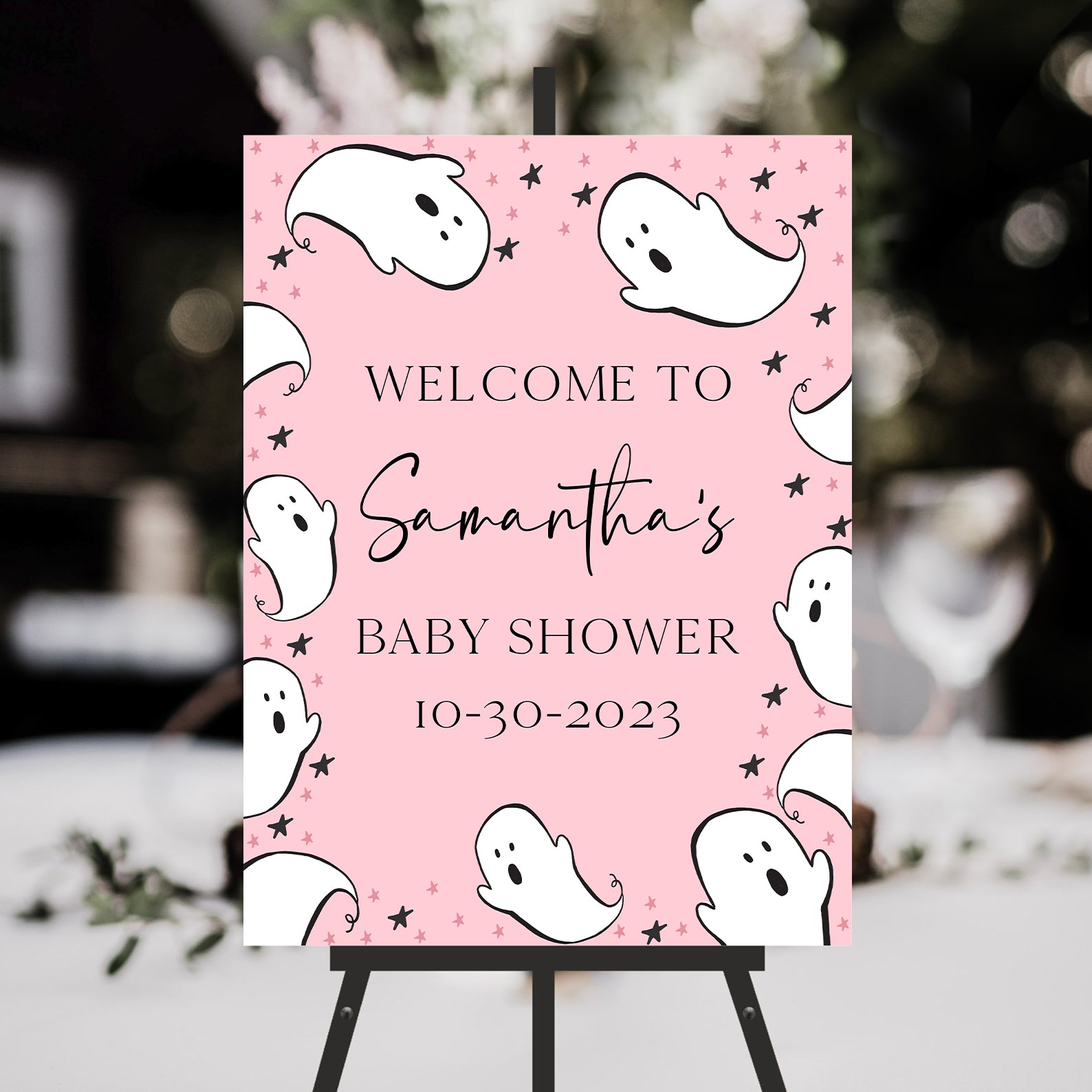 Welcome your guests with our adorable "Little Boo's Arrival" welcome sign! Featuring charming flying ghosts and twinkling stars, this sign sets a spooky-cute tone for your baby shower. Available in pink for a baby girl or blue for a baby boy, it's the perfect way to greet guests and celebrate your little one’s arrival in style.