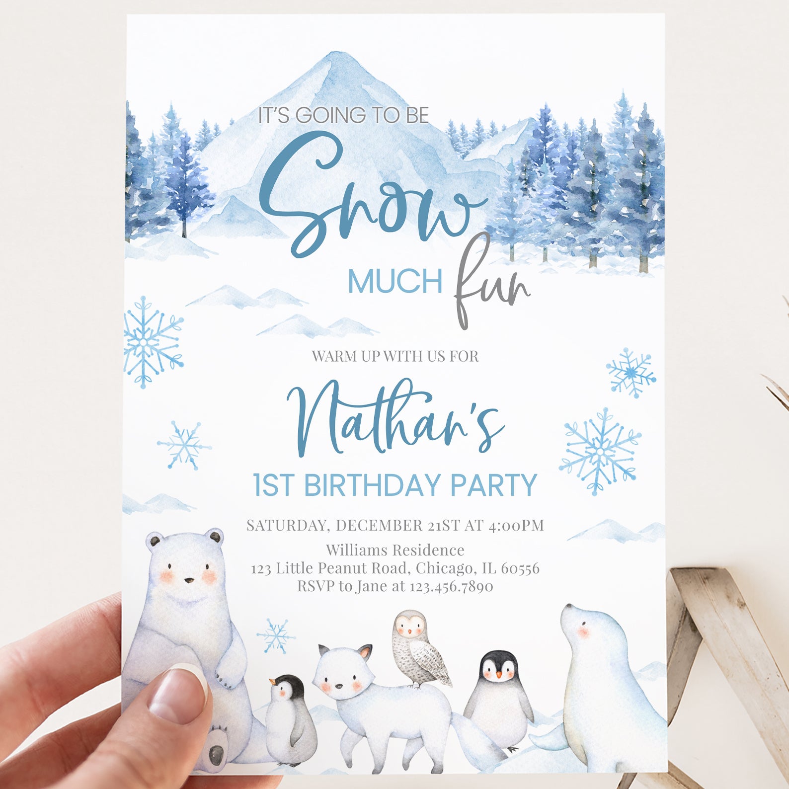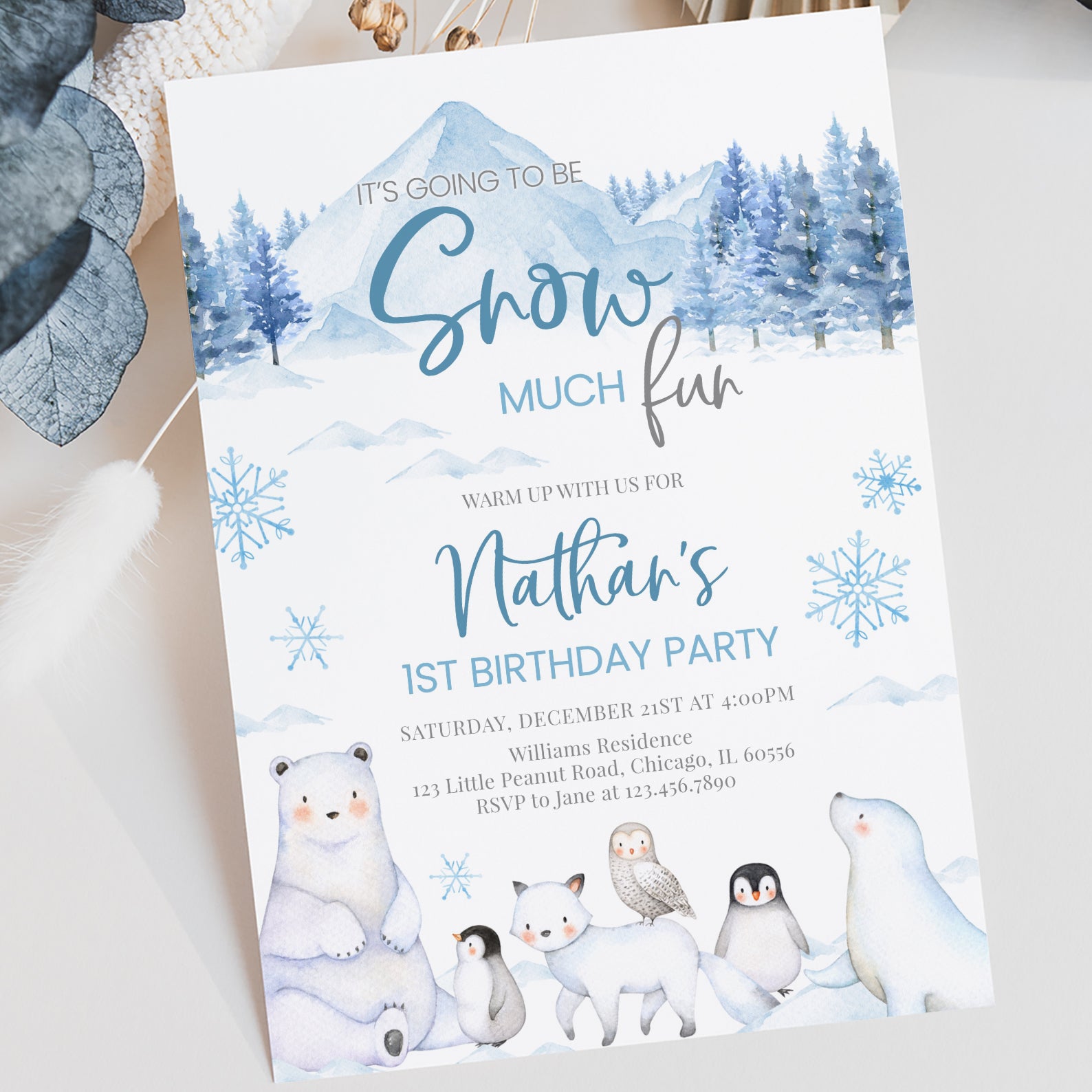 - Purchase this Snow Much Fun 1st Birthday Blue Invitation: Arctic Animals Theme template